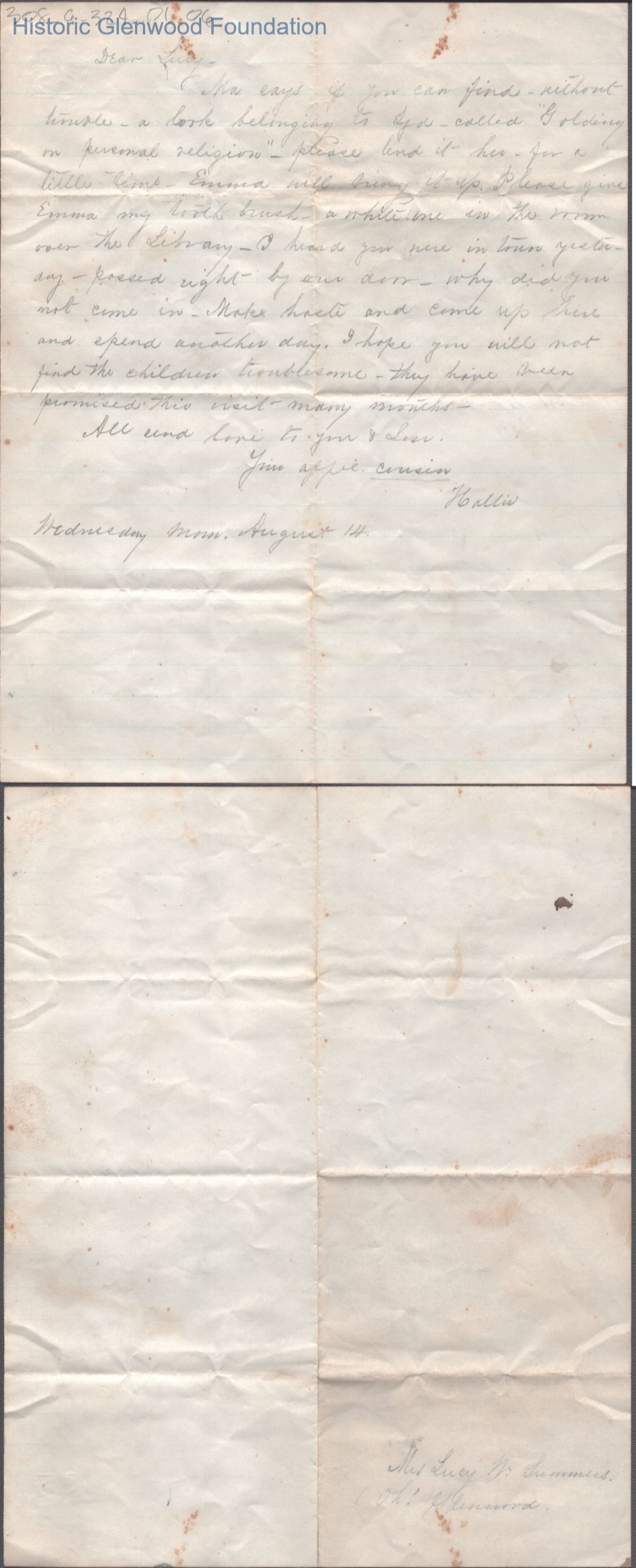 Lucy W. Summers from her cousin Hallie, unknown year ("August 14" noted at bottom).
