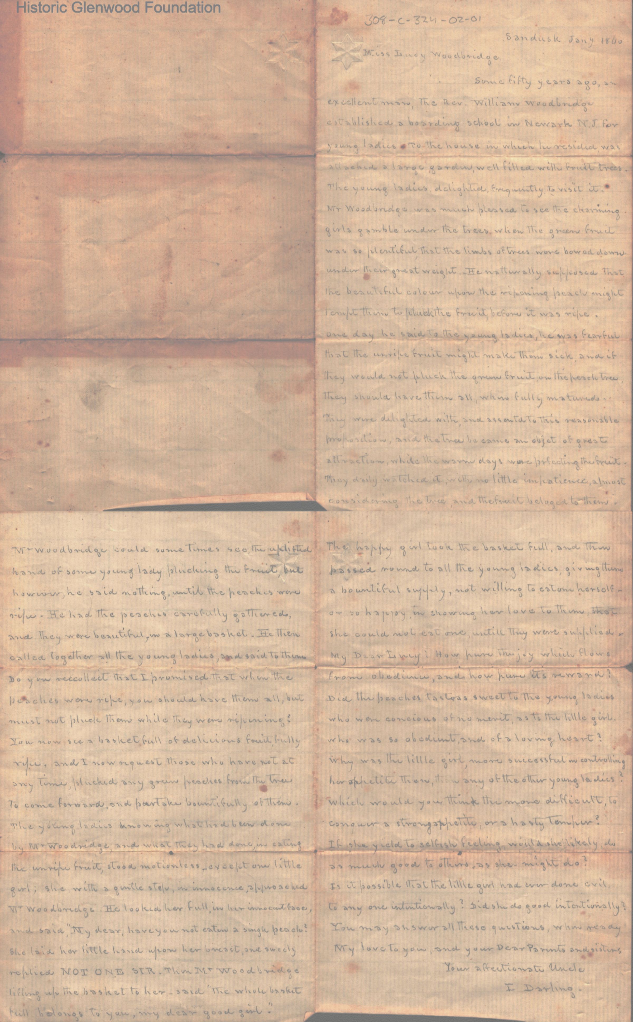 Three page letter to Lucy Summers from her uncle I. Darling