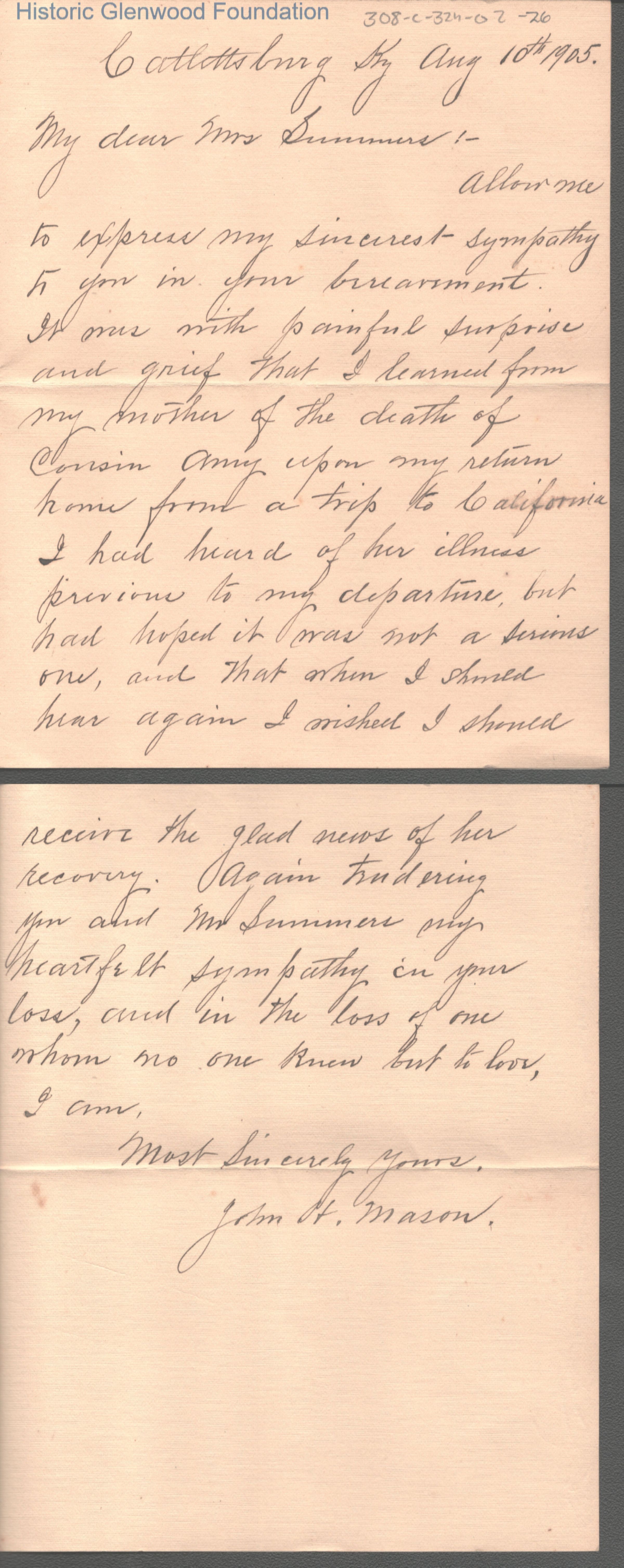 Lucy W. Summers from John H. Mason, August 10, 1905