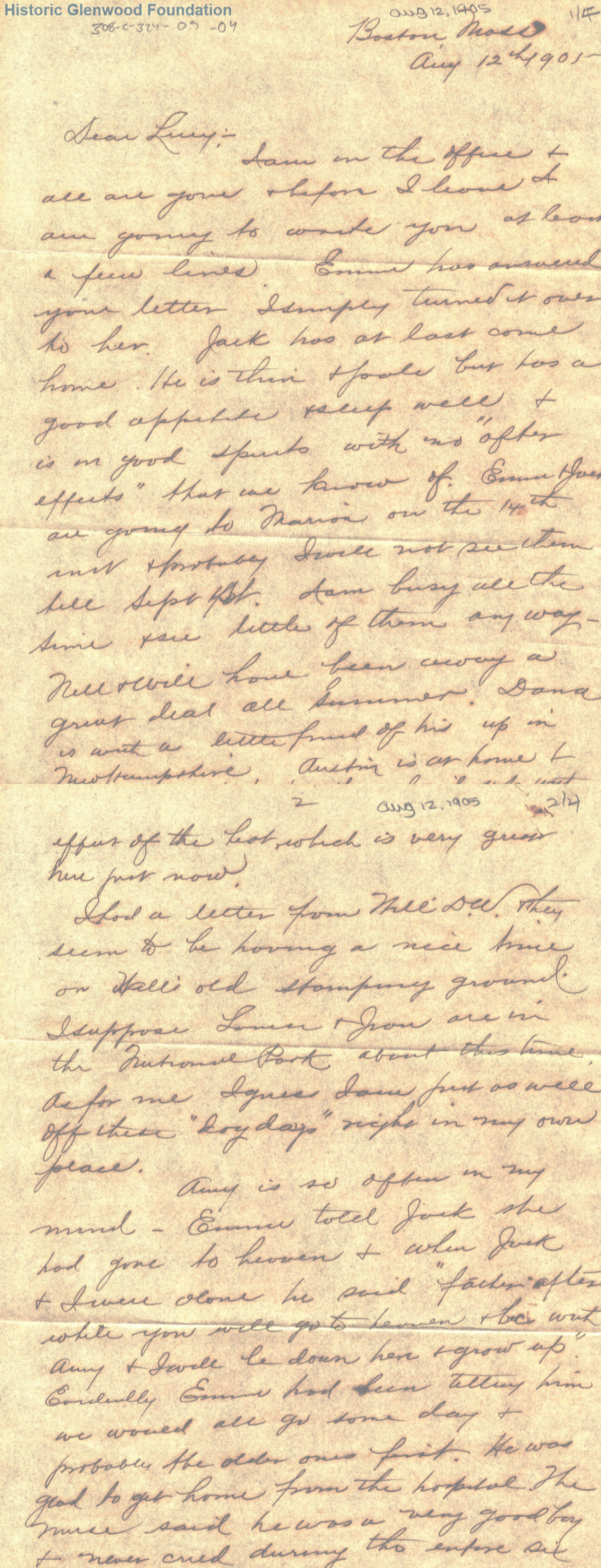 Lucy W. Summers from John M. Woodbridge; August 12, 1905