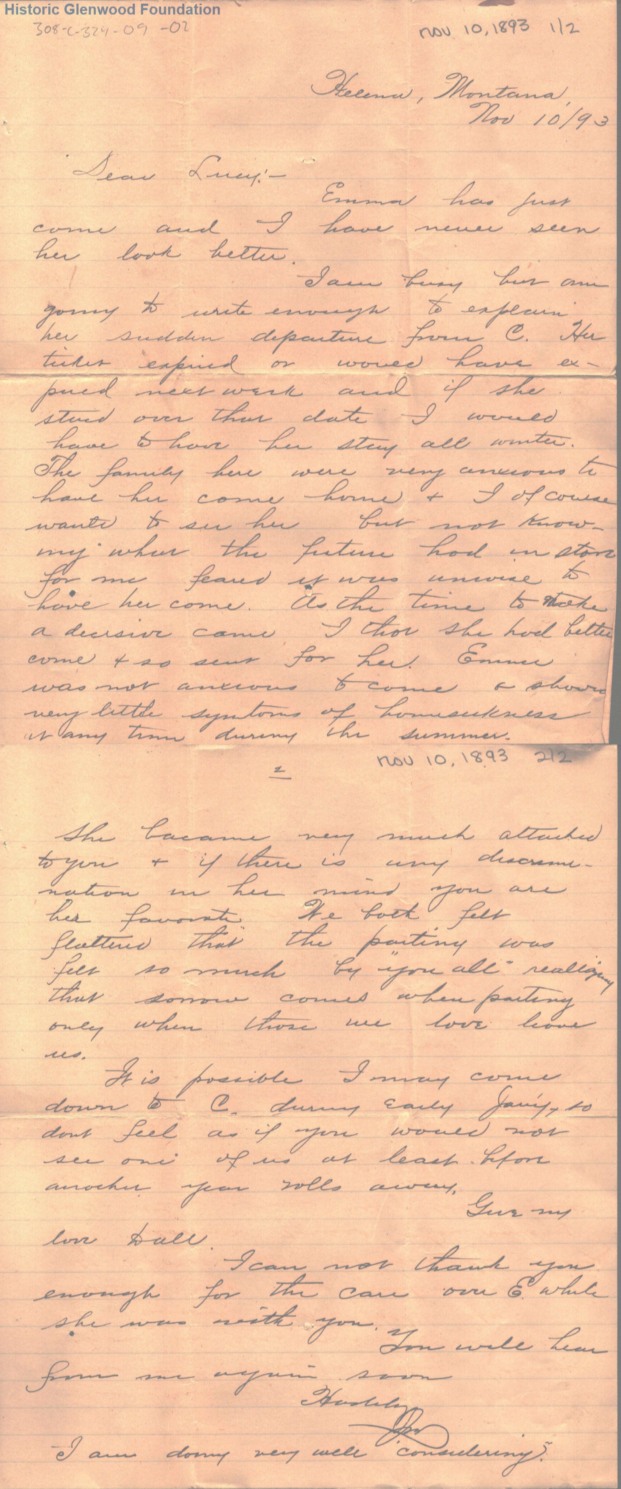 Lucy W. Summers from John M. Woodbridge; November 10, 1893