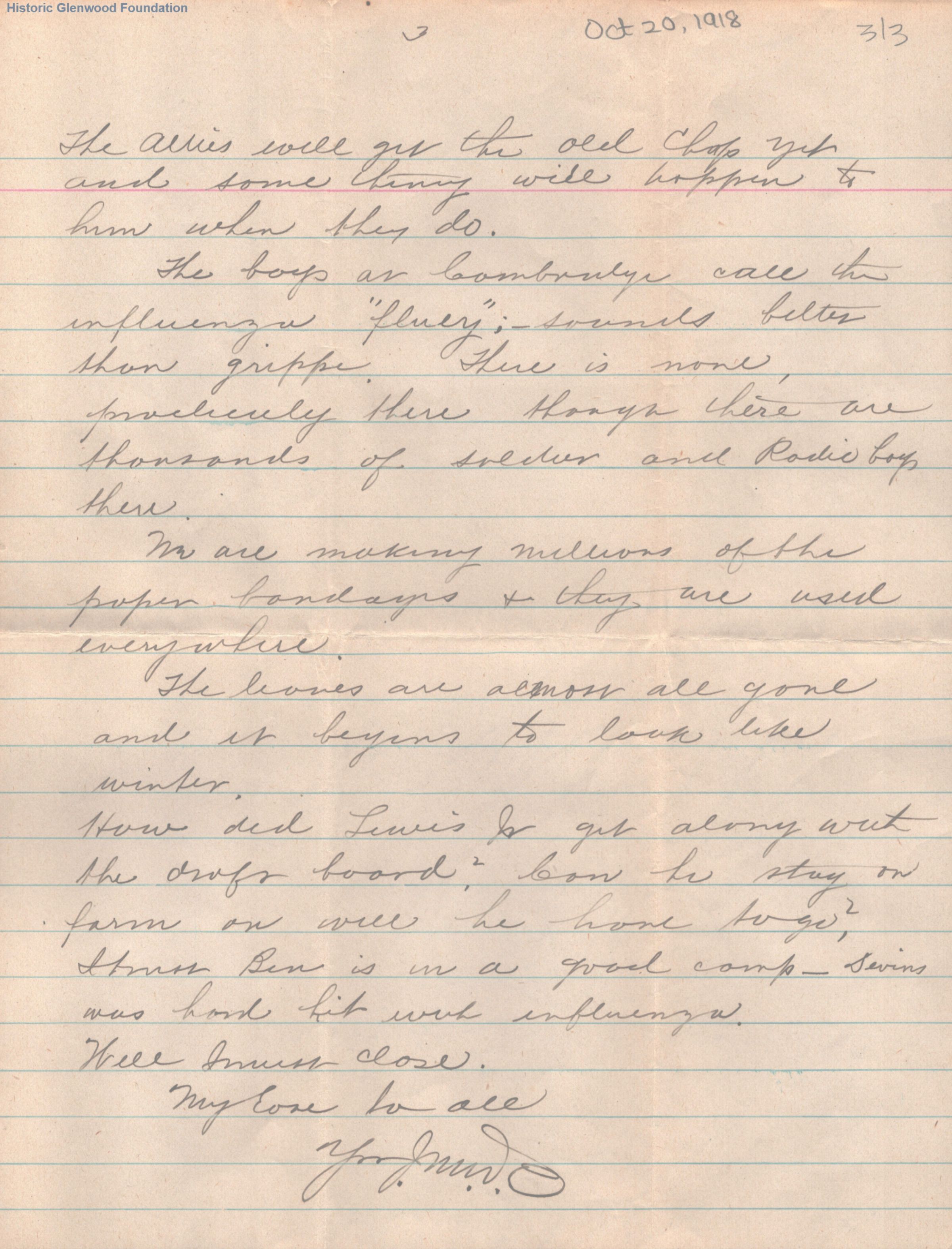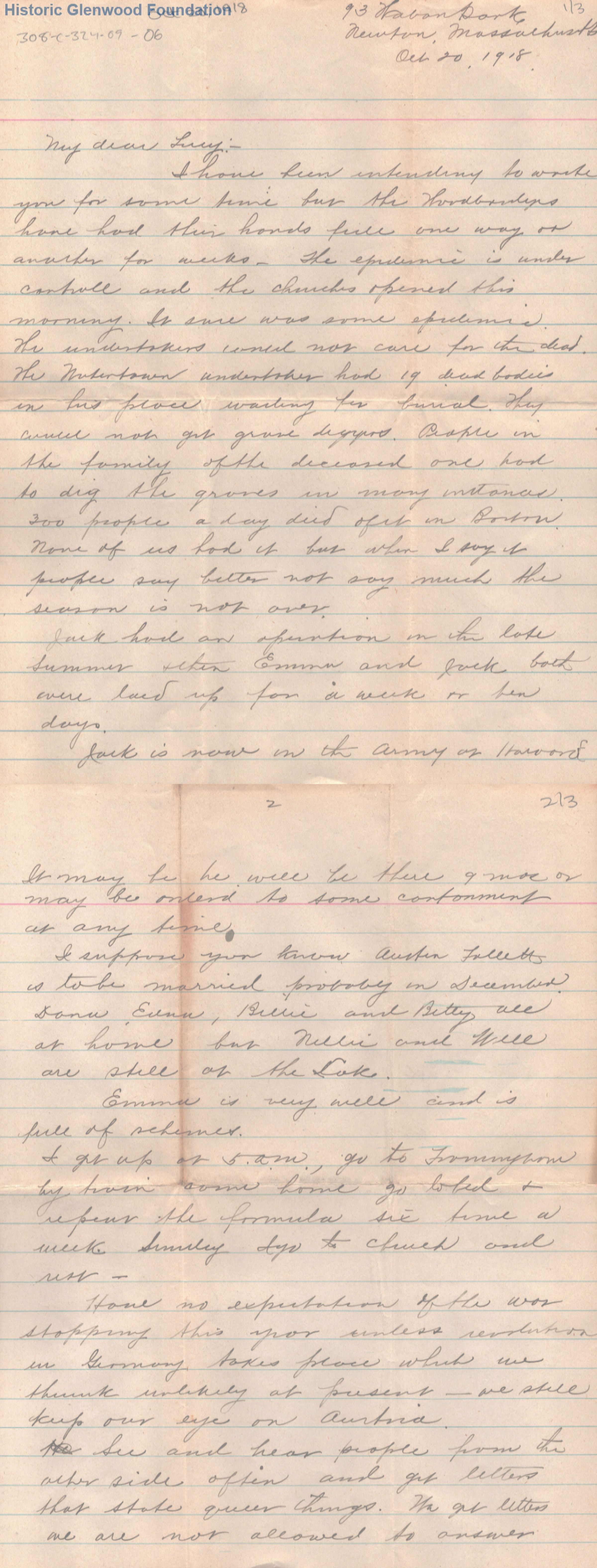 Lucy W. Summers from John M. Woodbridge; October 20, 1918