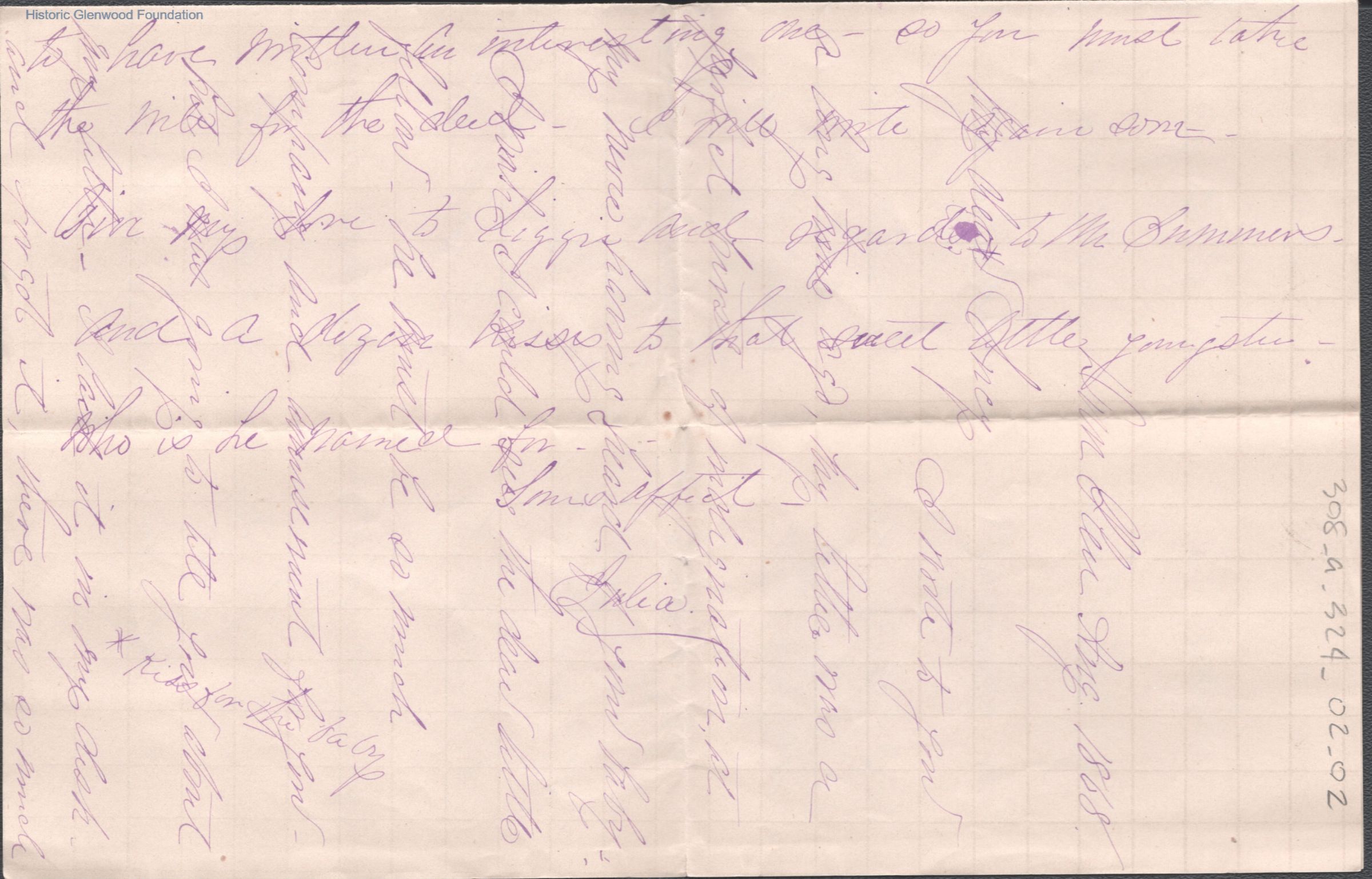 Five-page letter to Lucy W. Summers from Julia Brooks, Aug 1868.