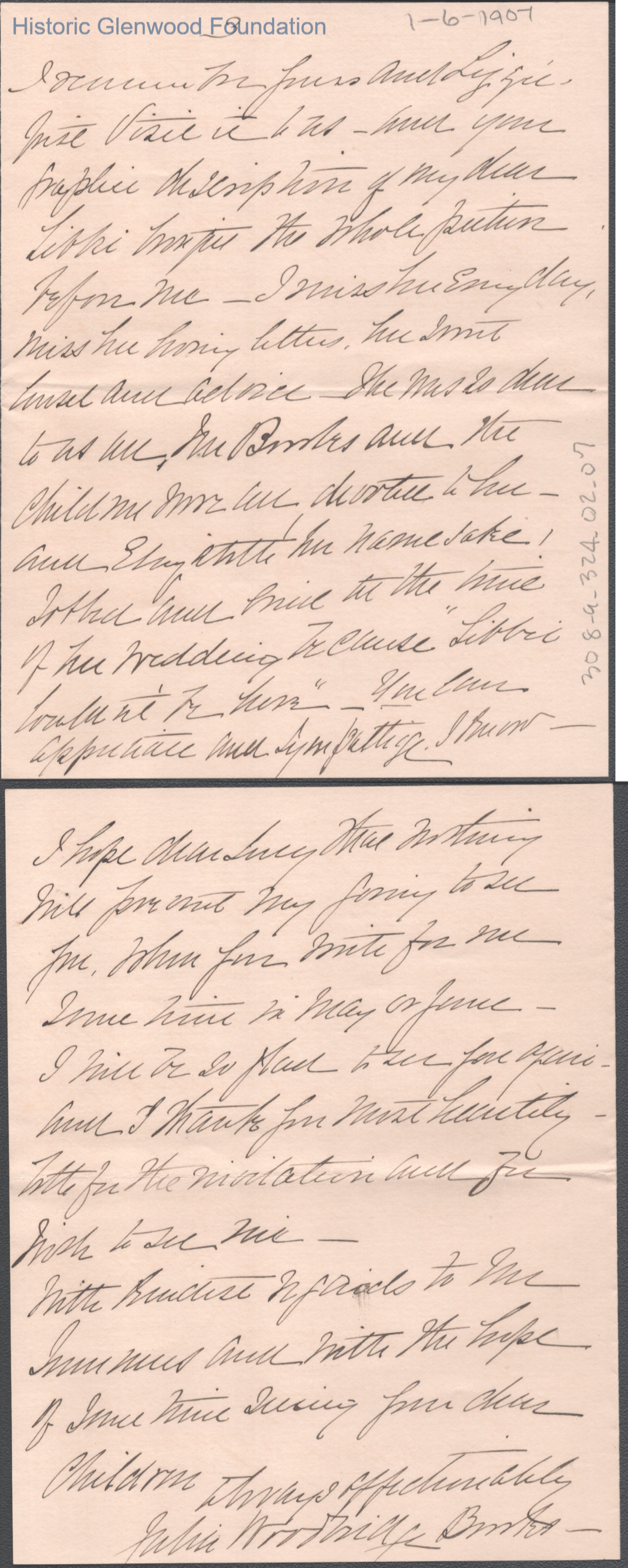 Lucy W. Summers from Julia Brooks, Jan 6, 1907