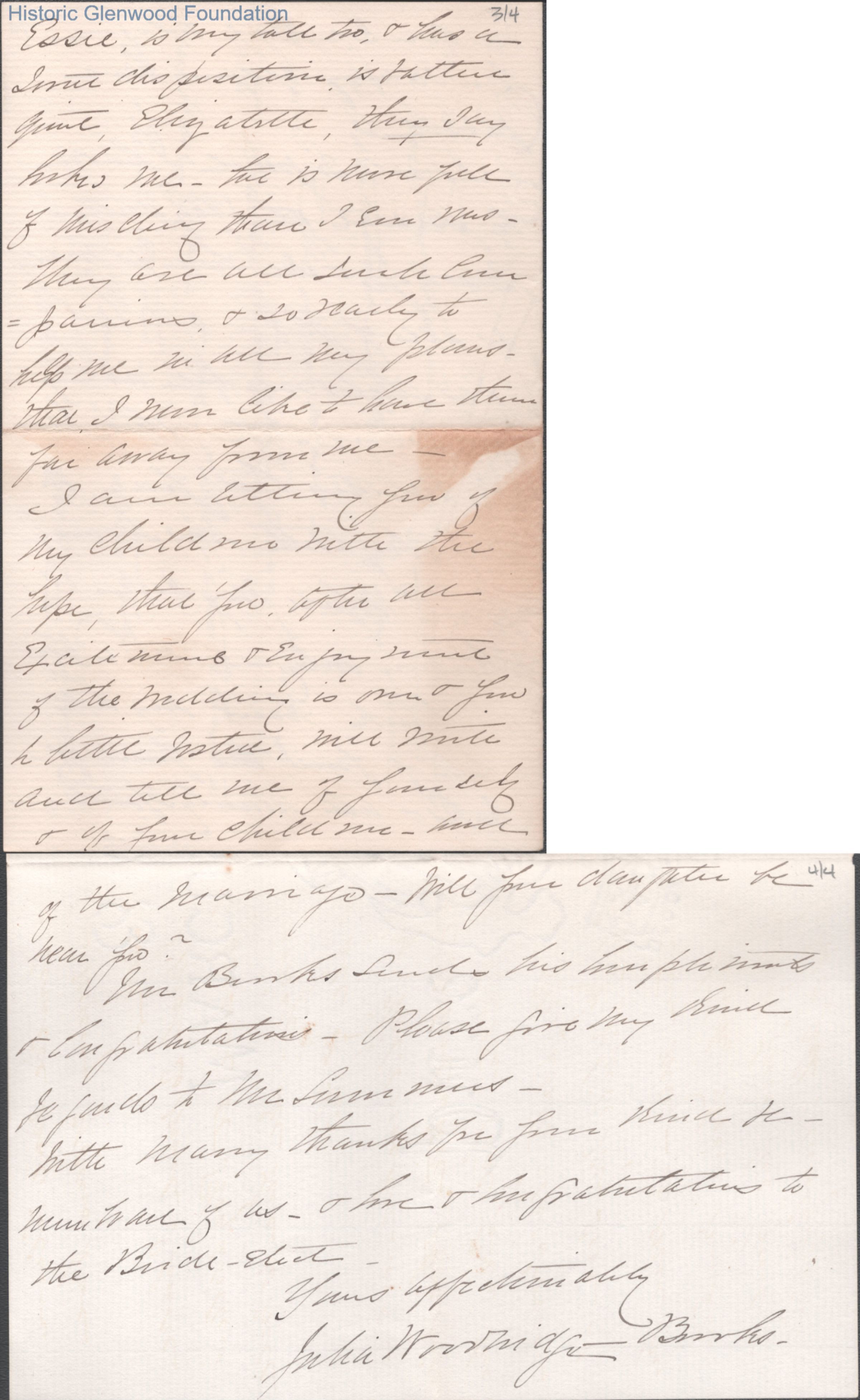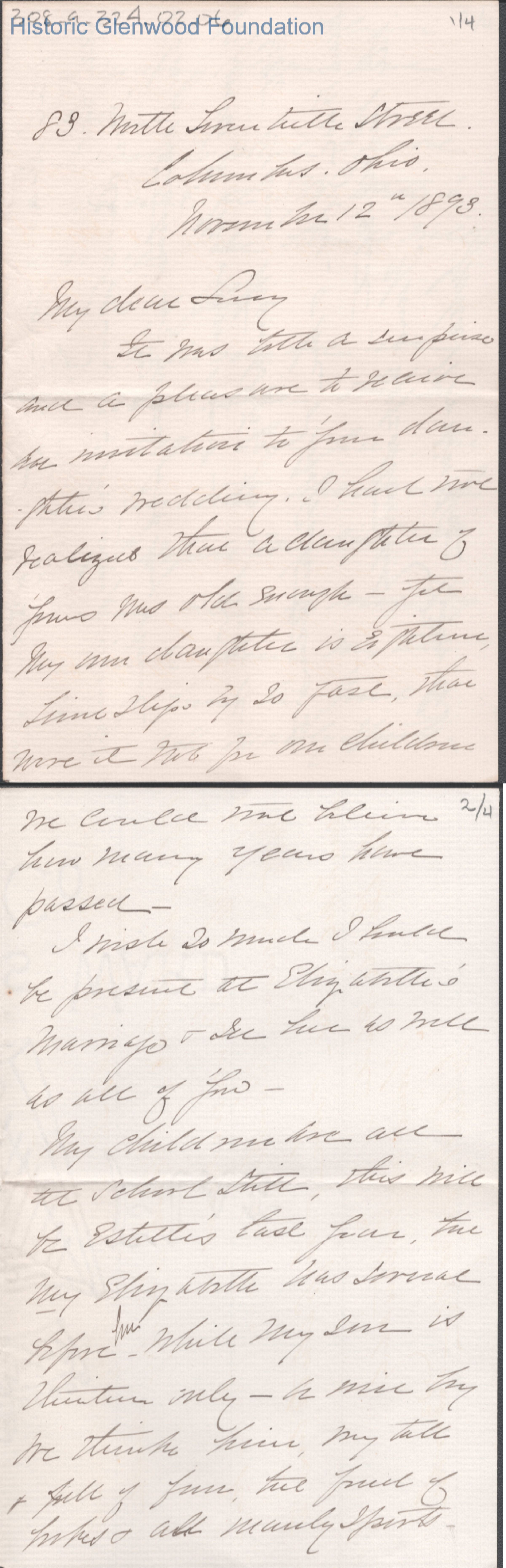 Four-page letter to Lucy W. Summers from Julia Brooks, Nov 12, 1893.