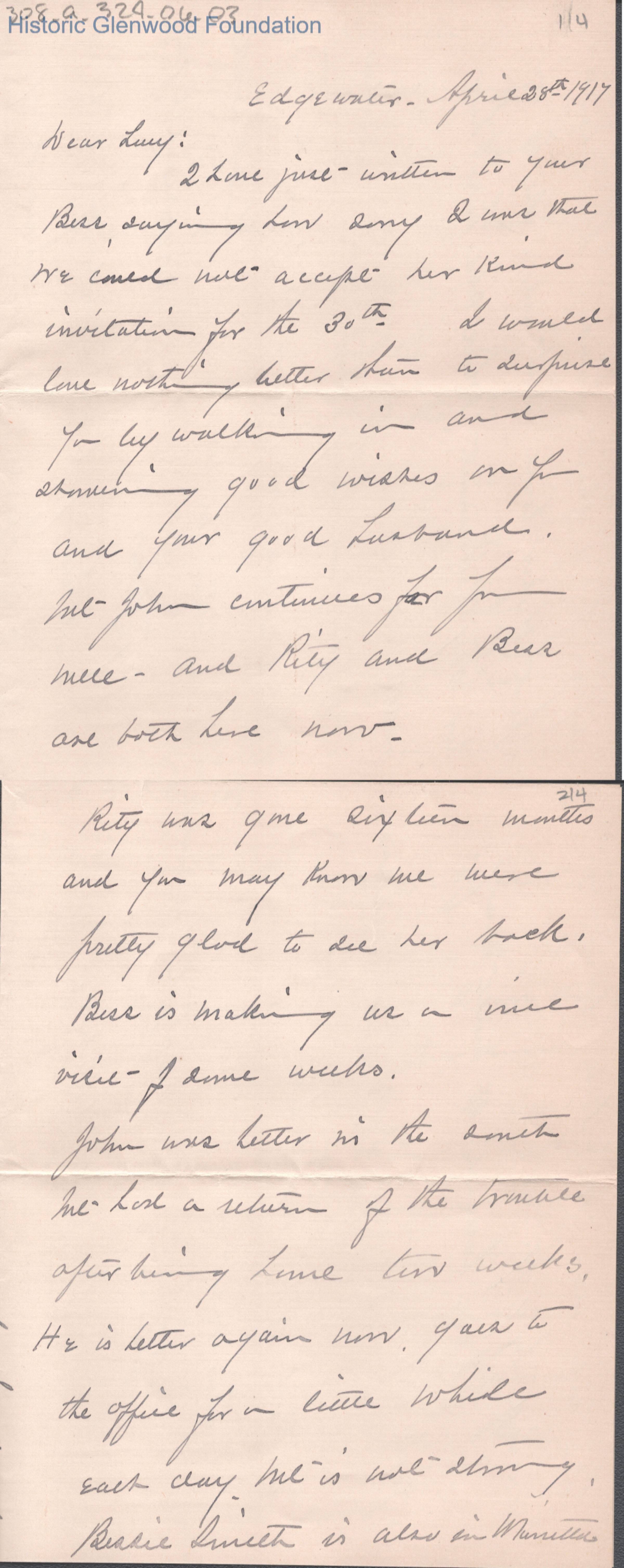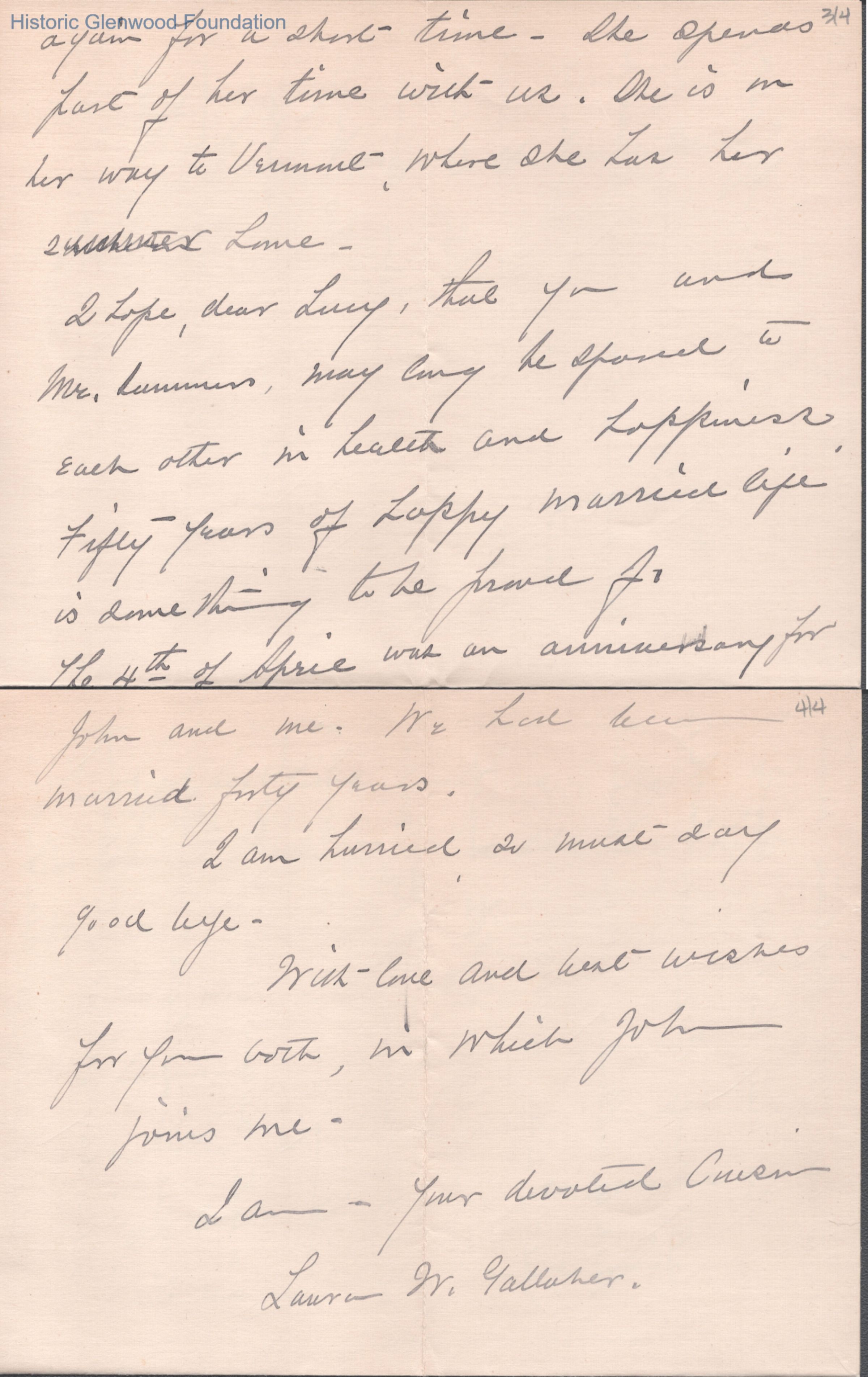 Four-page letter to Lucy W. Summers from Laura W. Gallaher, Apr 28, 1917.