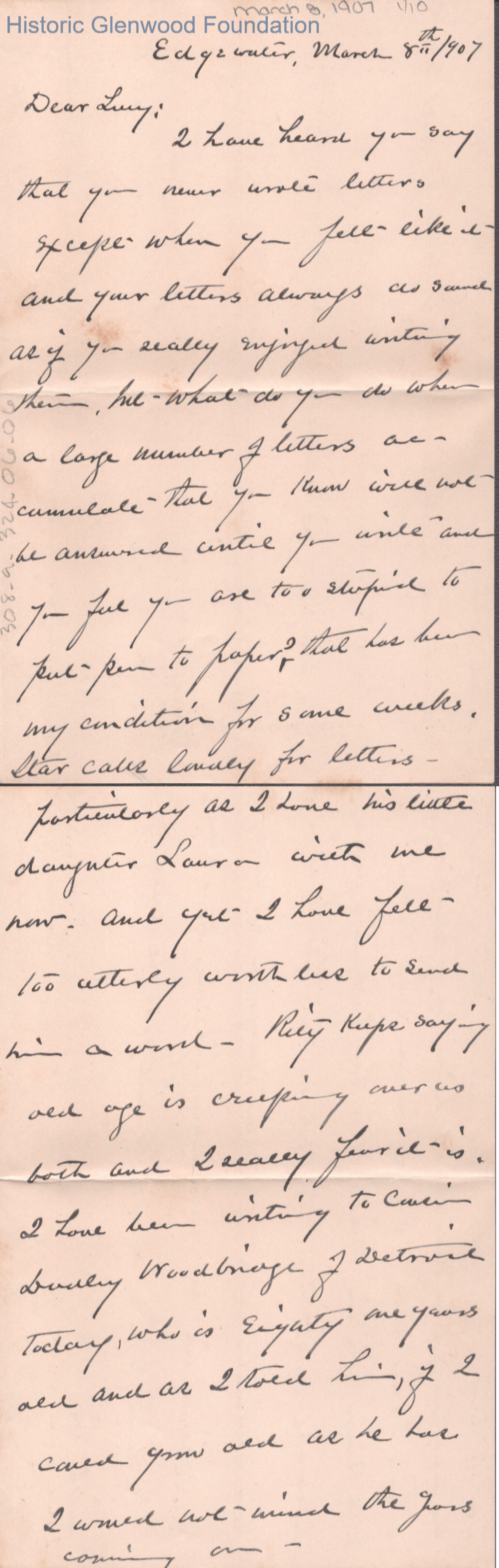Lucy W. Summers from Laura W. Gallaher, Mar 8, 1907