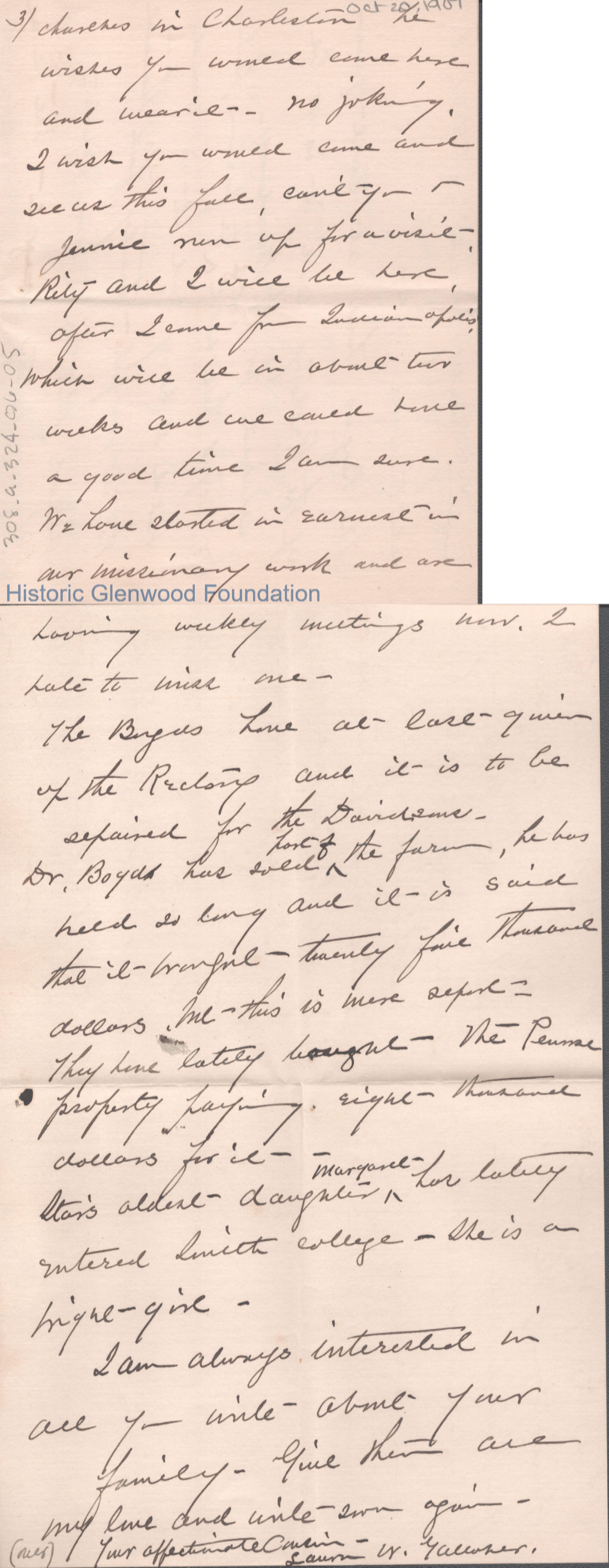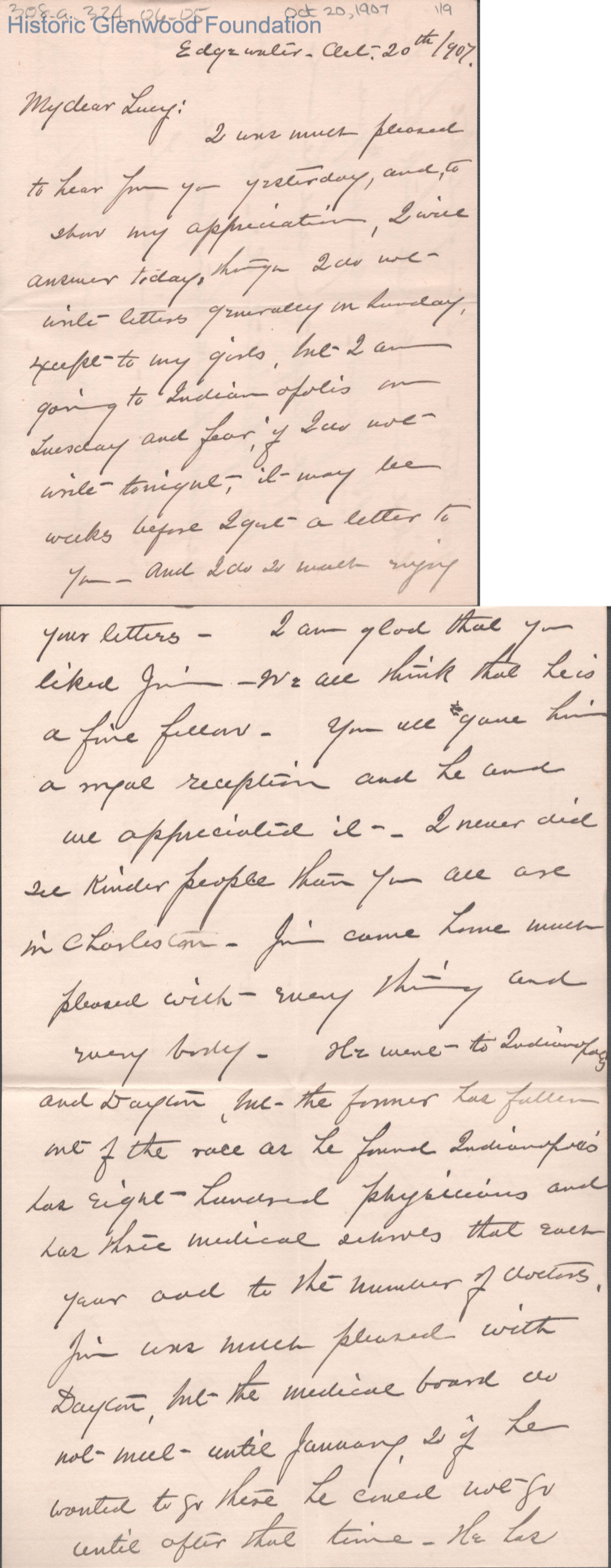 Lucy W. Summers from Laura W. Gallaher, Oct 20, 1907