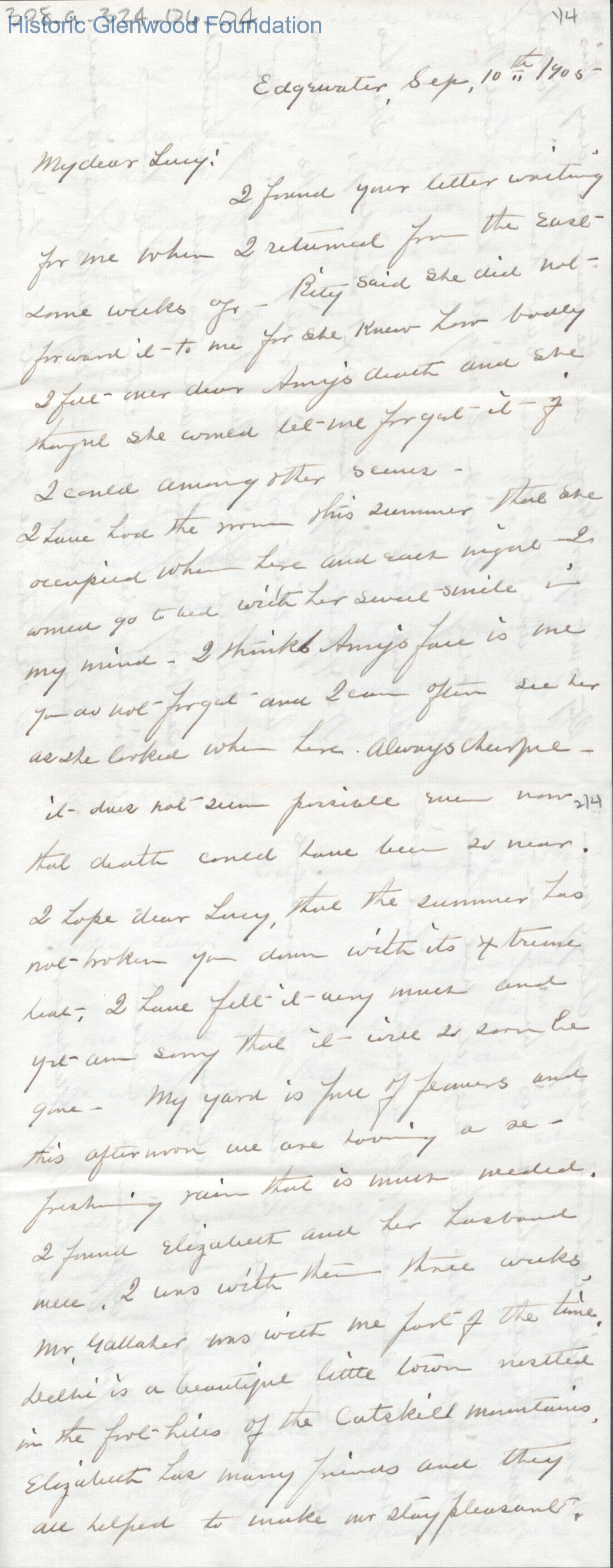 Lucy W. Summers from Laura W. Gallaher, Sep 10, 1905