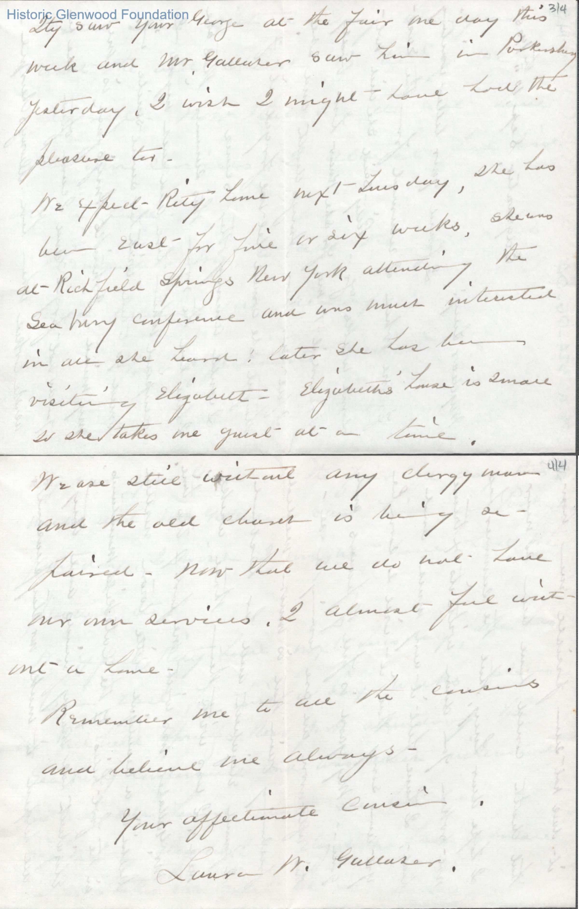 Four-page letter to Lucy W. Summers from Laura W. Gallaher, Sep 10, 1905.