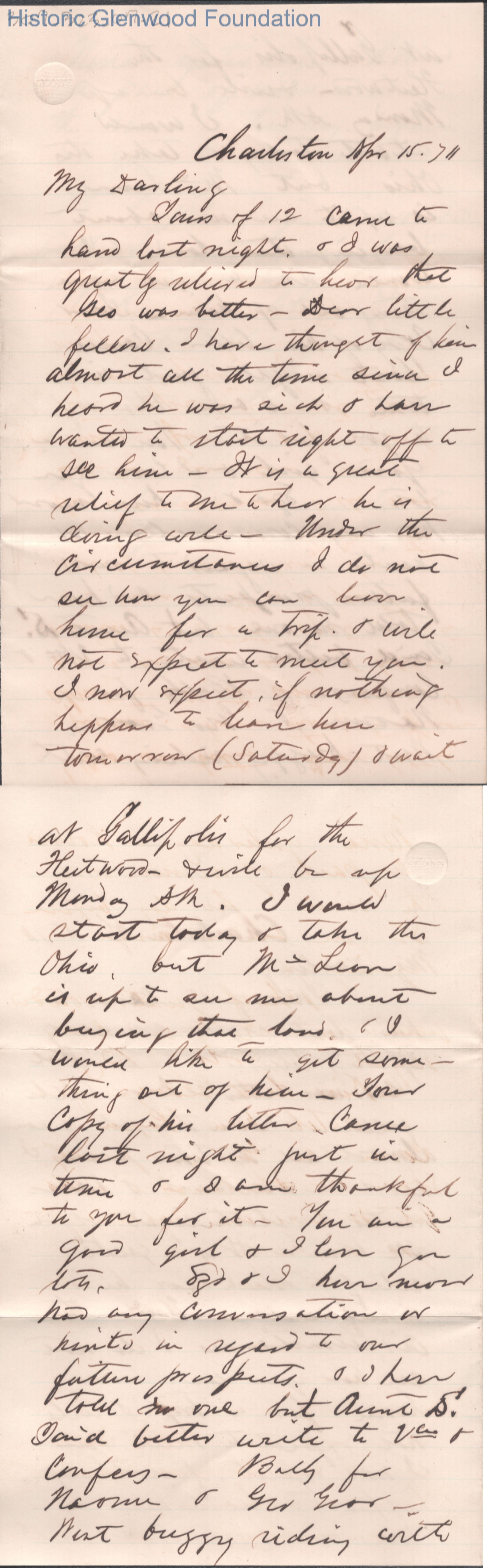 Lucy W. Summers from Lewis Summers, Apr 15, 1870