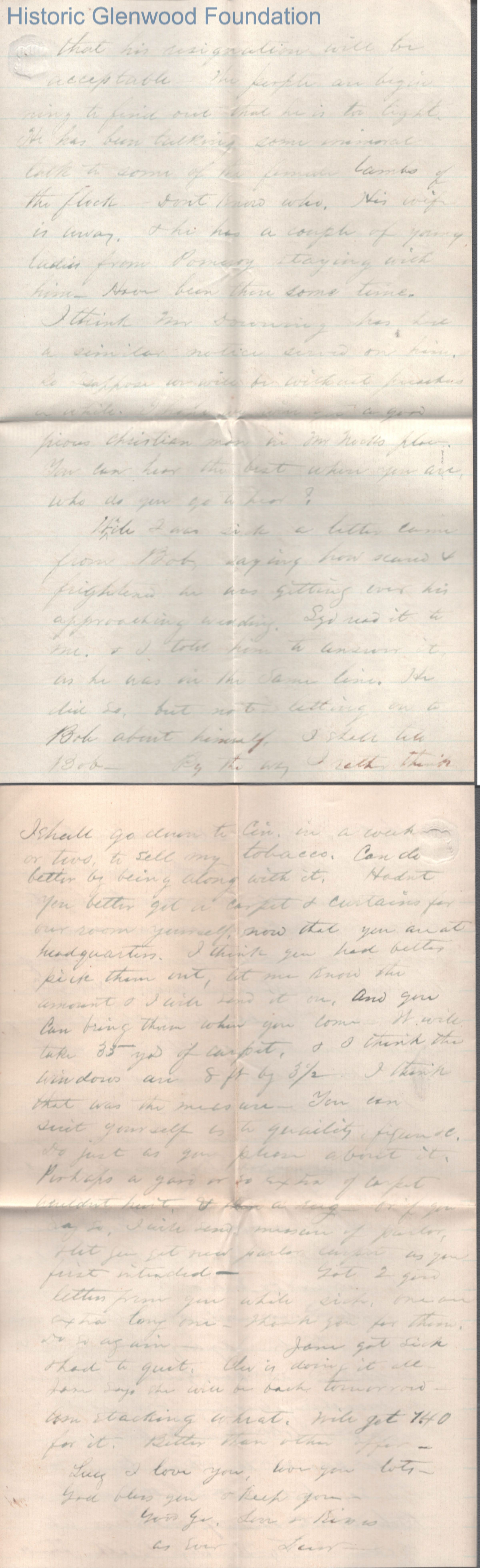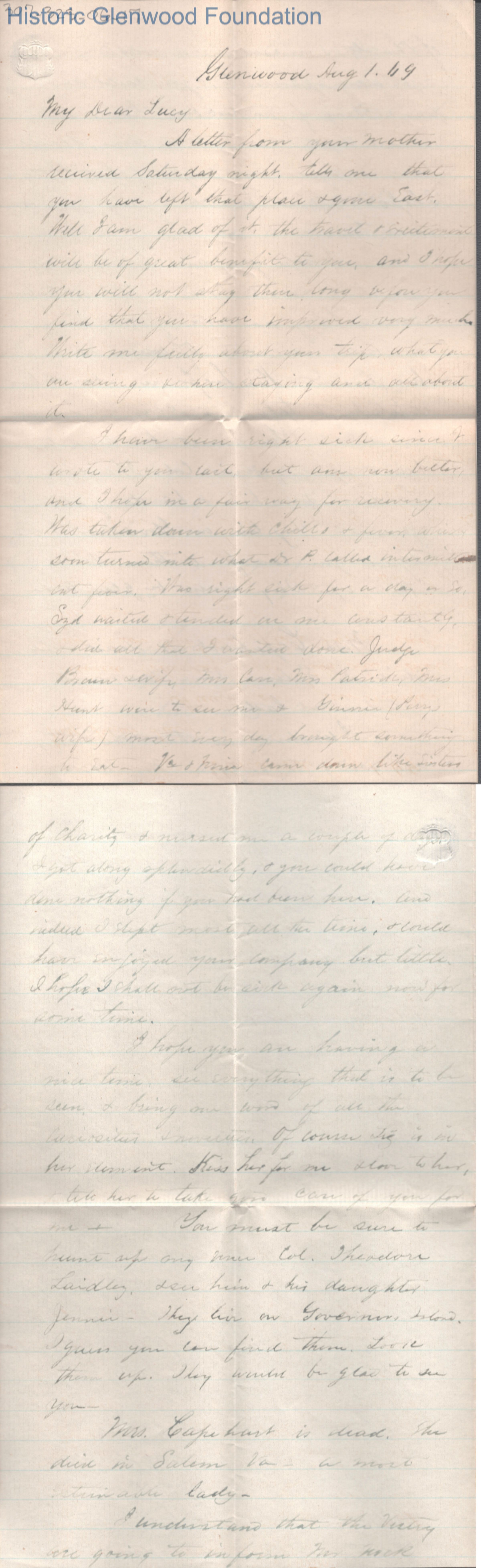 Four-page letter to Lucy W. Summers from Lewis Summers, Aug 1, 1869.