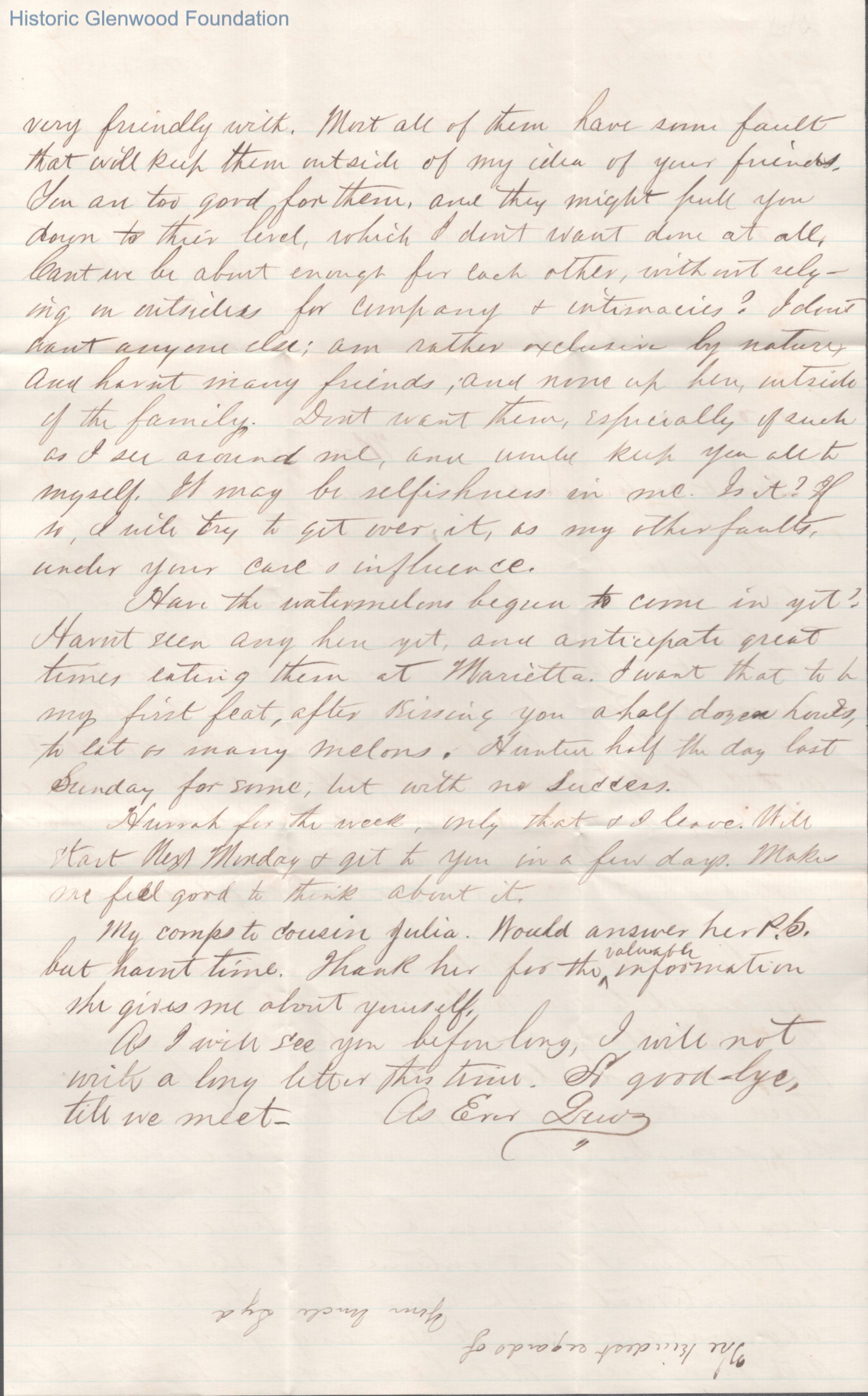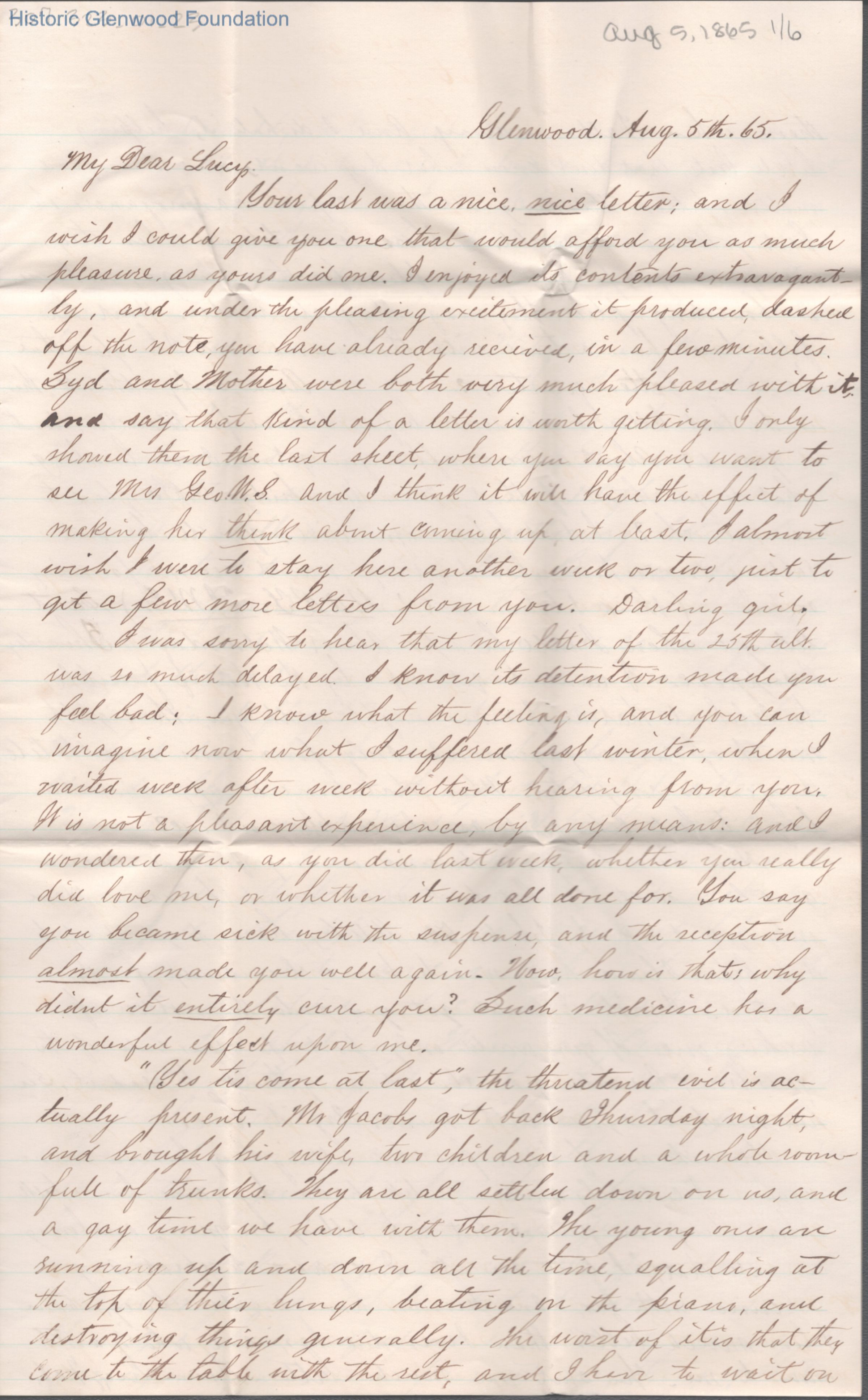 Lucy W. Summers from Lewis Summers, Aug 5, 1865