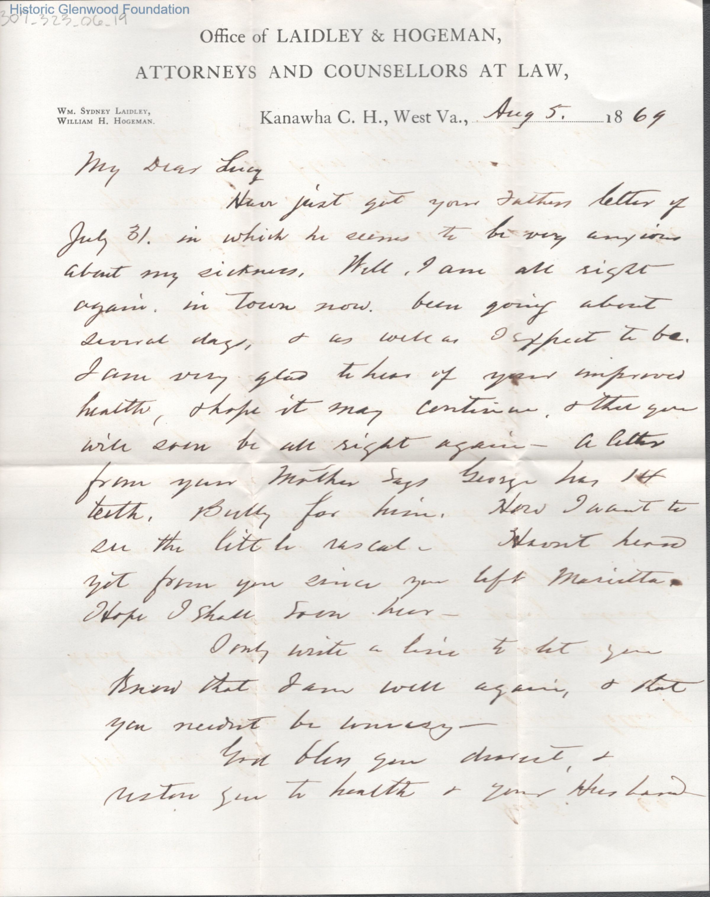 Lucy W. Summers from Lewis Summers, Aug 5, 1869