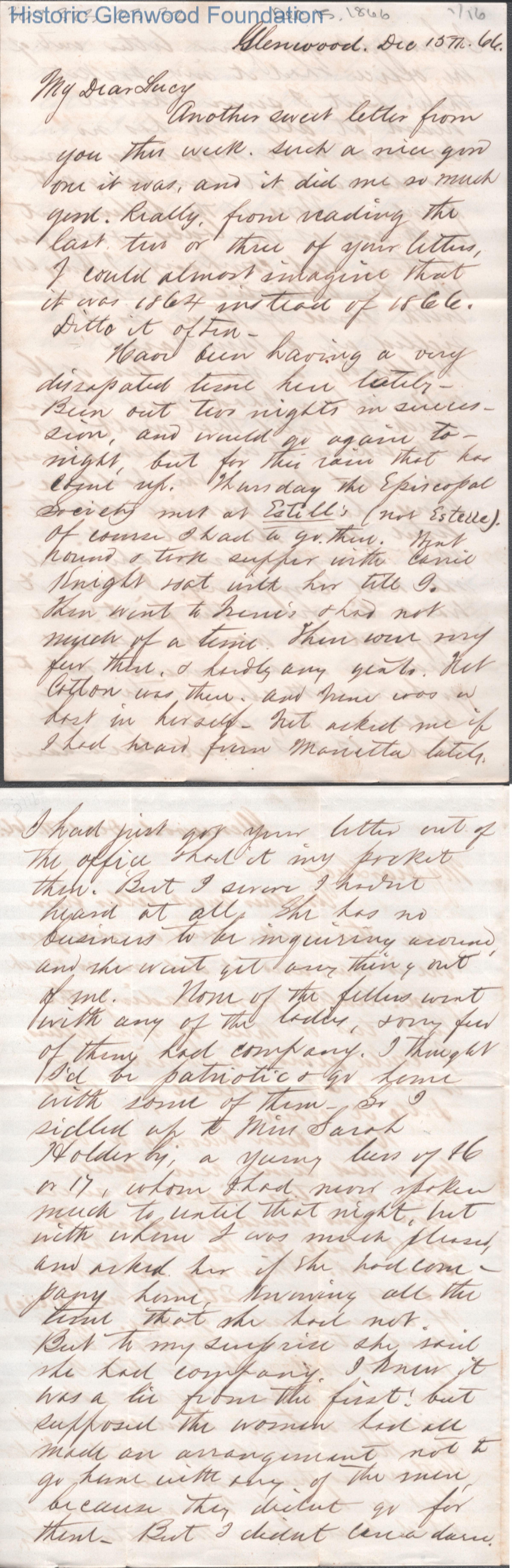 Lucy W. Summers from Lewis Summers, Dec 15, 1866