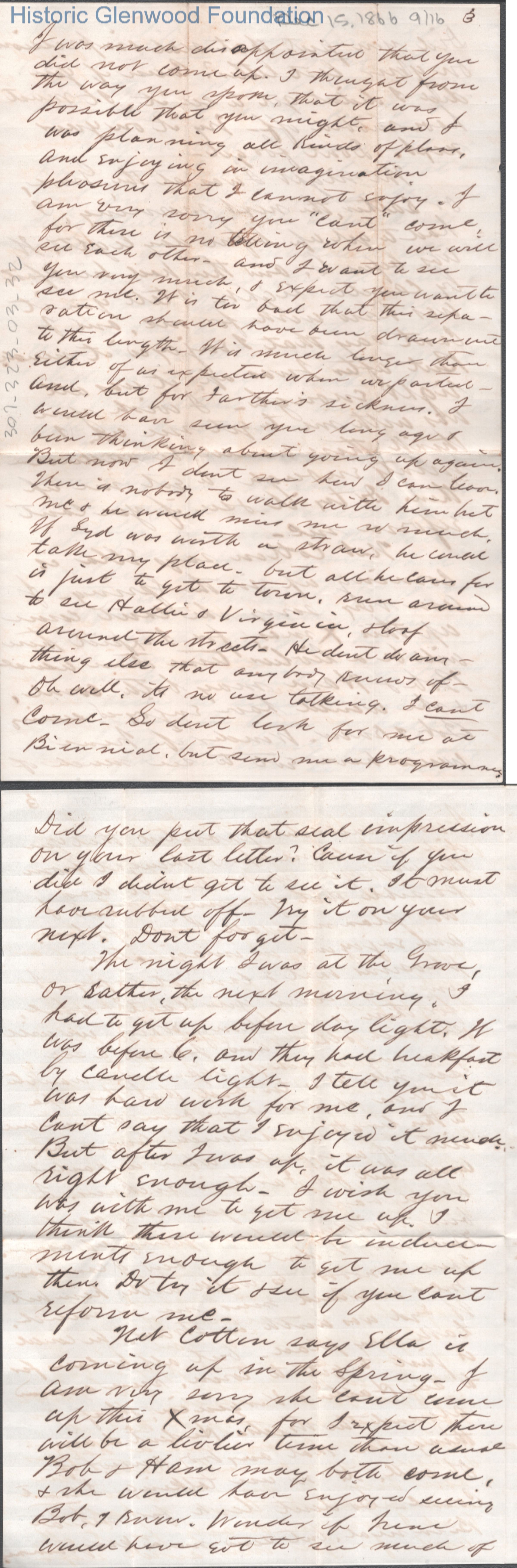 Sixteen-page letter to Lucy W. Summers from Lewis Summers, Dec 15, 1866.