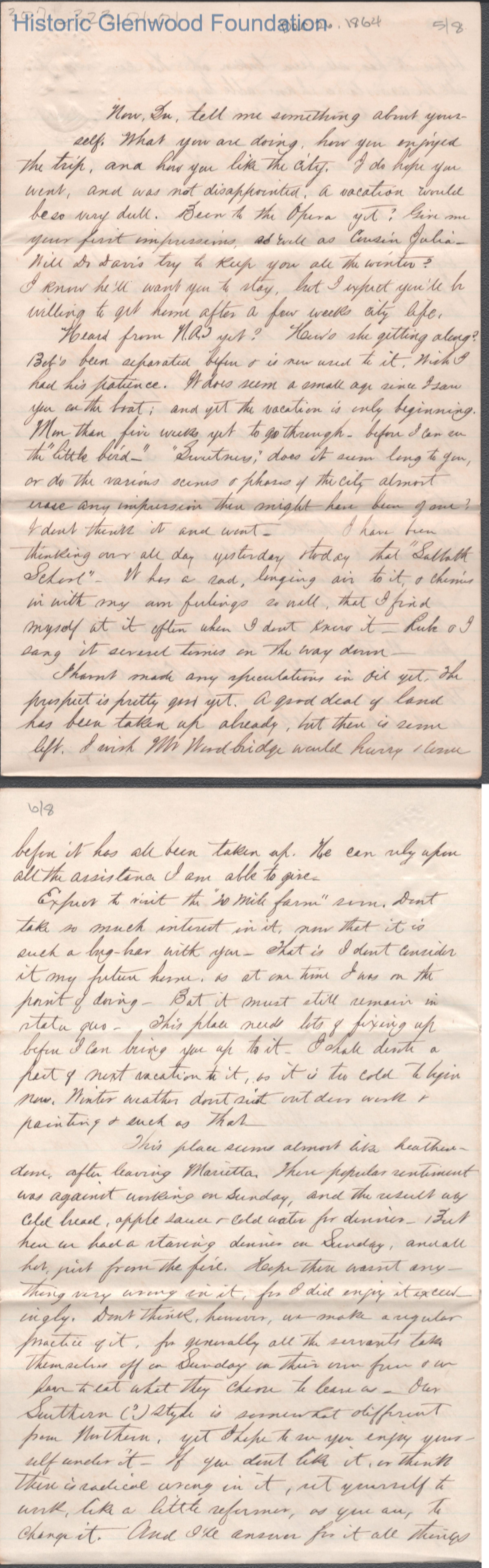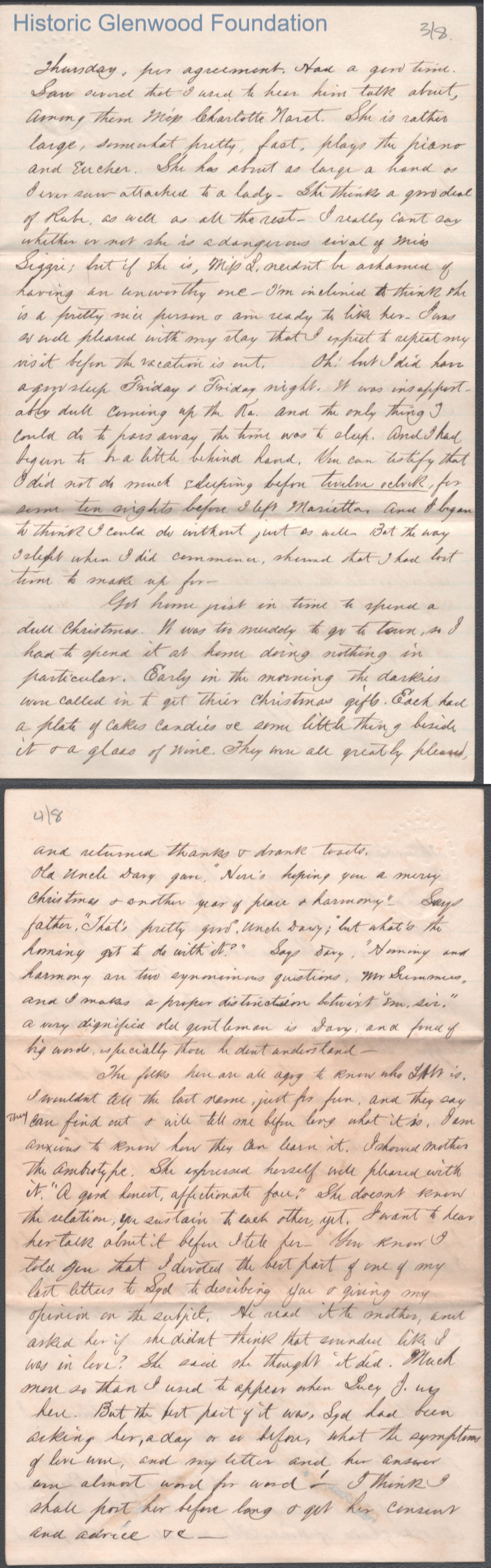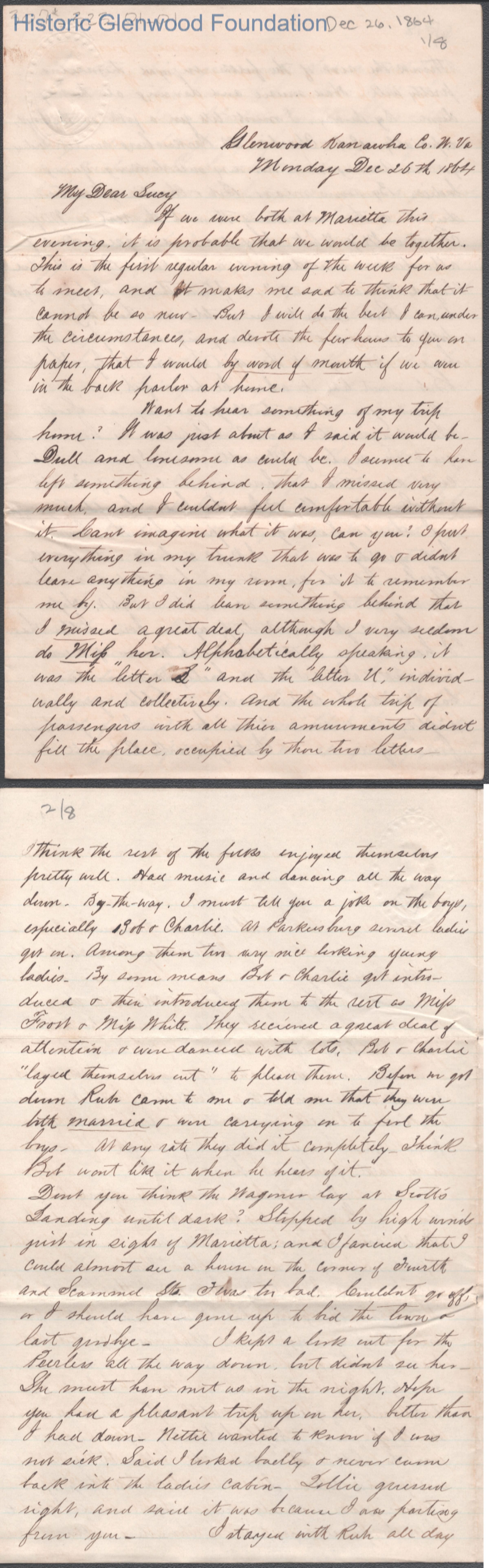 Eight-page letter to Lucy W. Summers from Lewis Summers, Dec 26, 1864.