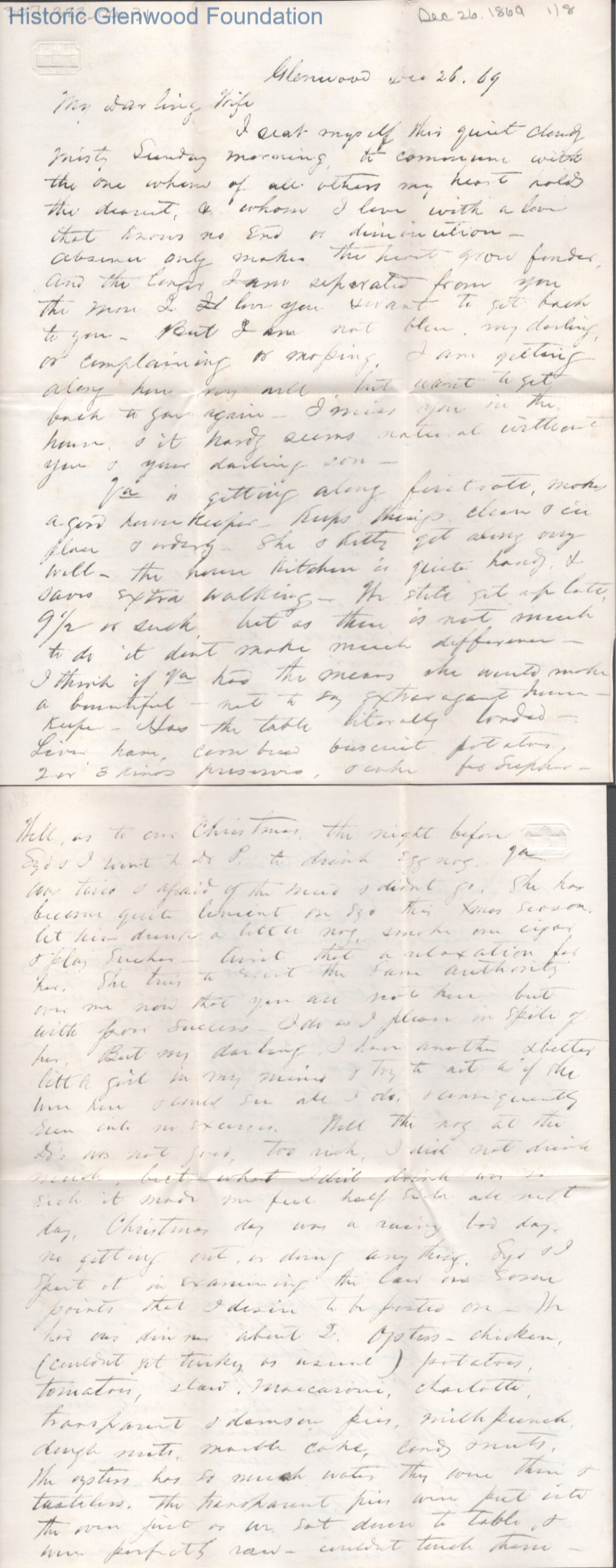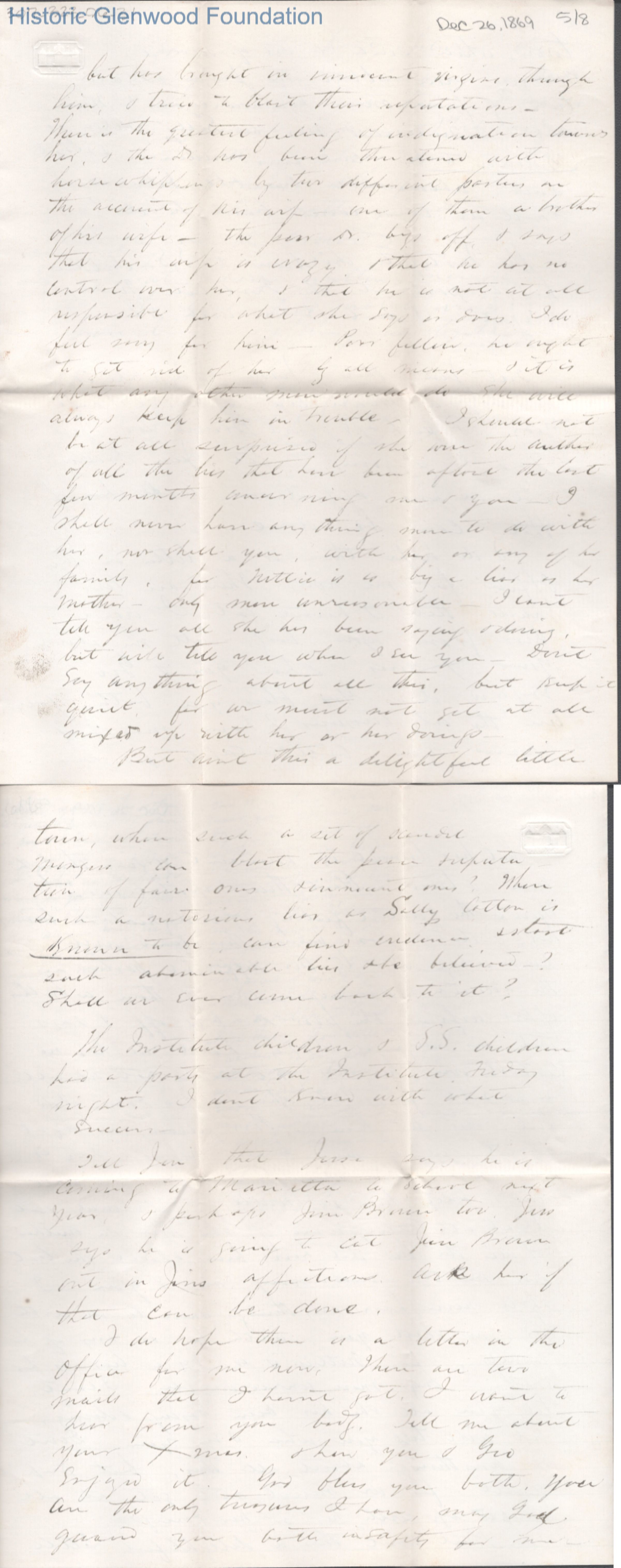 Eight-page letter to Lucy W. Summers from Lewis Summers, Dec 26, 1869.