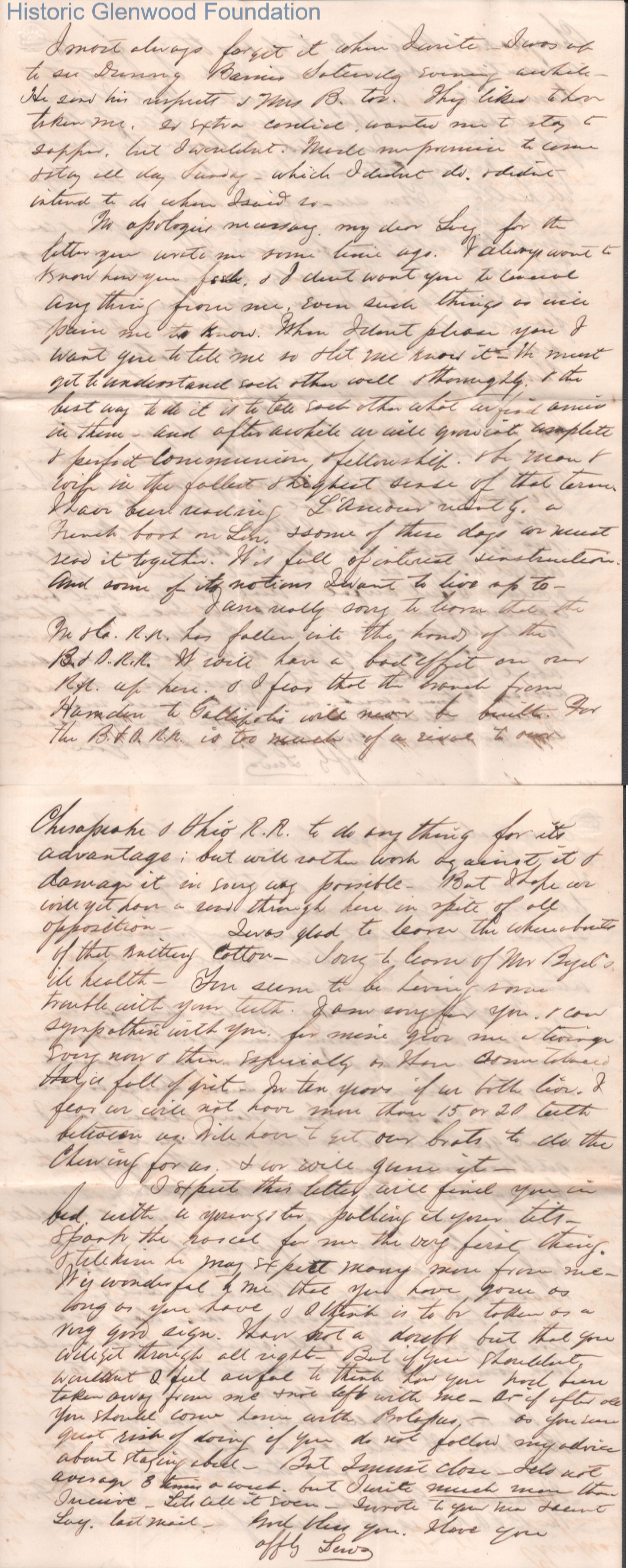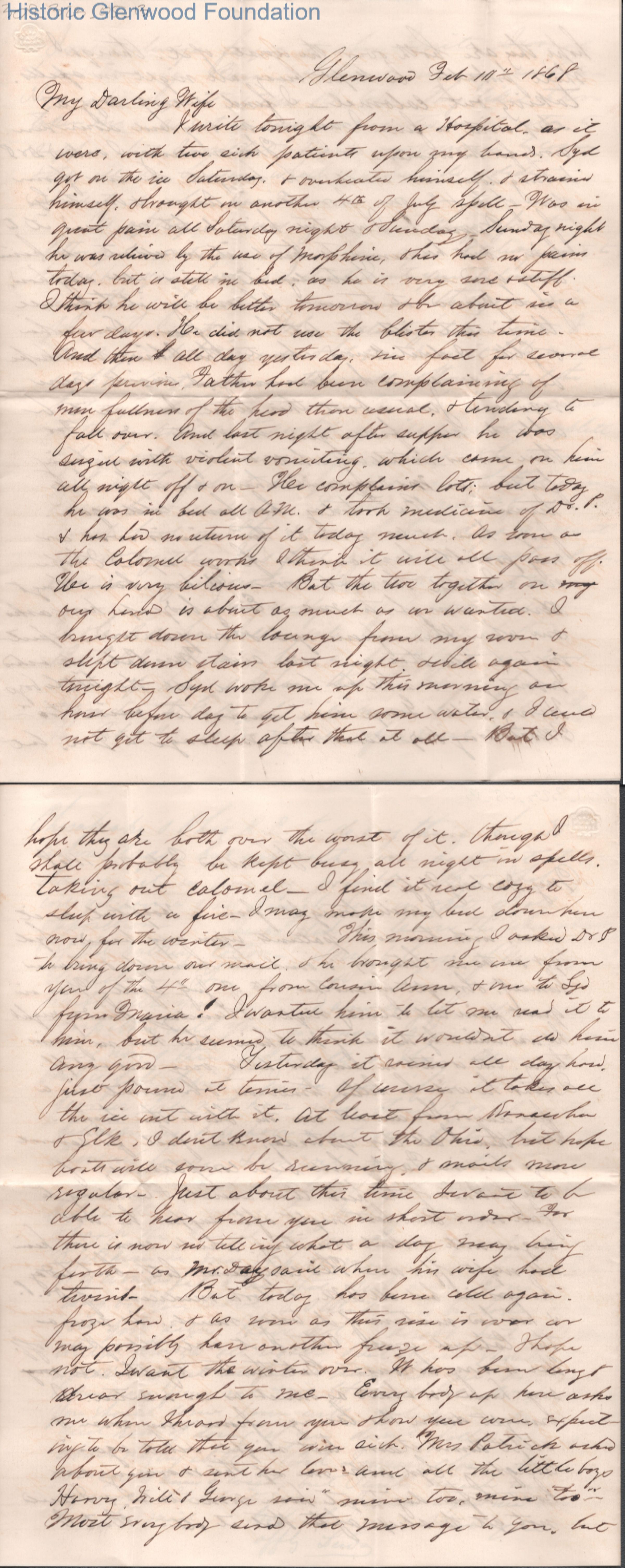 Four-page letter to Lucy W. Summers from Lewis Summers, Feb 10, 1868.