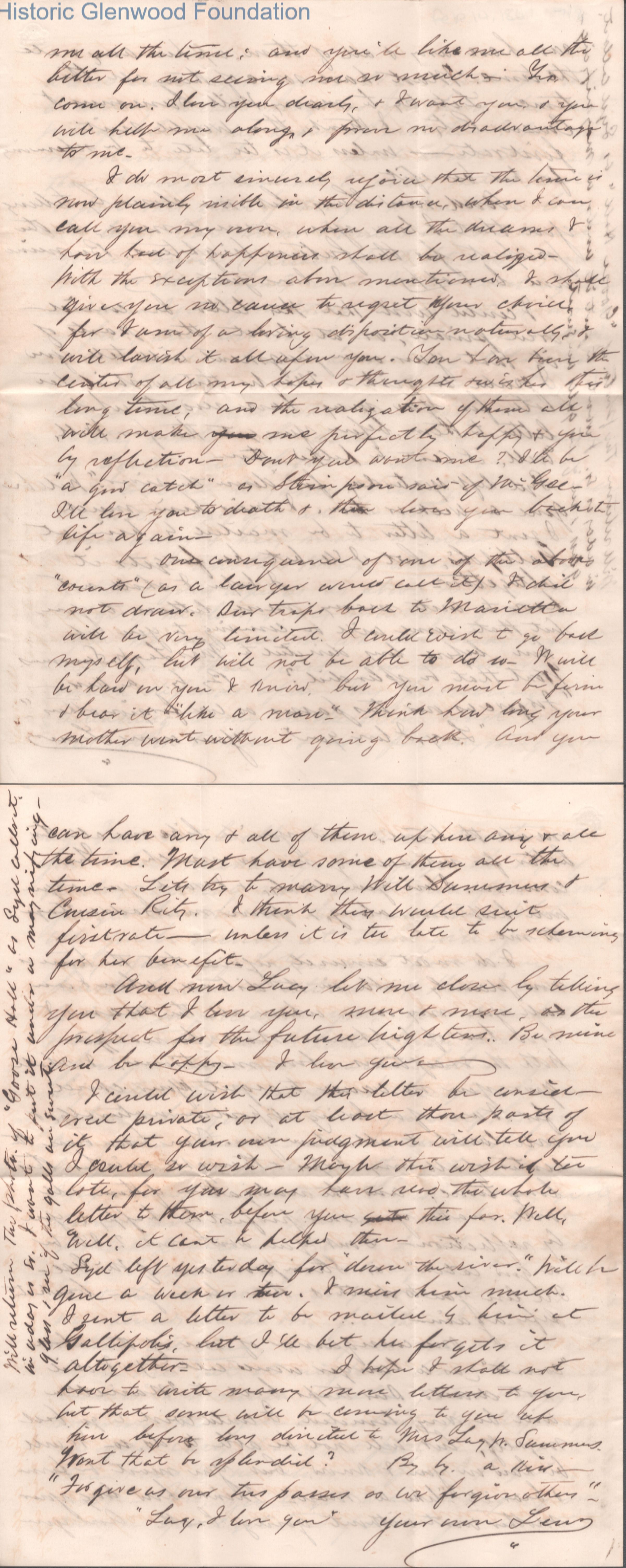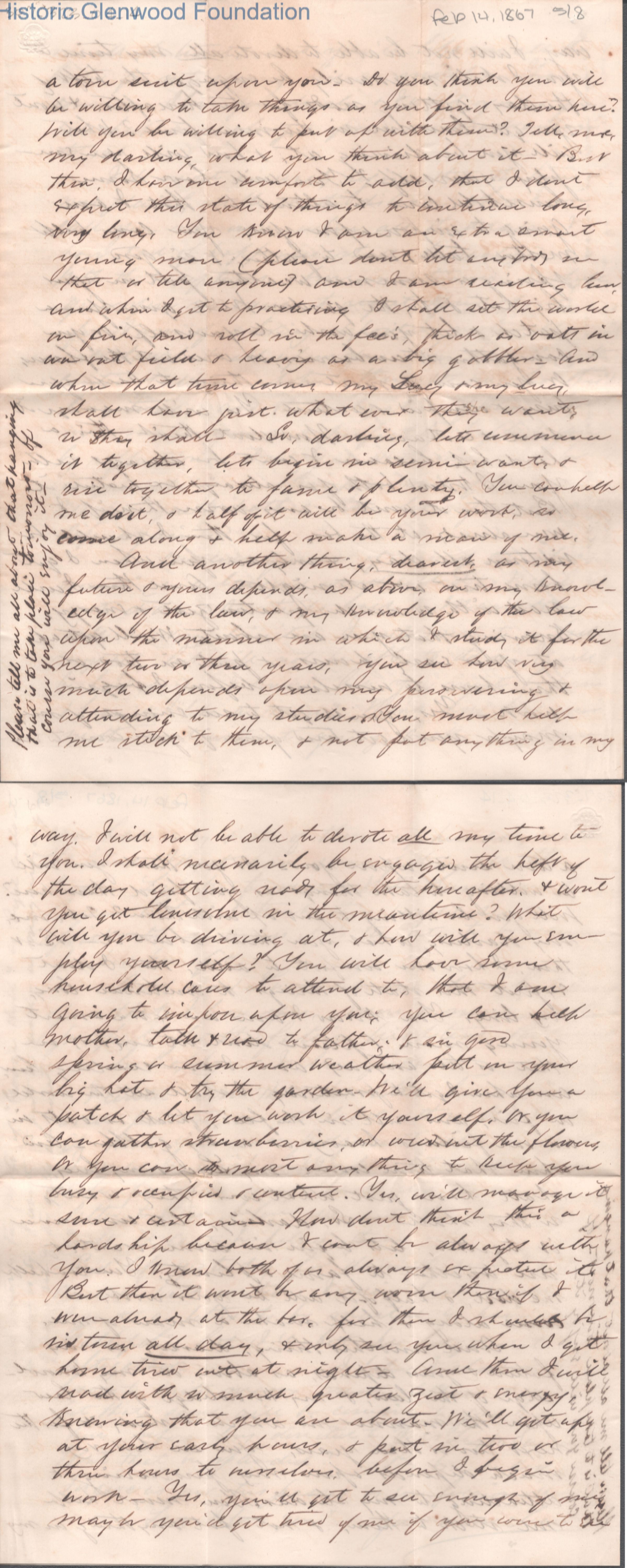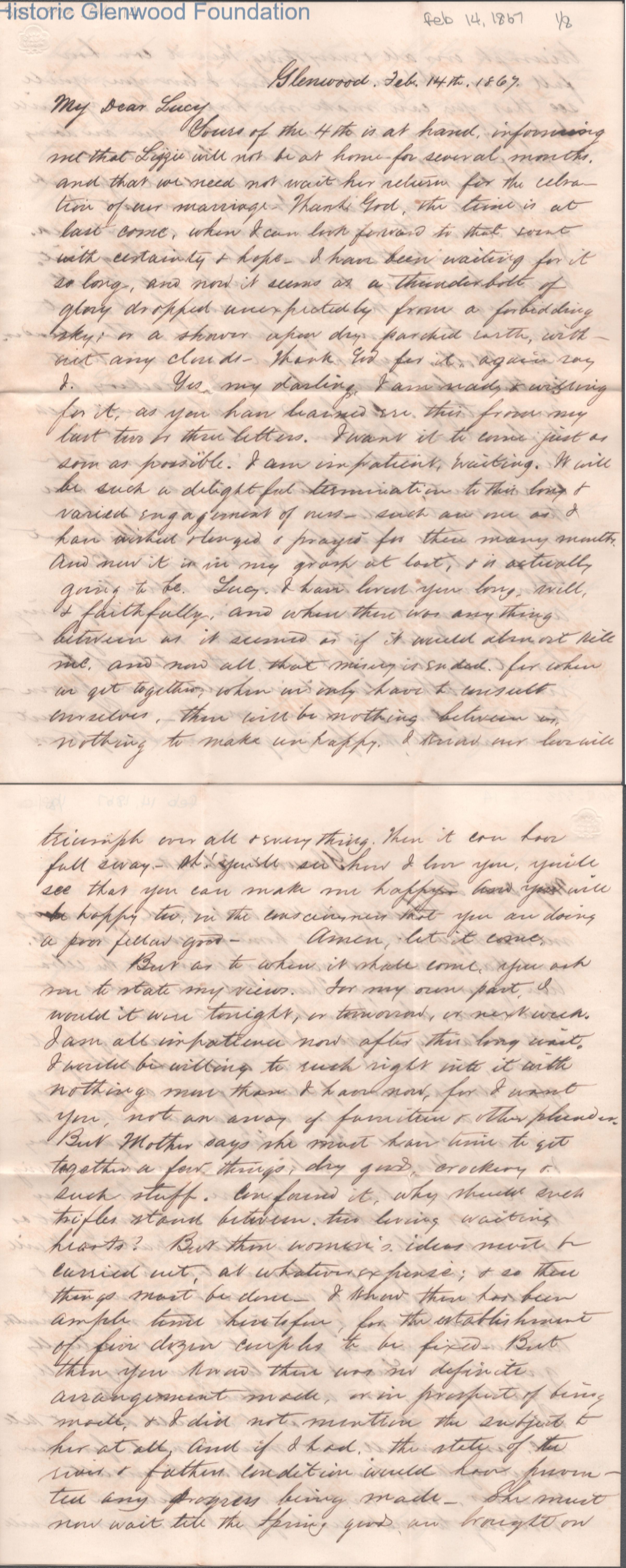 Eight-page letter to Lucy W. Summers from Lewis Summers, Feb 14, 1867.