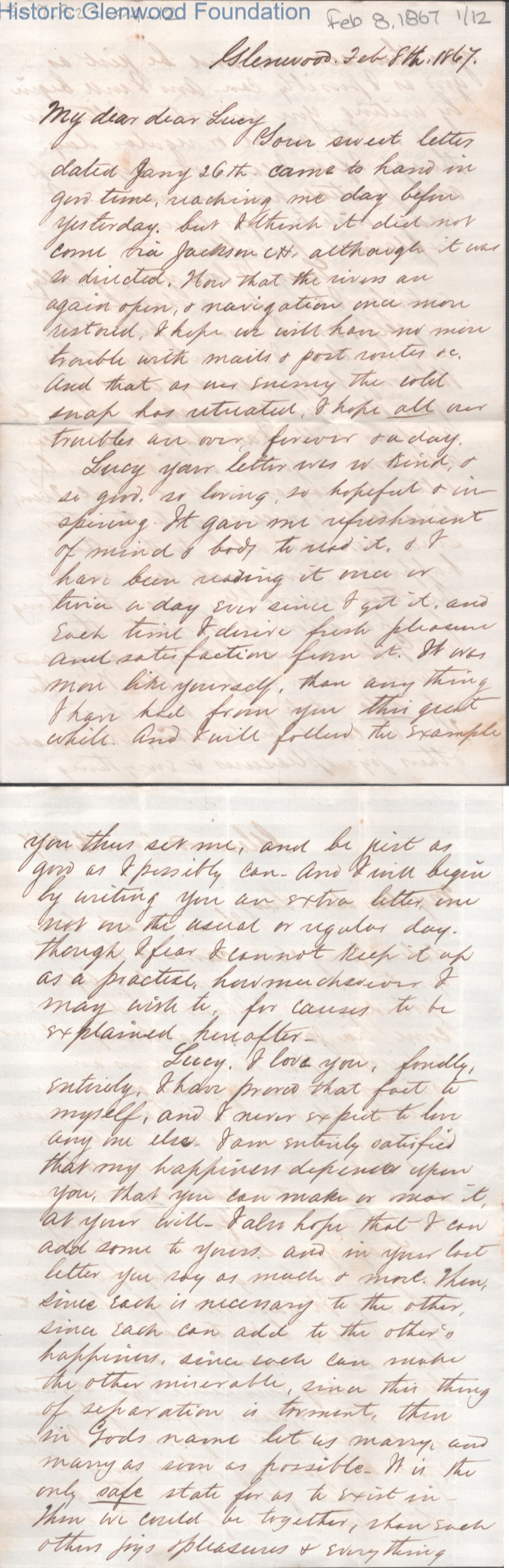 Lucy W. Summers from Lewis Summers, Feb 8, 1867
