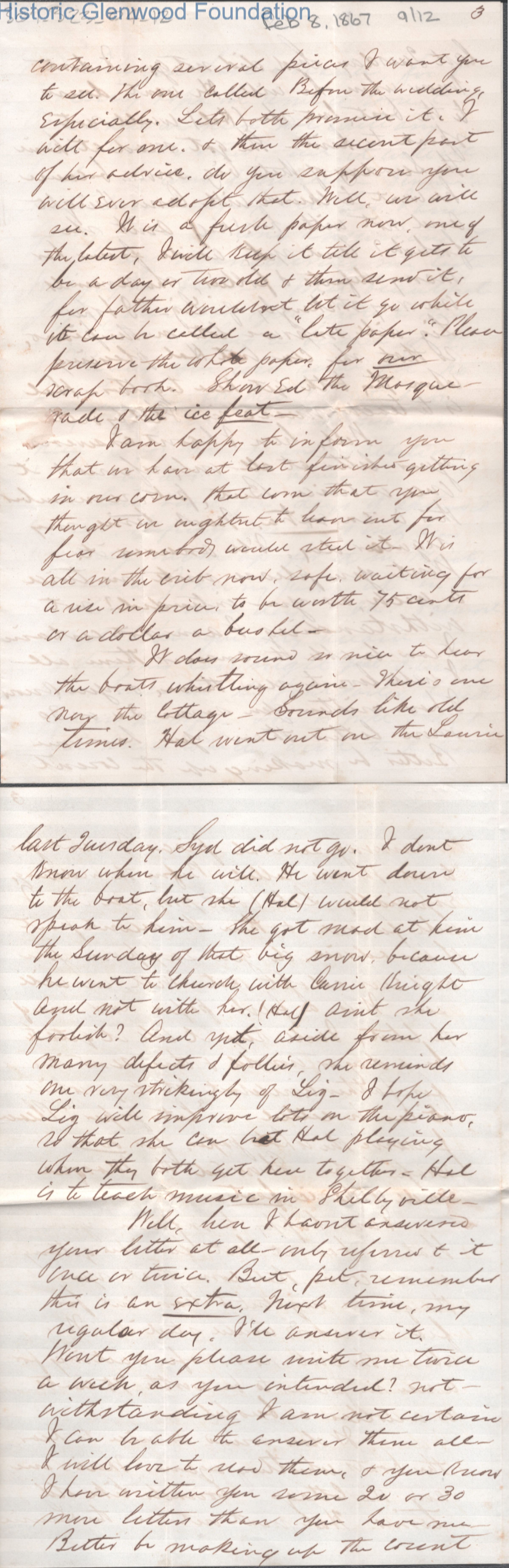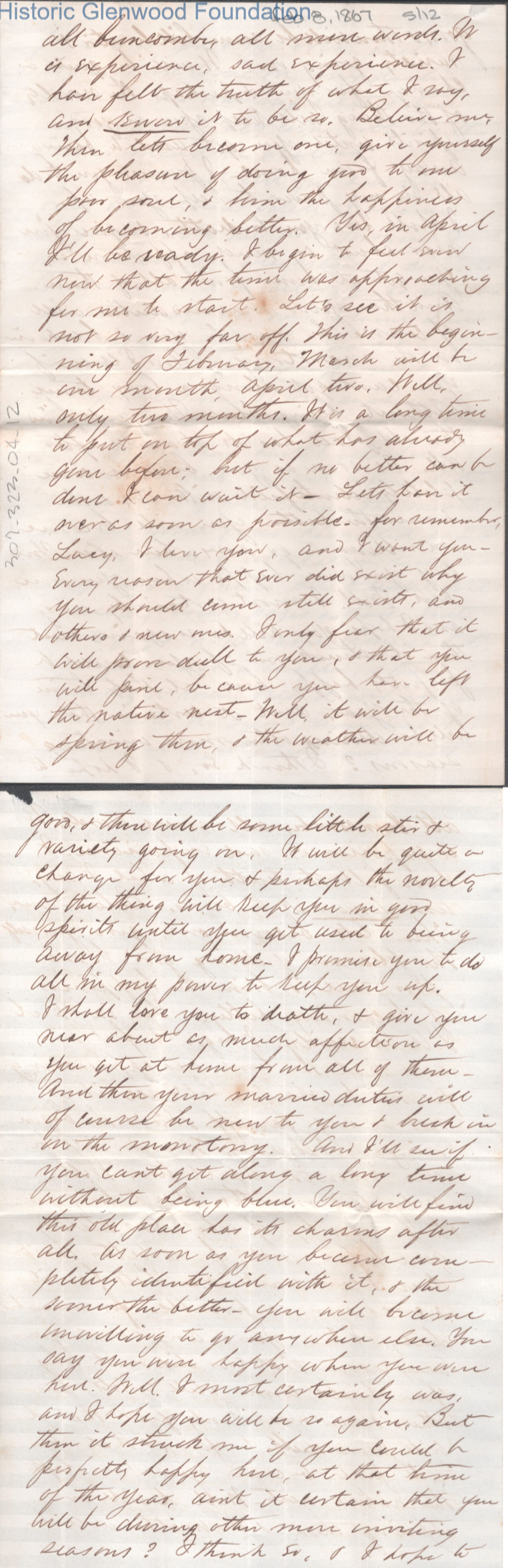 Twelve-page letter to Lucy W. Summers from Lewis Summers, Feb 8, 1867.
