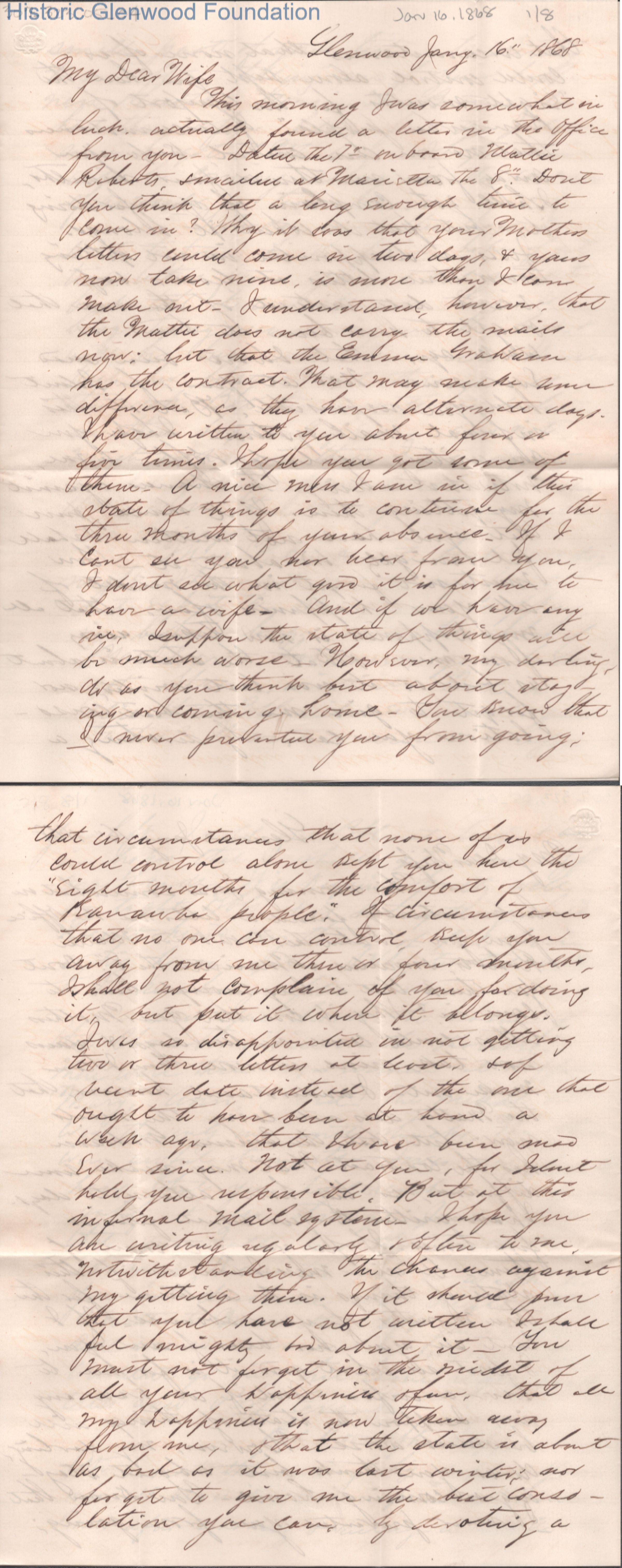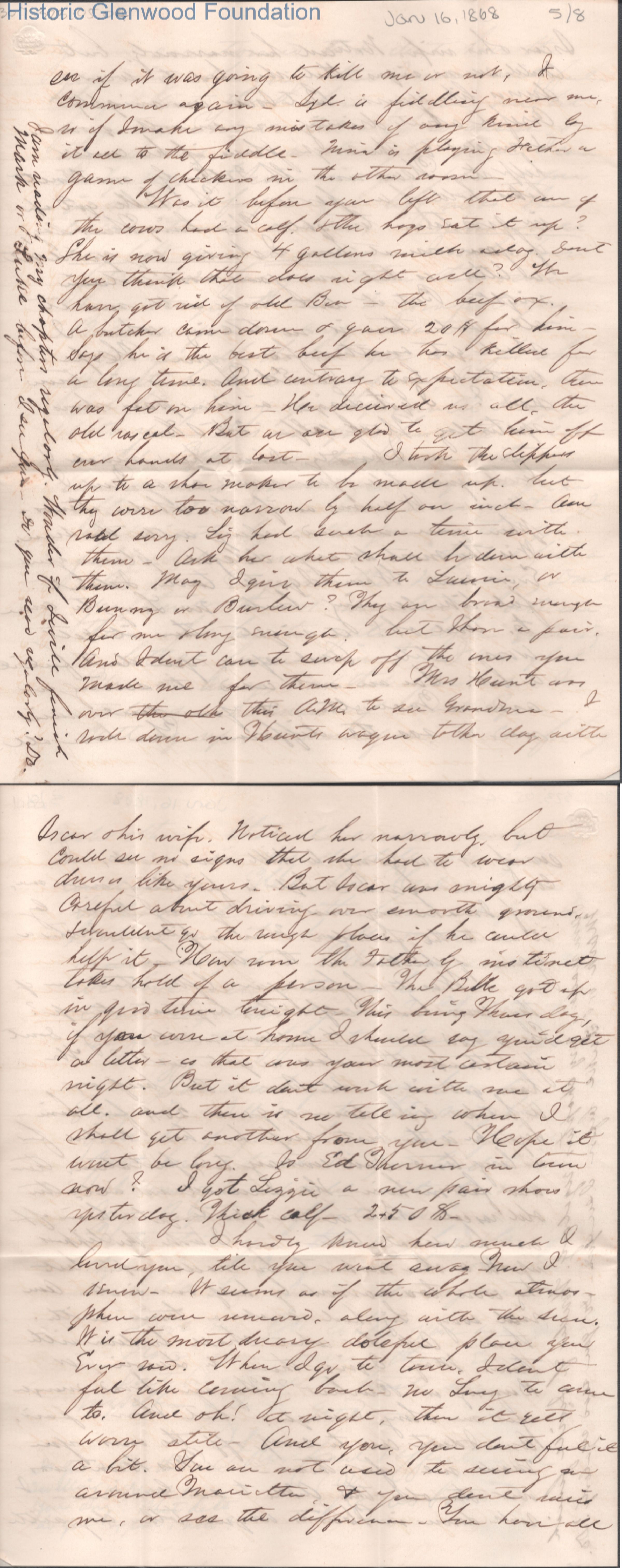 Eight-page letter to Lucy W. Summers from Lewis Summers, Jan 16, 1868.