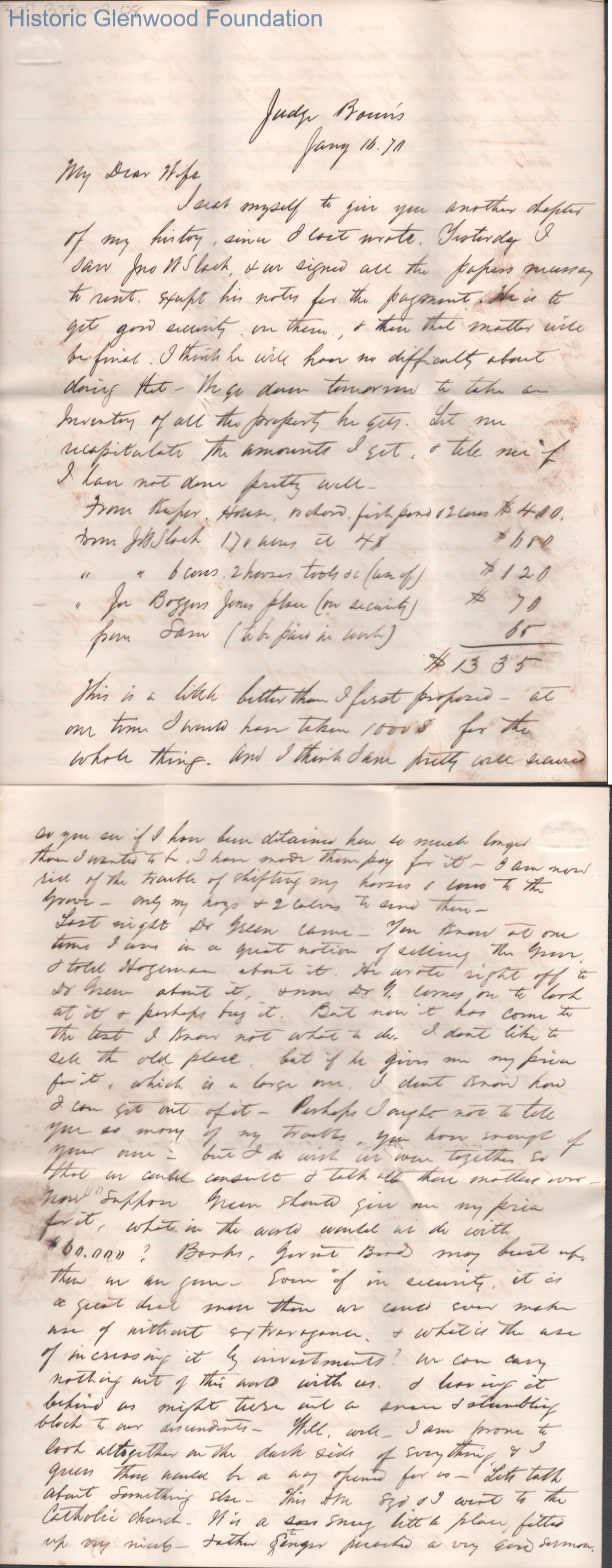 Lucy W. Summers from Lewis Summers, Jan 16, 1870