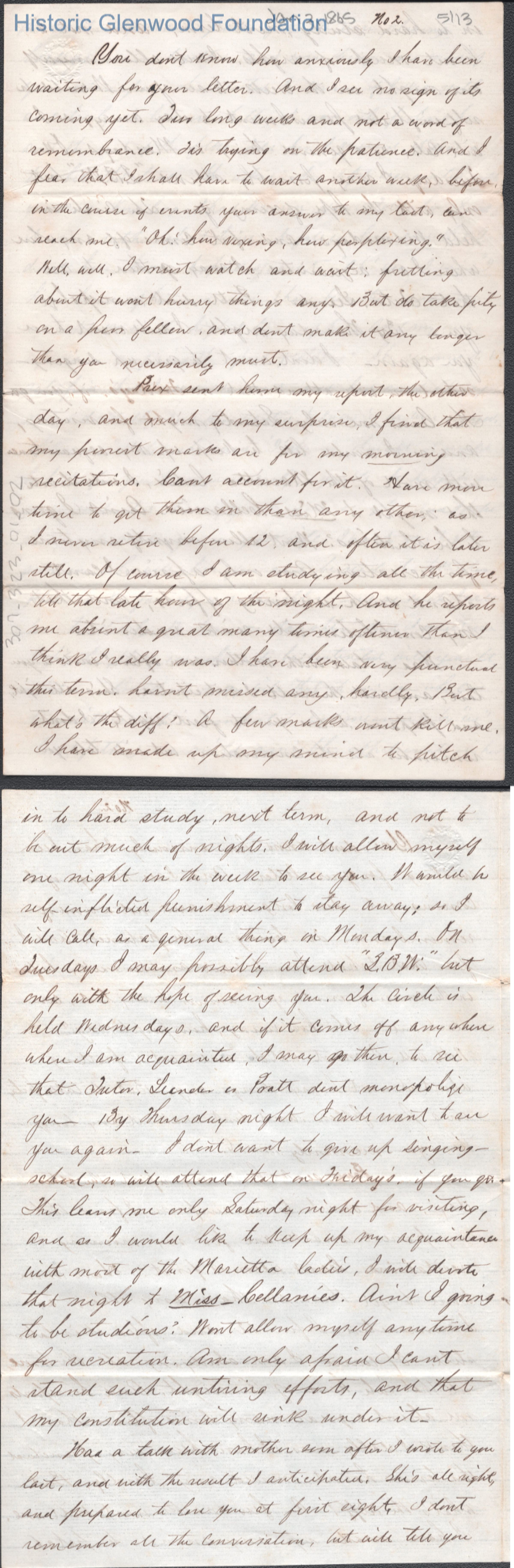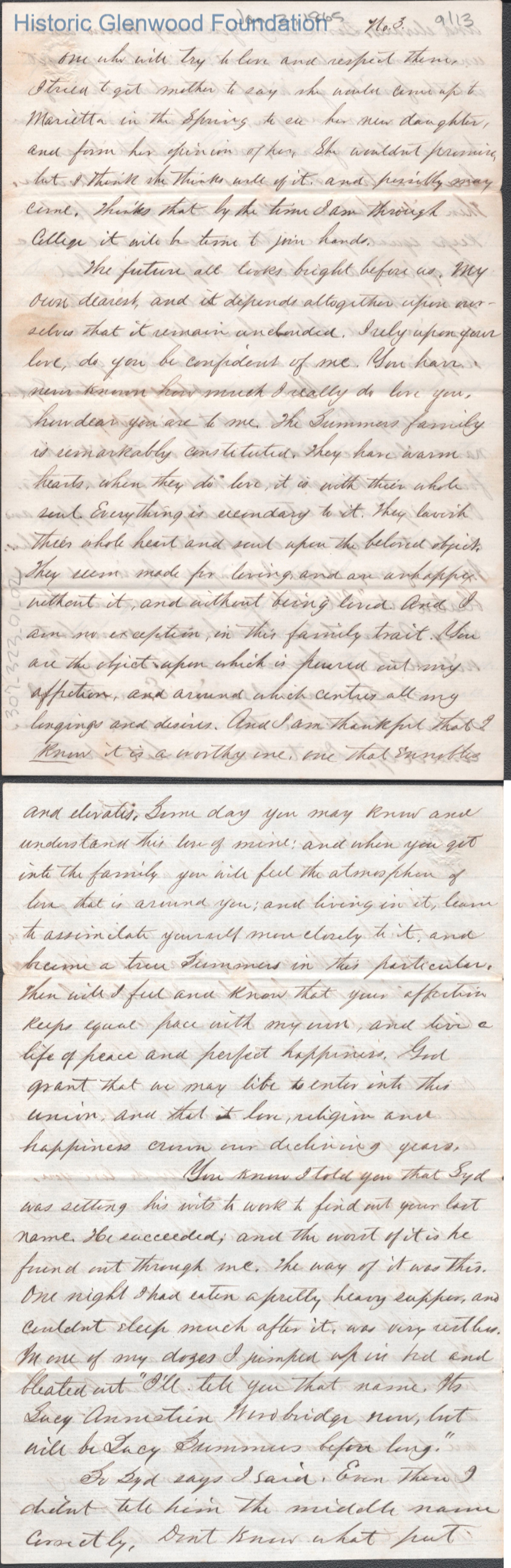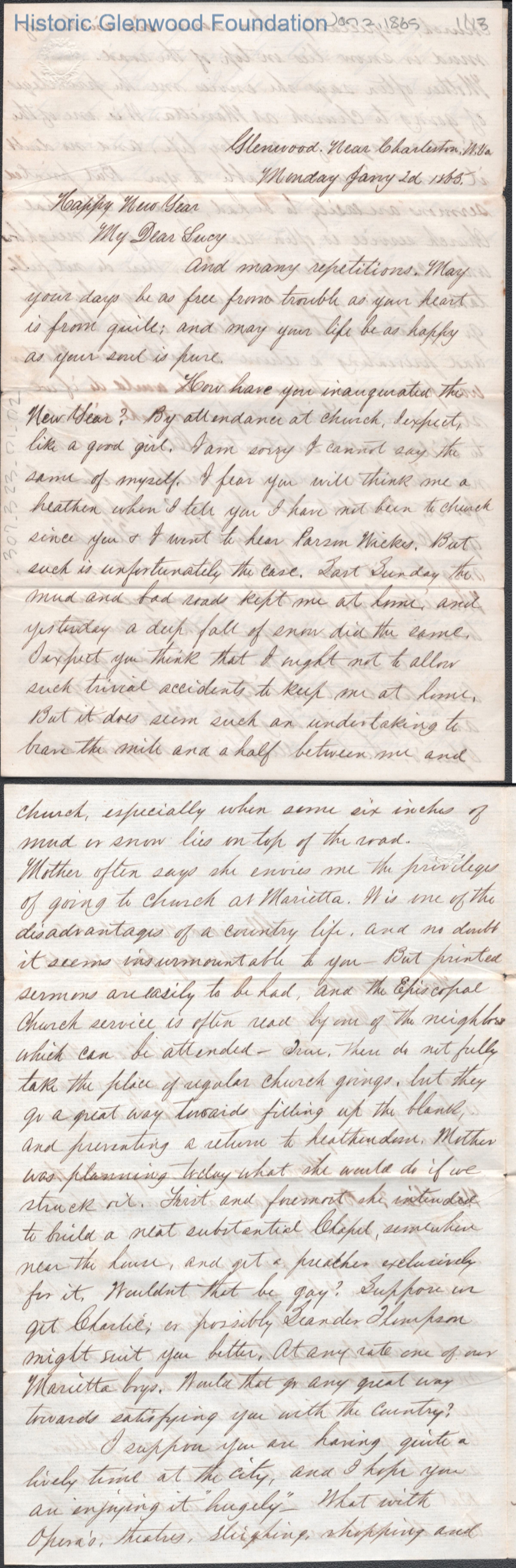 Thirteen-page letter to Lucy W. Summers from Lewis Summers, Jan 2, 1865.