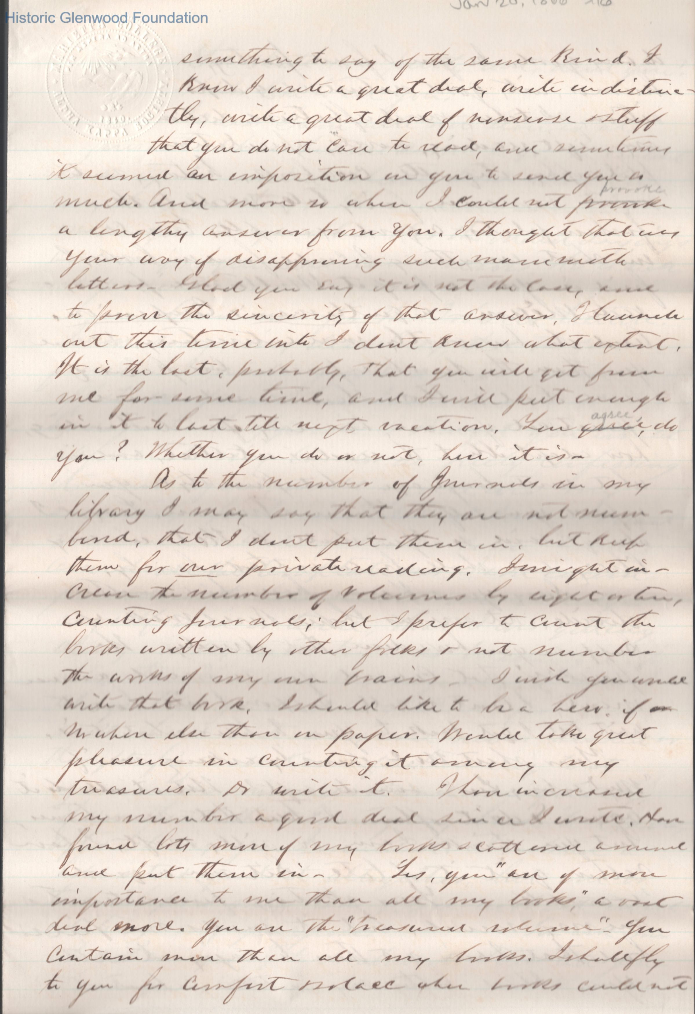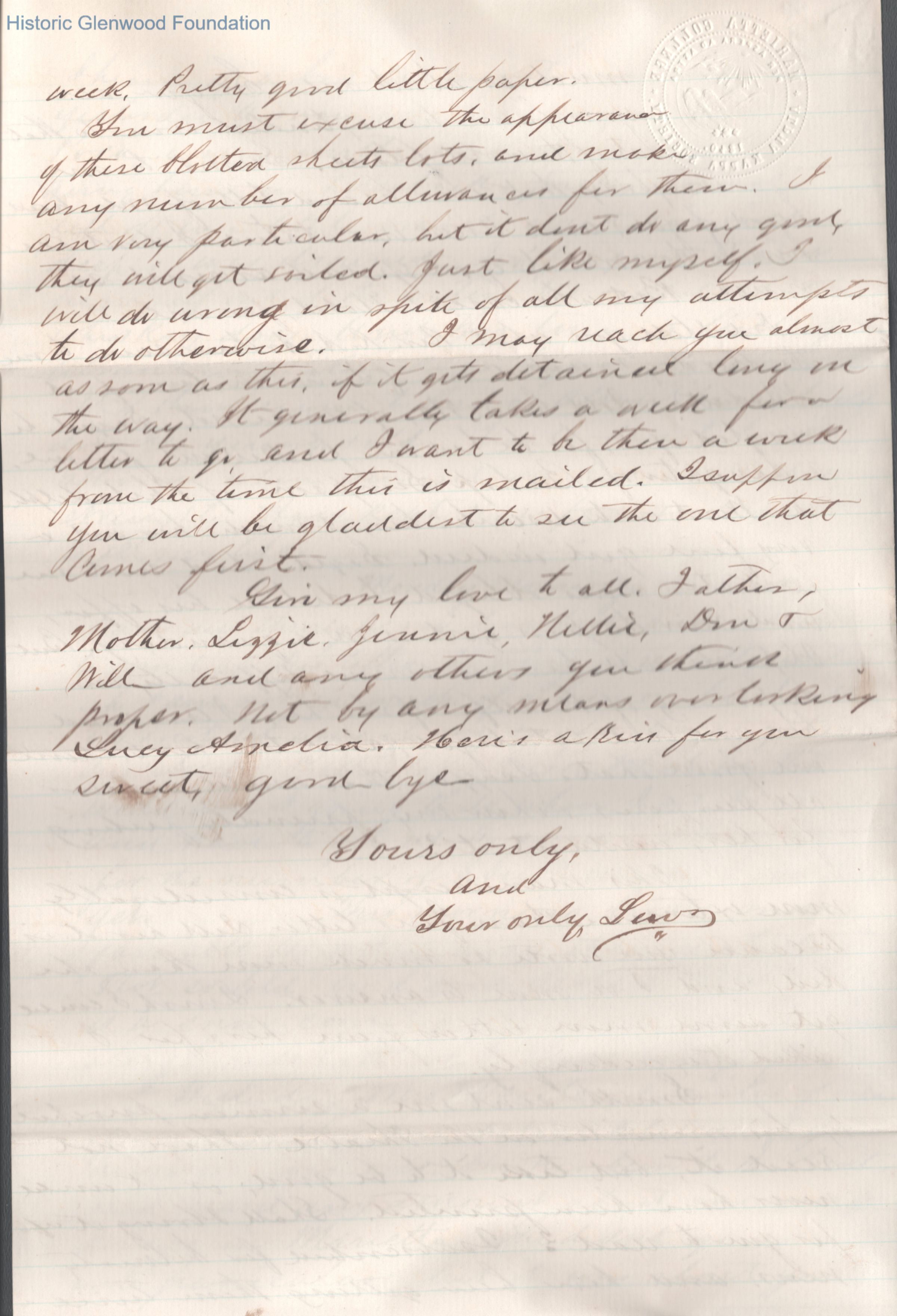 Lucy W. Summers from Lewis Summers, Jan 20, 1866