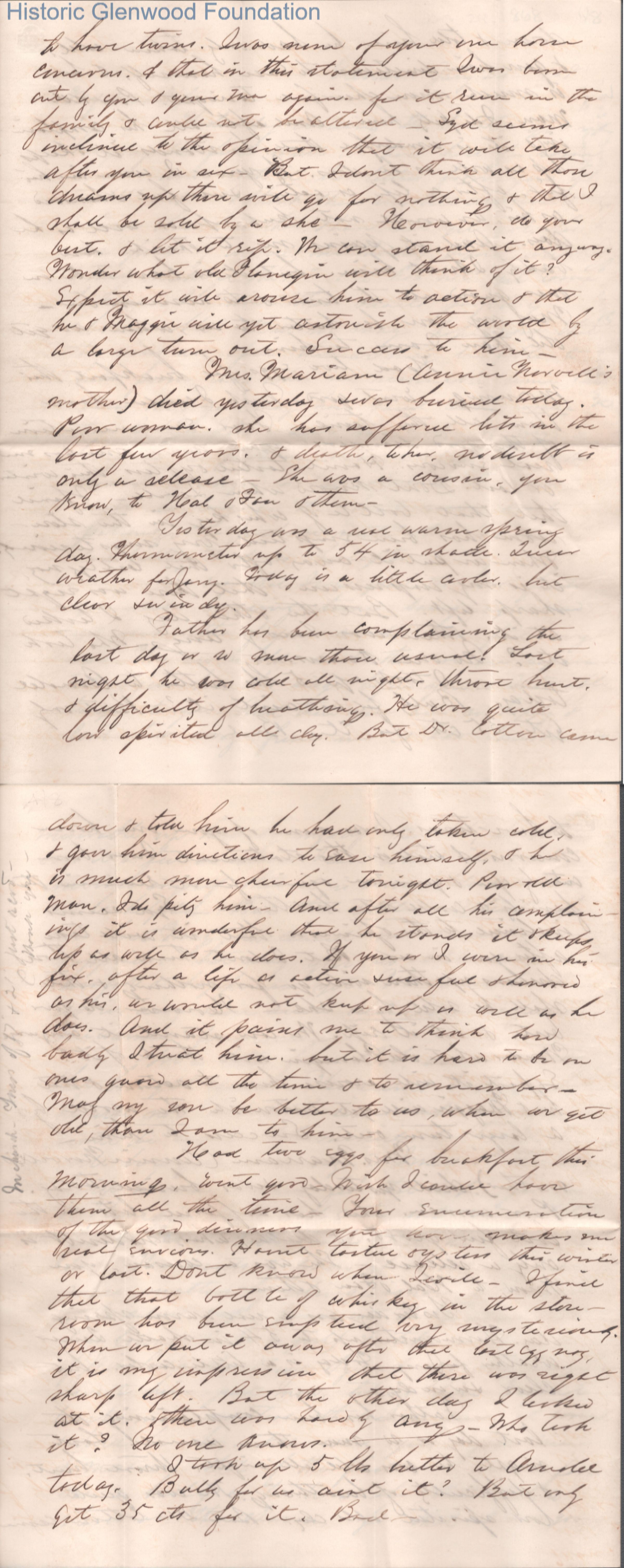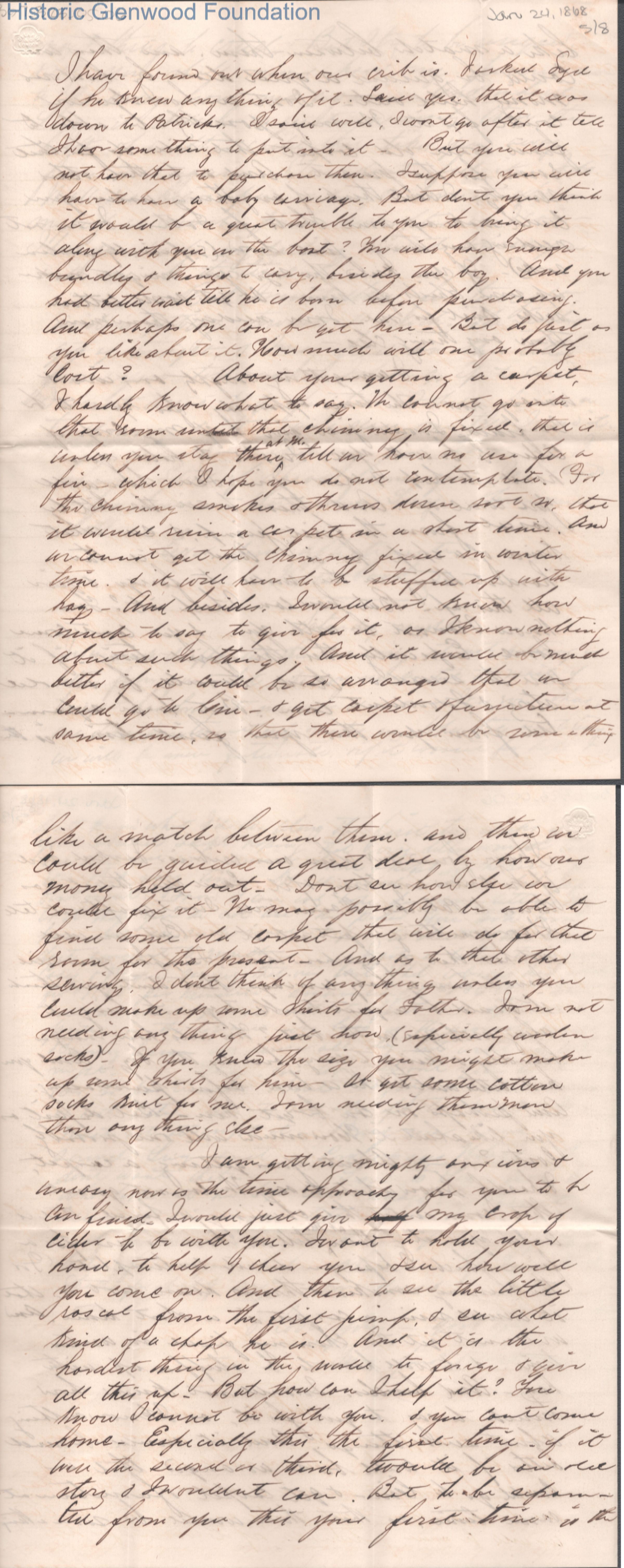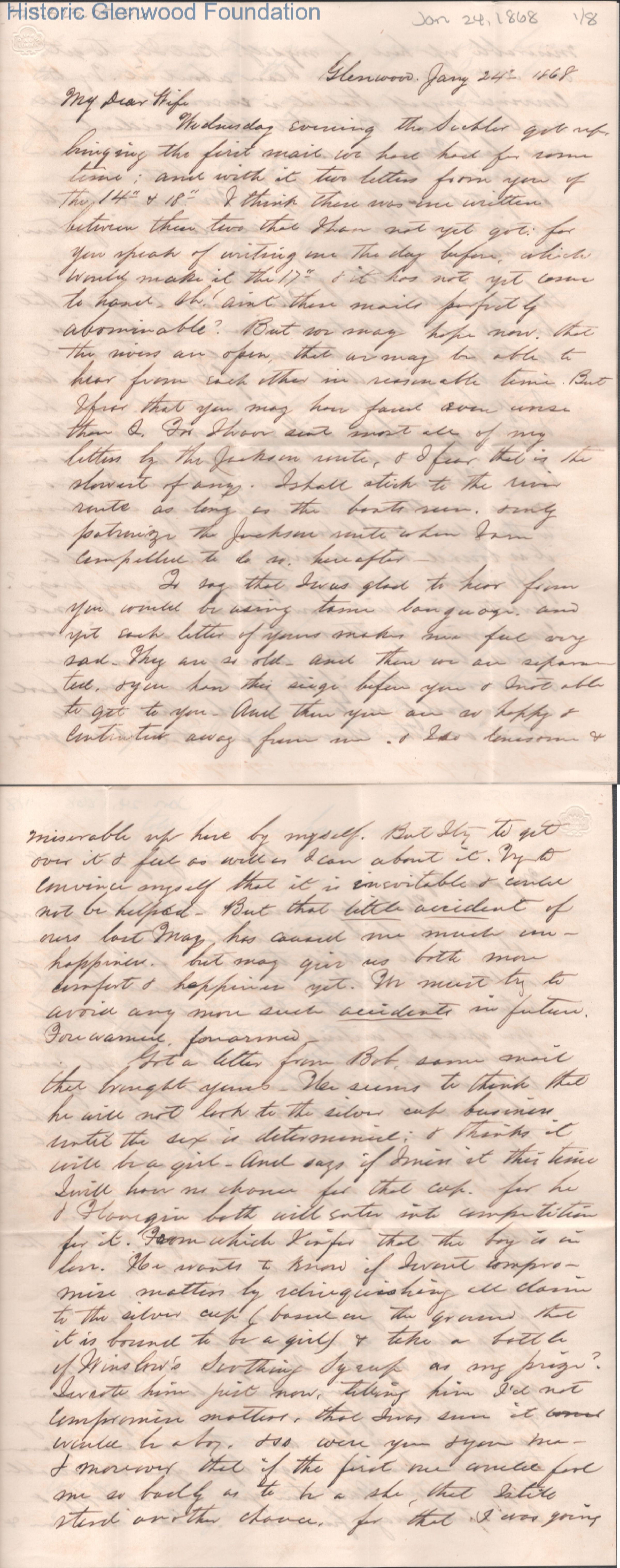 Eight-page letter to Lucy W. Summers from Lewis Summers, Jan 24, 1868.