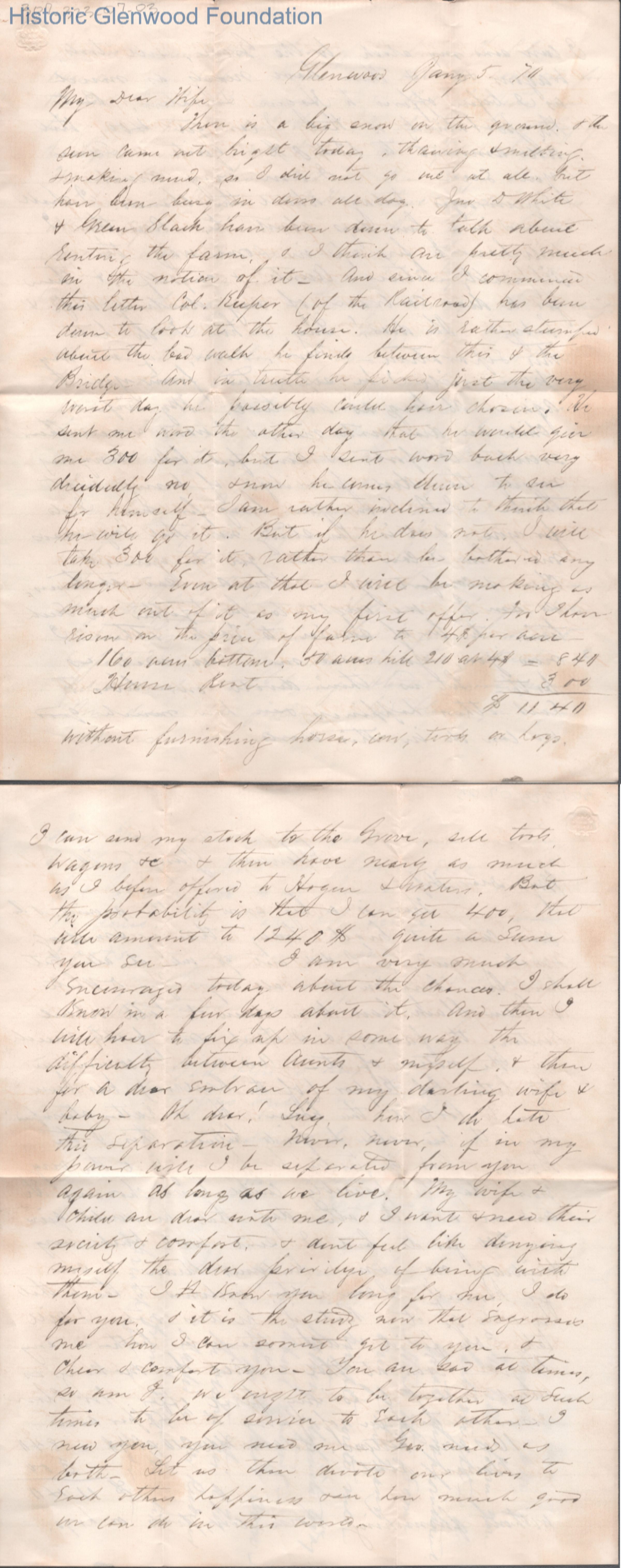 Four-page letter to Lucy W. Summers from Lewis Summers, Jan 5, 1870.