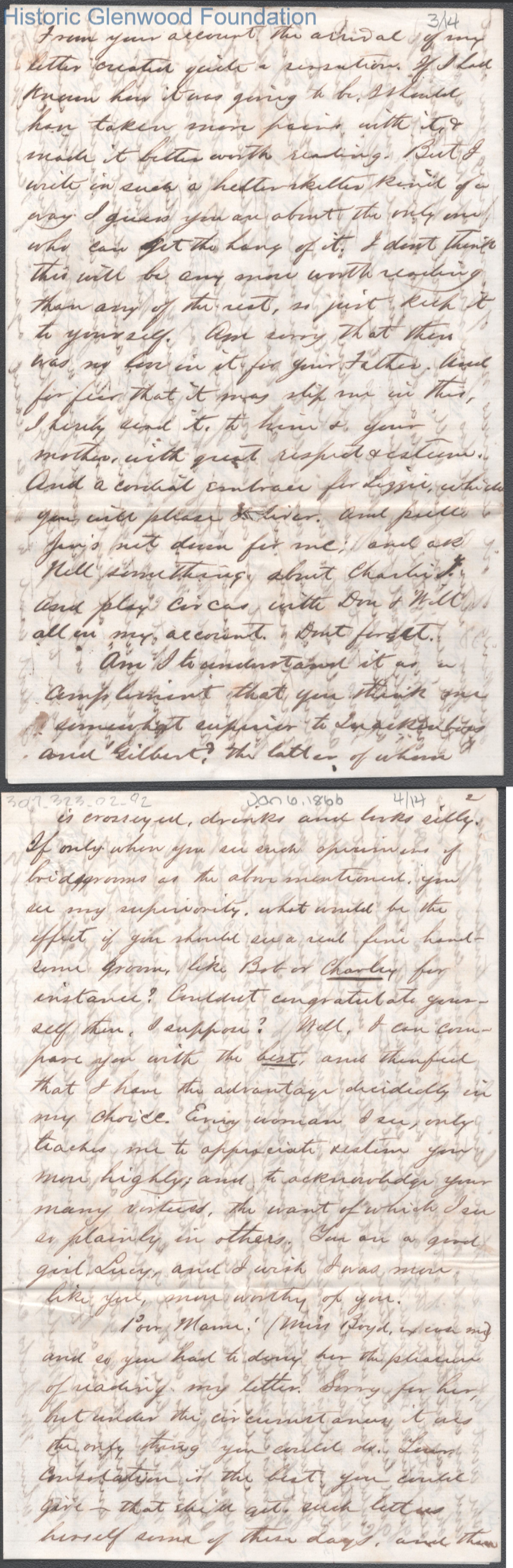 Fifteen-page letter to Lucy W. Summers from Lewis Summers, Jan 6, 1866.