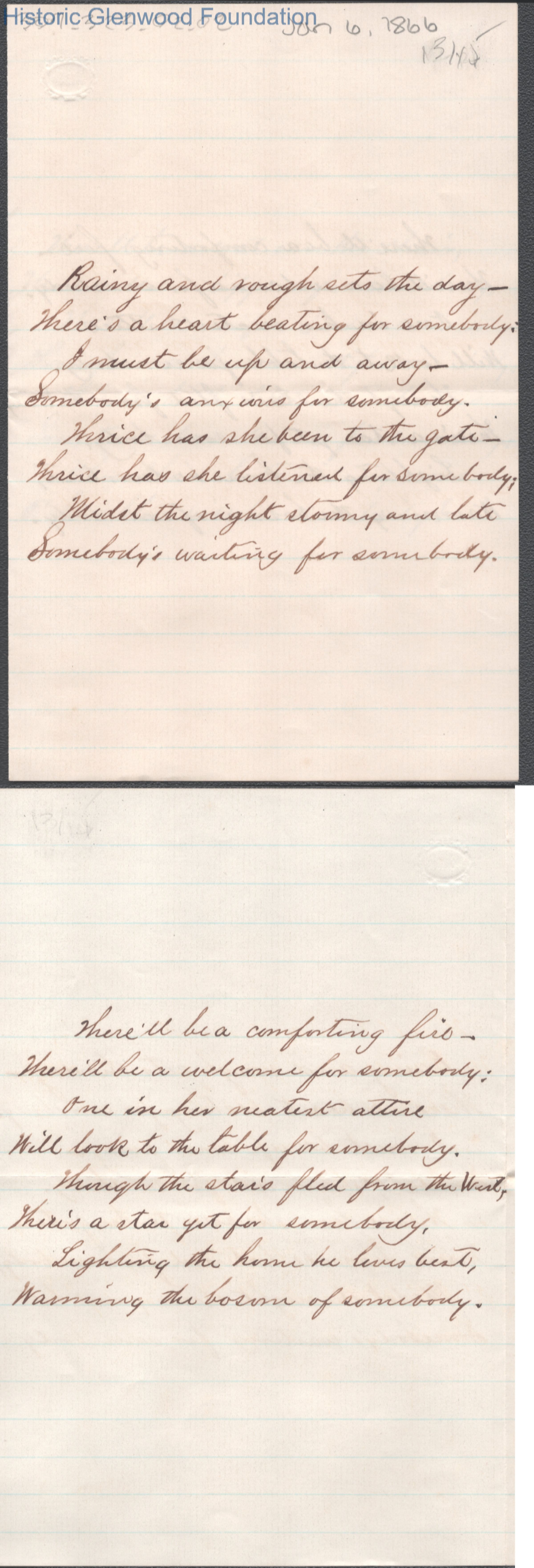 Lucy W. Summers from Lewis Summers, Jan 6, 1866