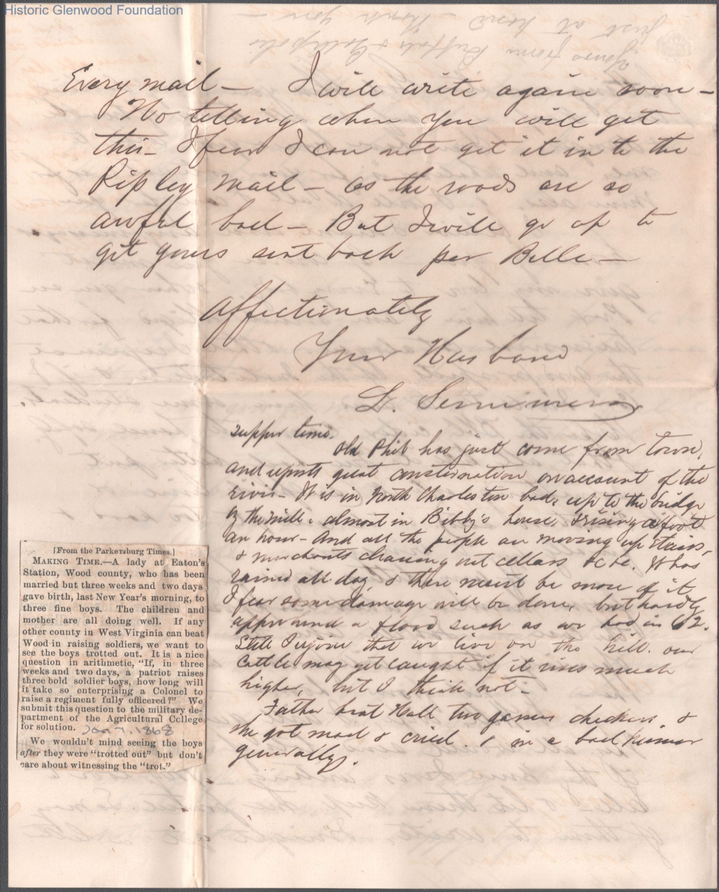 Eight-page letter and enclosure to Lucy W. Summers from Lewis Summers, Jan 7, 1868.