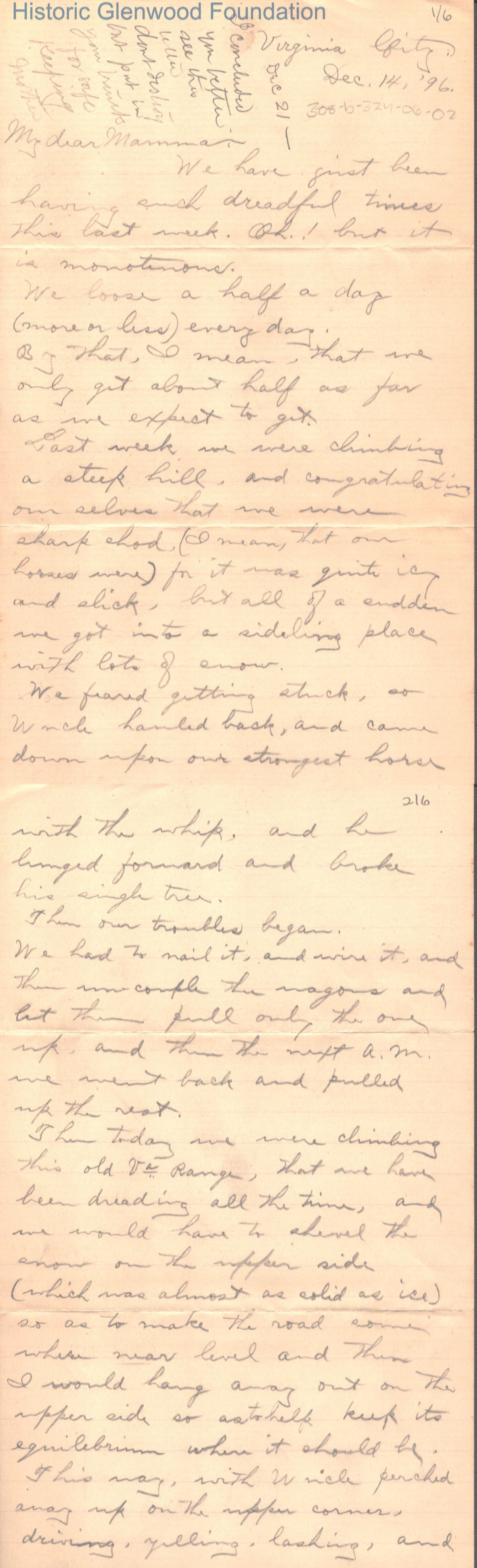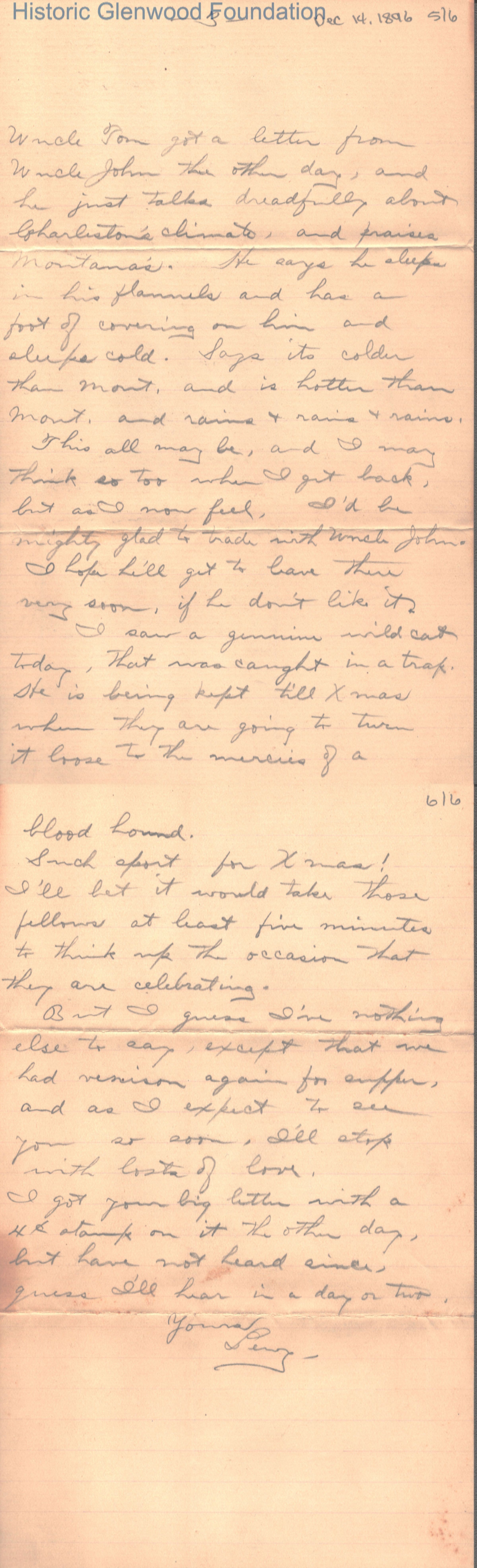 Lucy W. Summers from Lewis Summers Jr, December 14, 1896Entry/Object ID