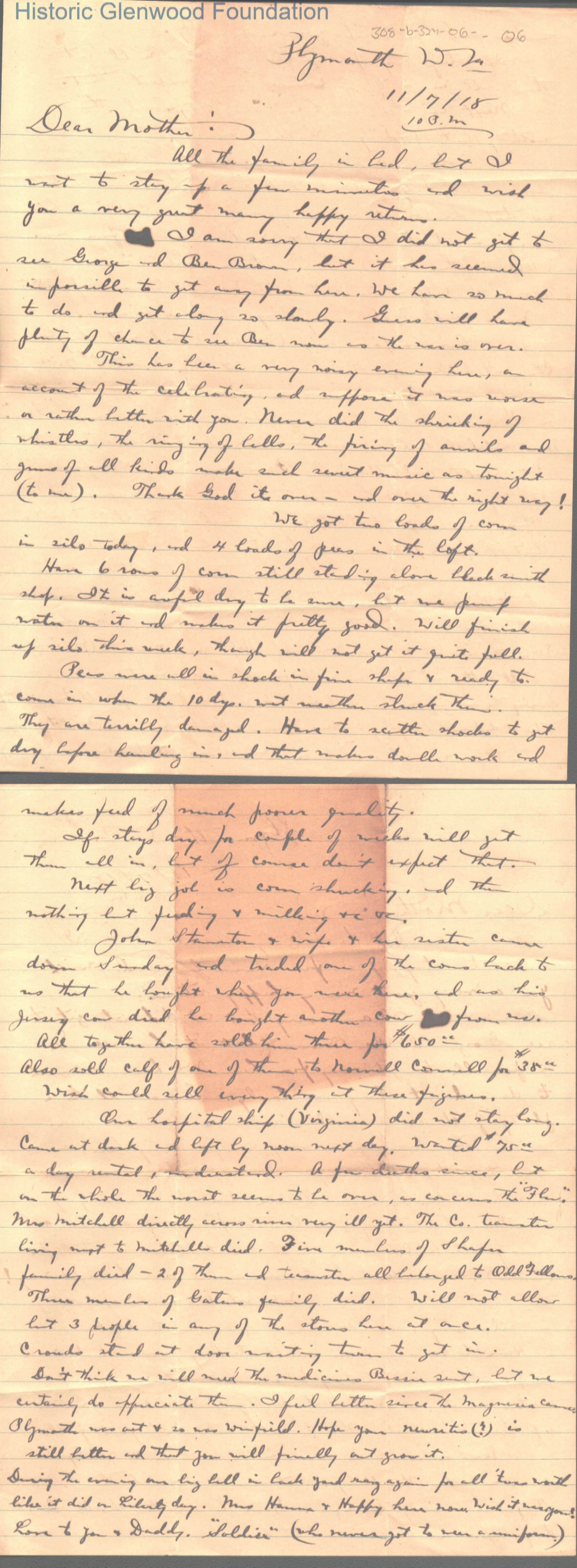 Lucy W. Summers from Lewis Summers Jr, November 7, 1918Entry/Object ID