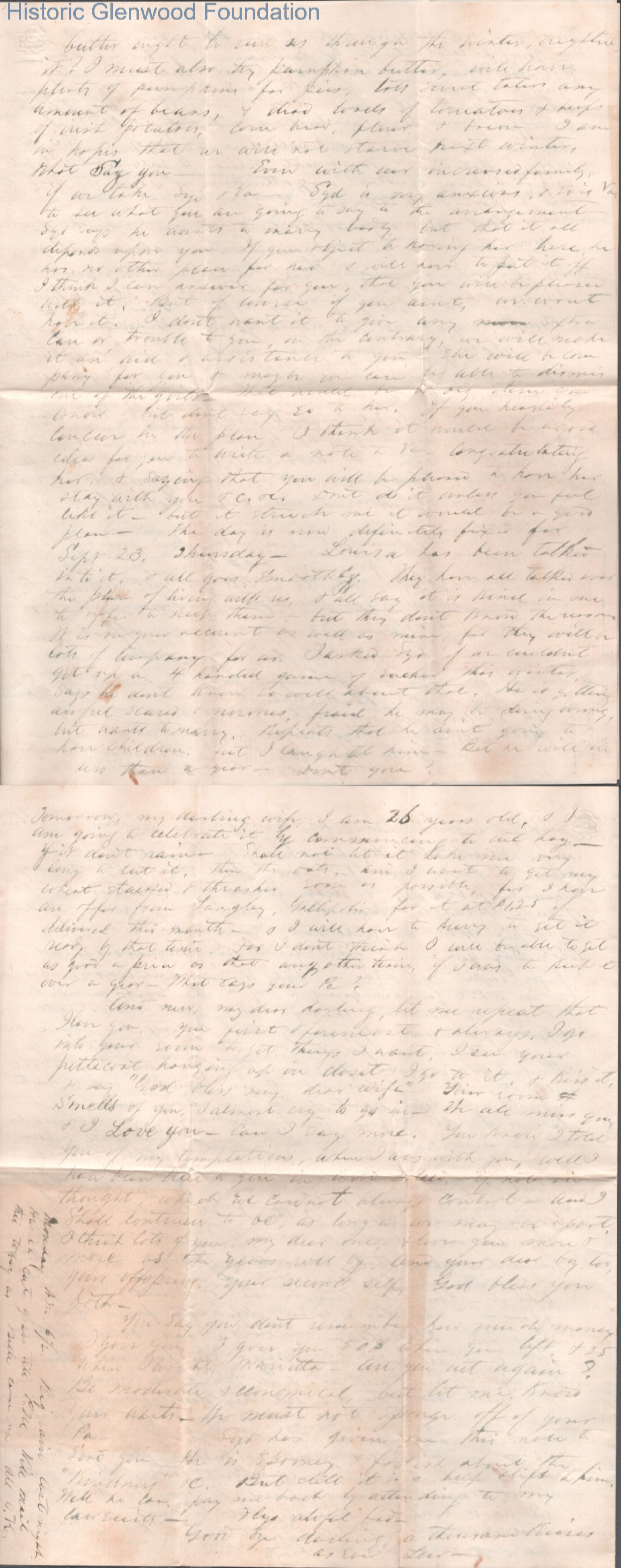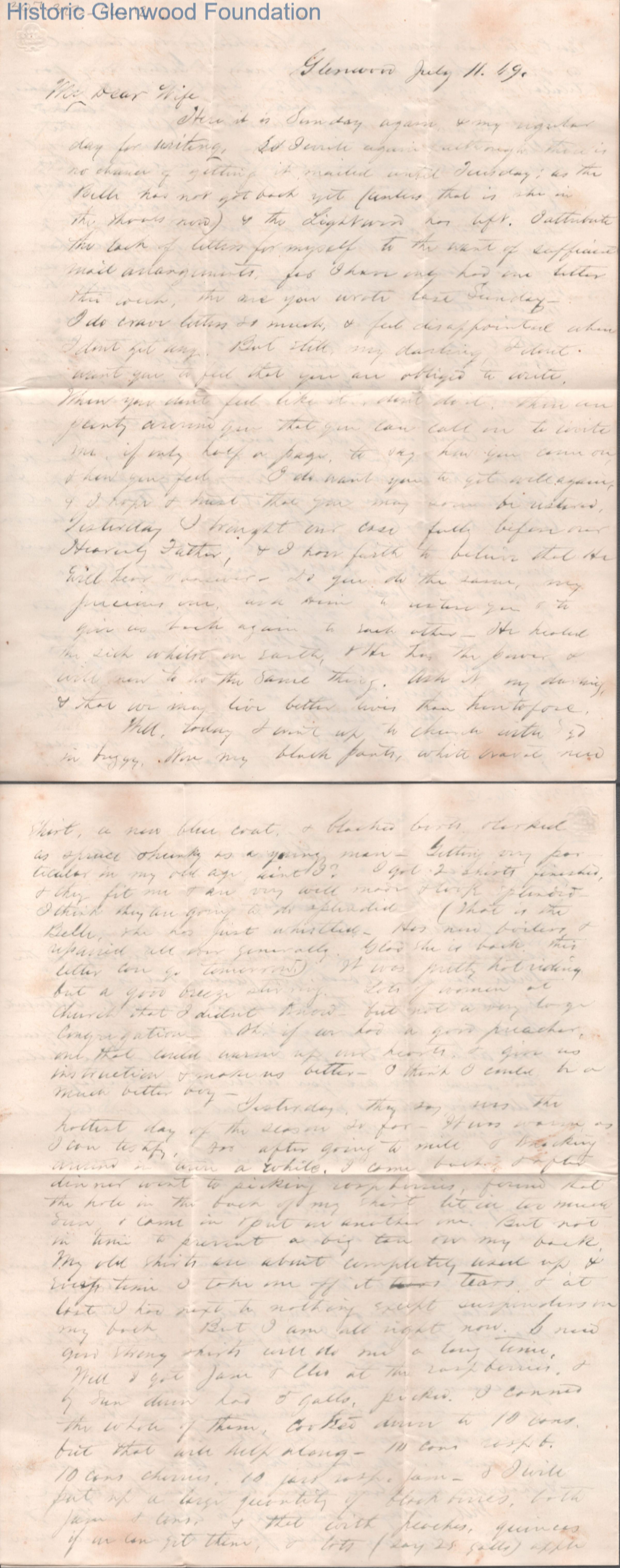 Four-page letter to Lucy W. Summers from Lewis Summers, Jul 11, 1869.