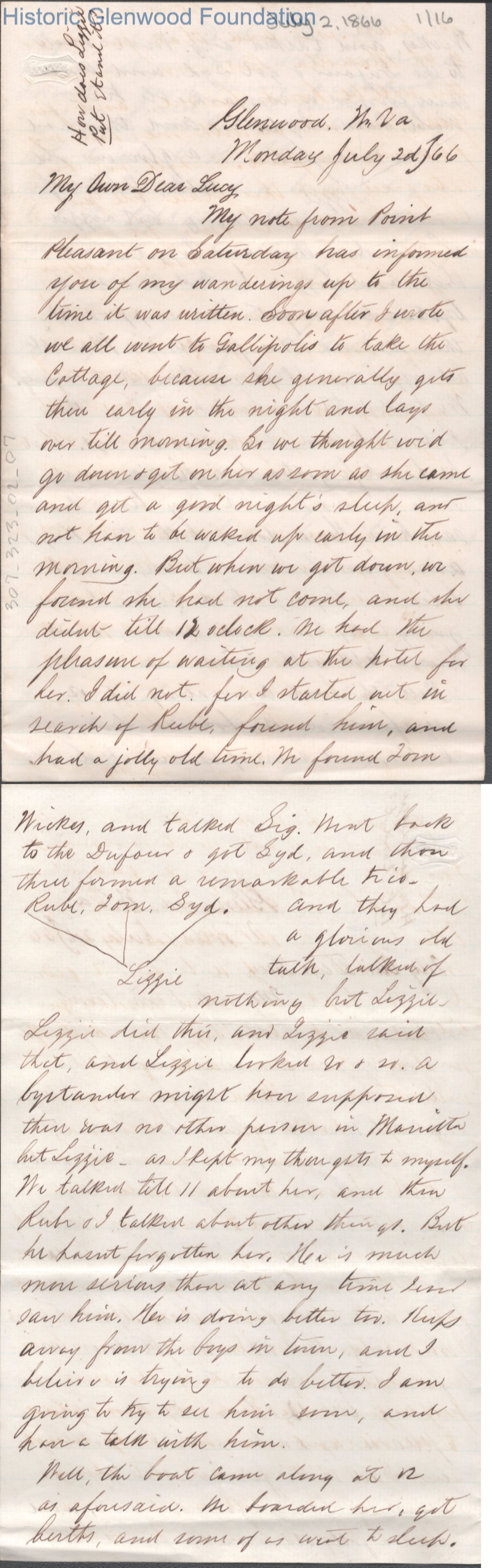 Lucy W. Summers from Lewis Summers, Jul 2, 1866