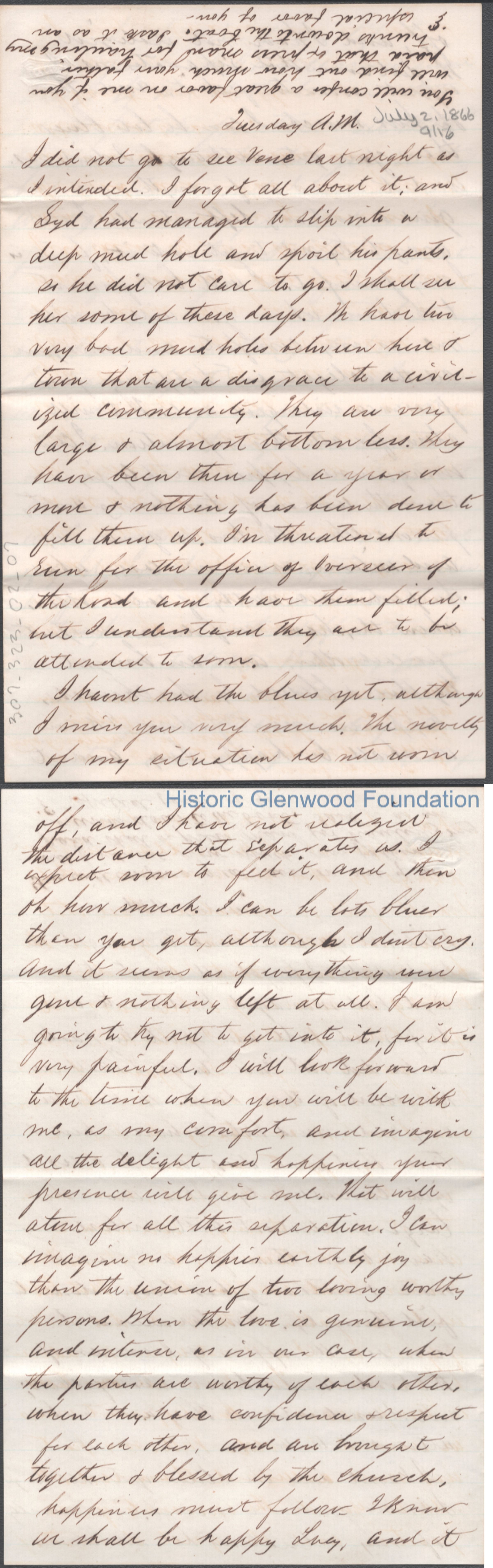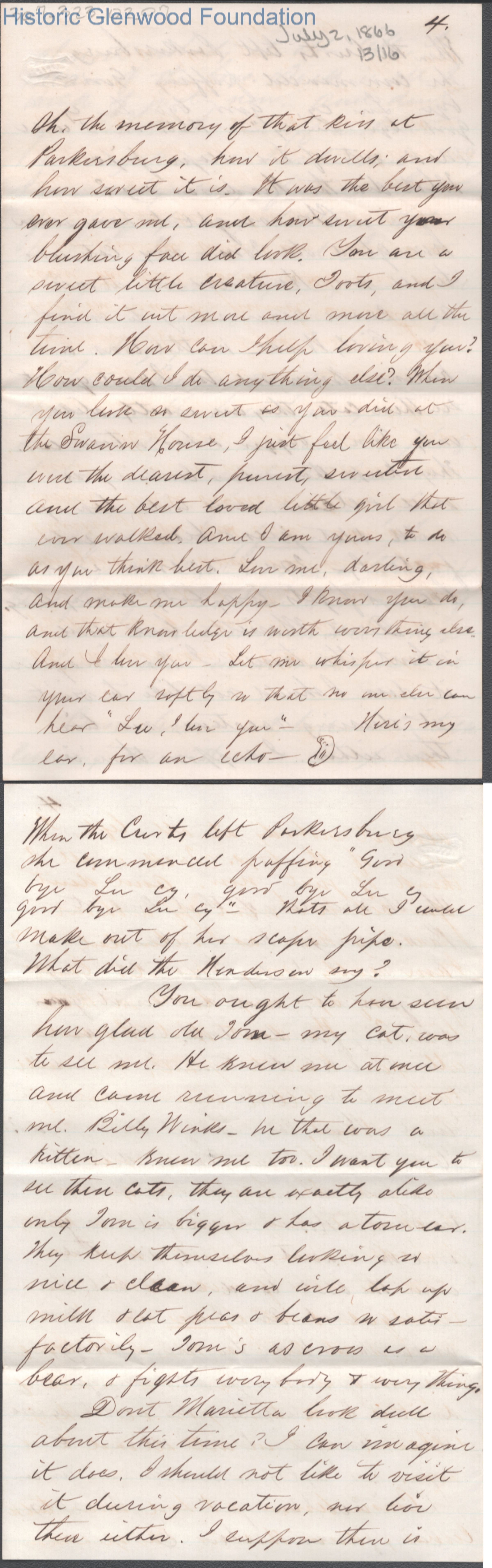 Sixteen-page letter to Lucy W. Summers from Lewis Summers, Jul 2, 1866.