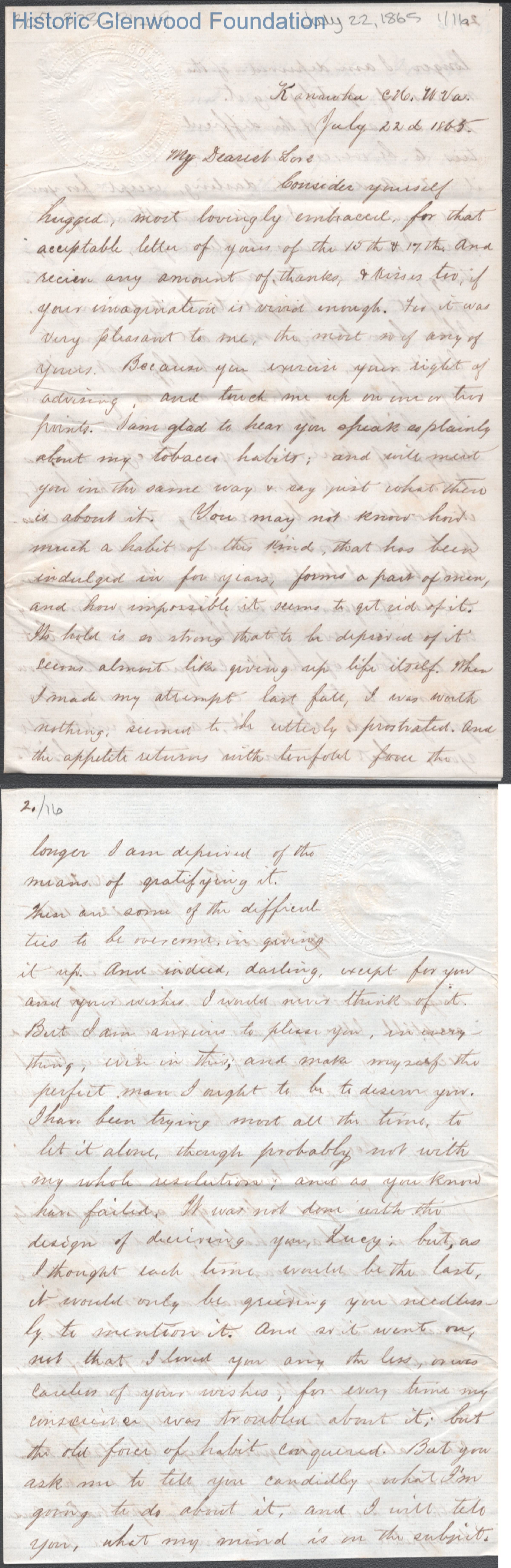 Lucy W. Summers from Lewis Summers, Jul 22, 1865
