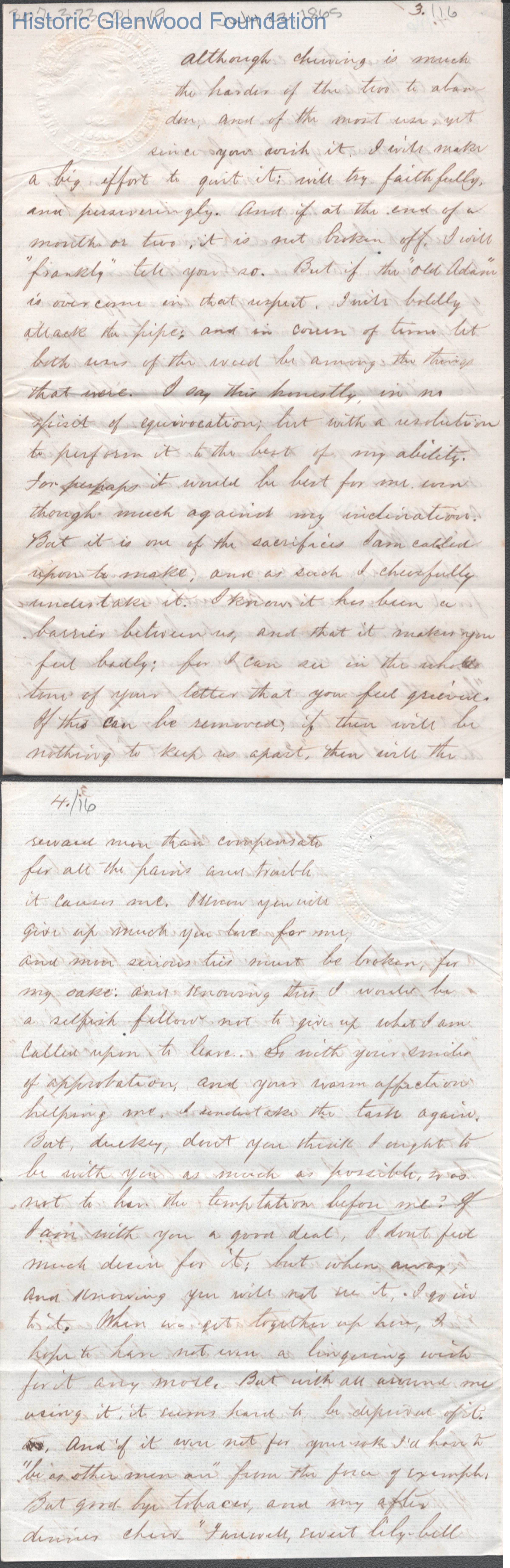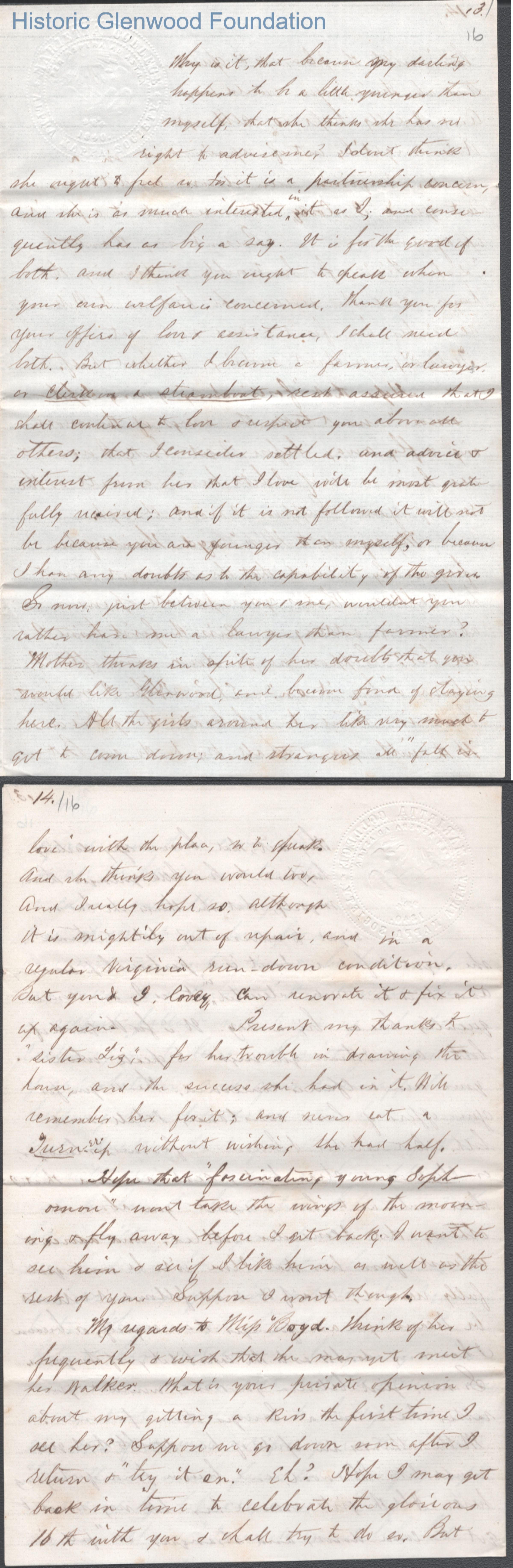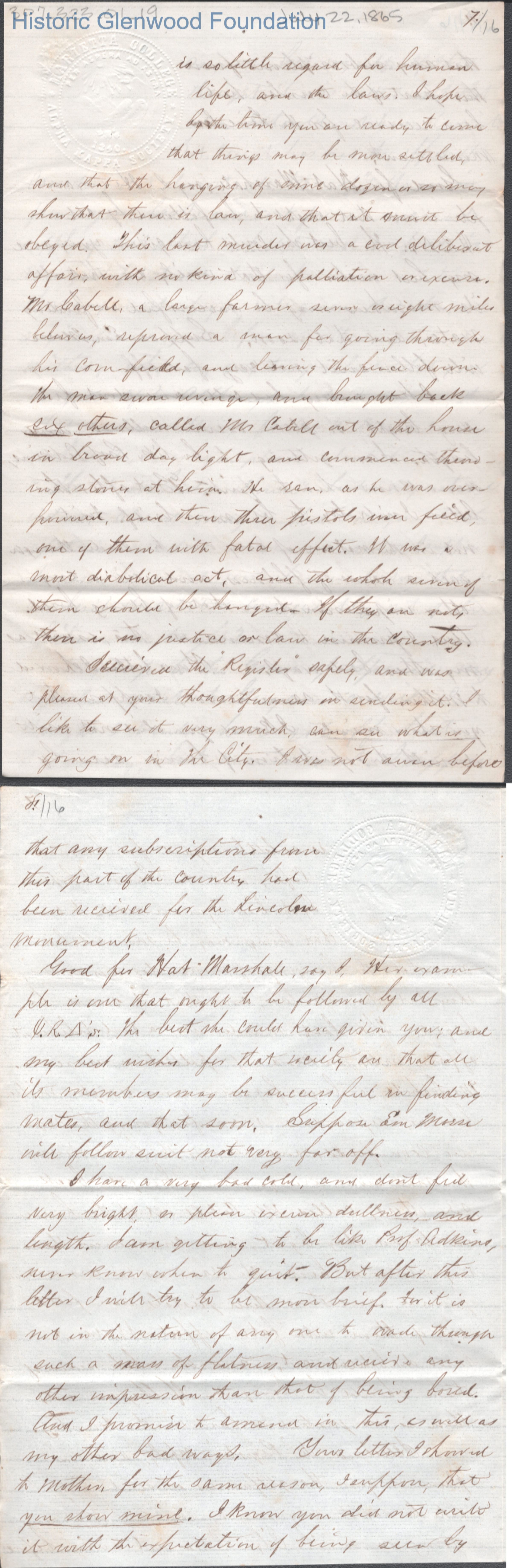Sixteen-page letter to Lucy W. Summers from Lewis Summers, Jul 22, 1865.