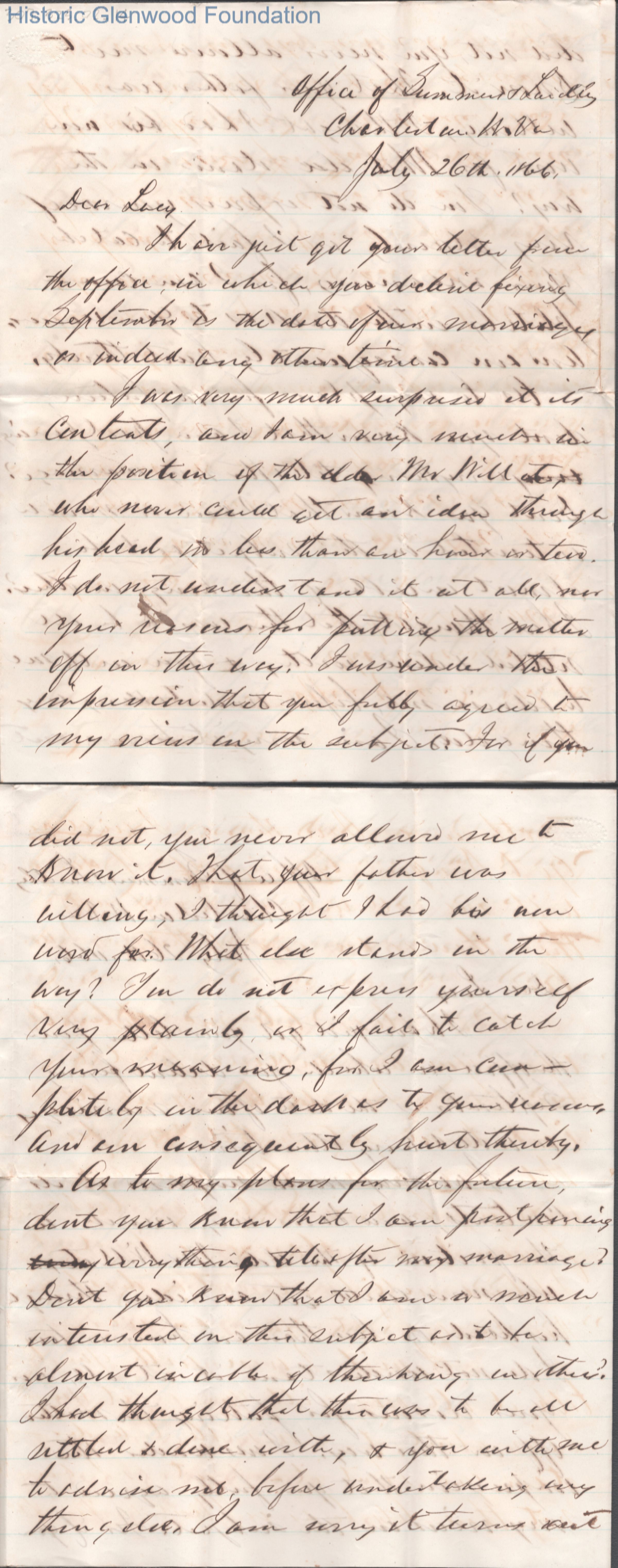 Lucy W. Summers from Lewis Summers, Jul 26, 1866