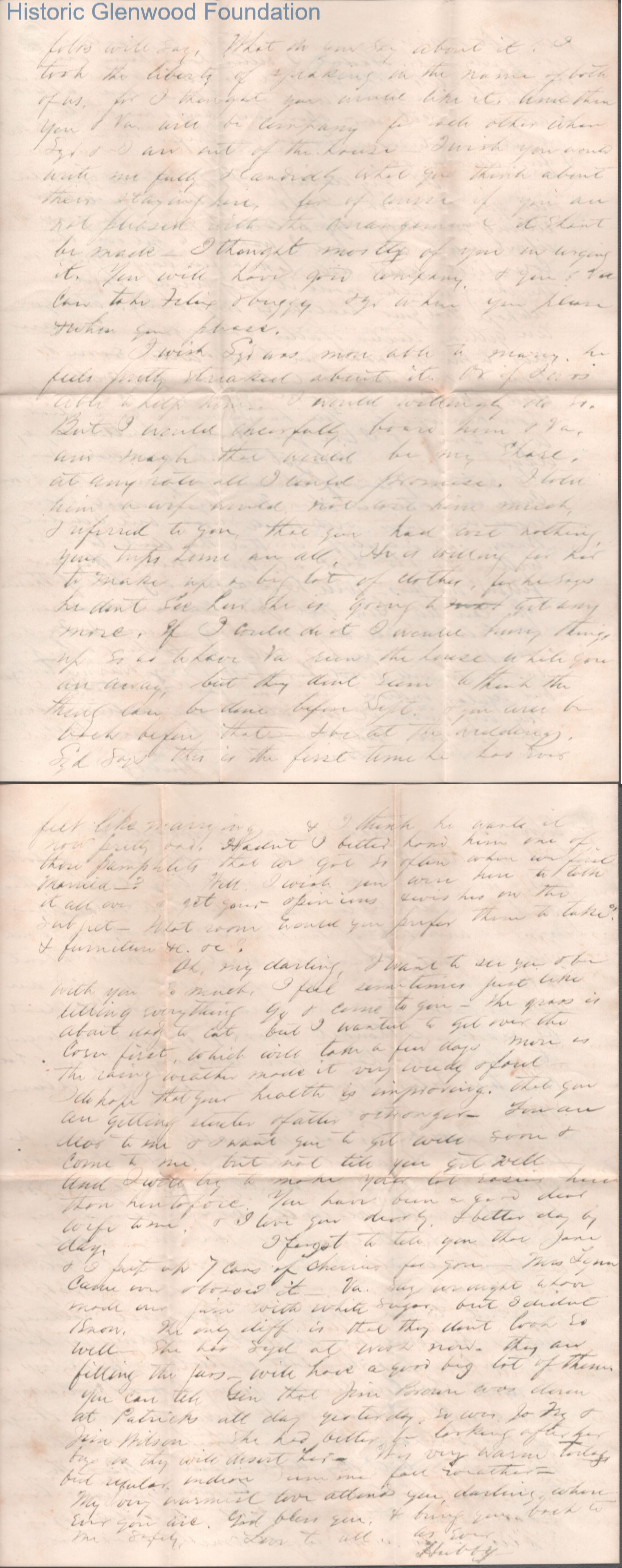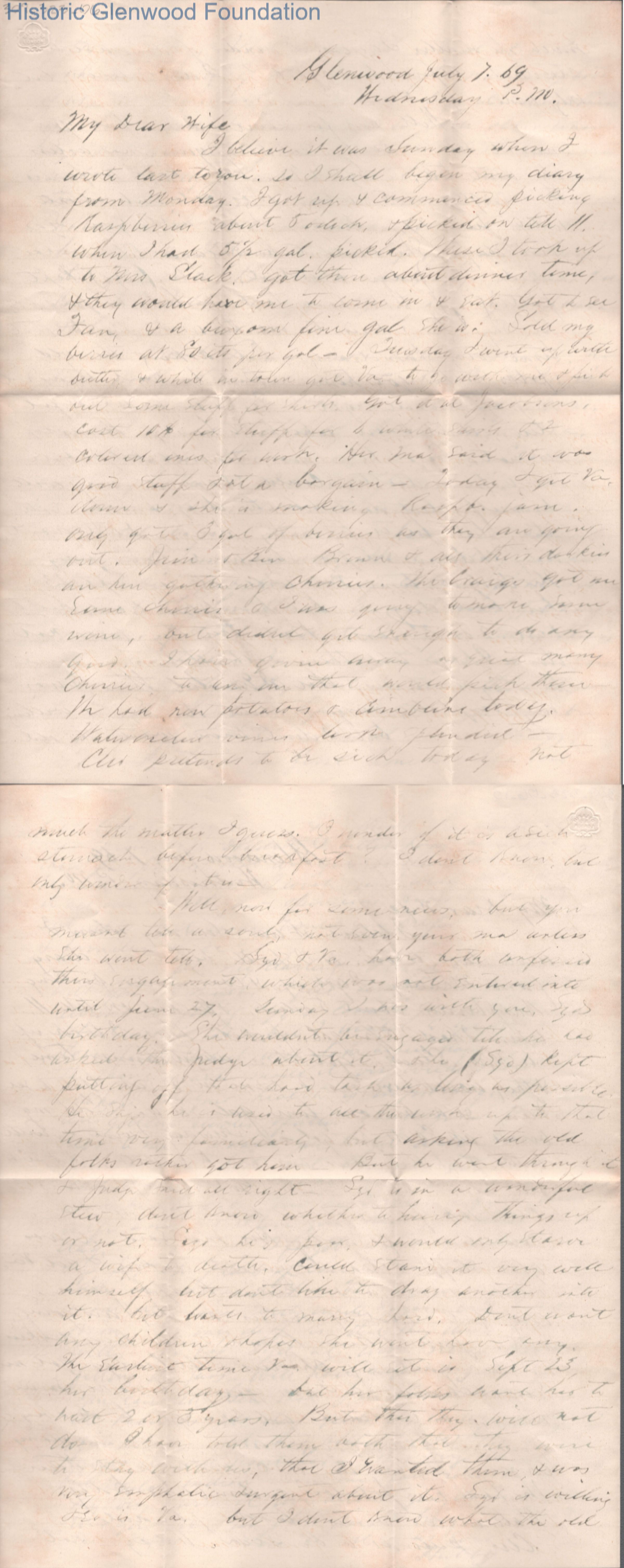 Four-page letter to Lucy W. Summers from Lewis Summers, Jul 7, 1869.