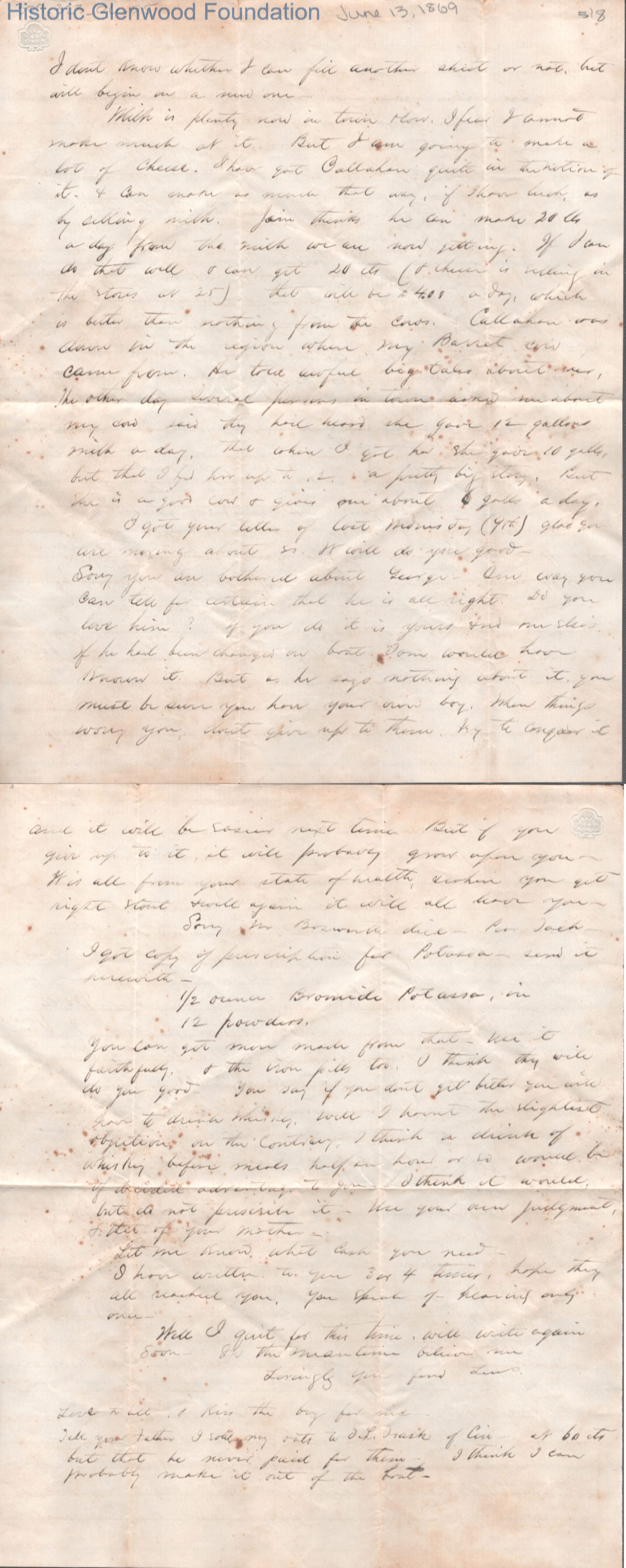 Eight-page letter to Lucy W. Summers from Lewis Summers, Jun 13, 1869.