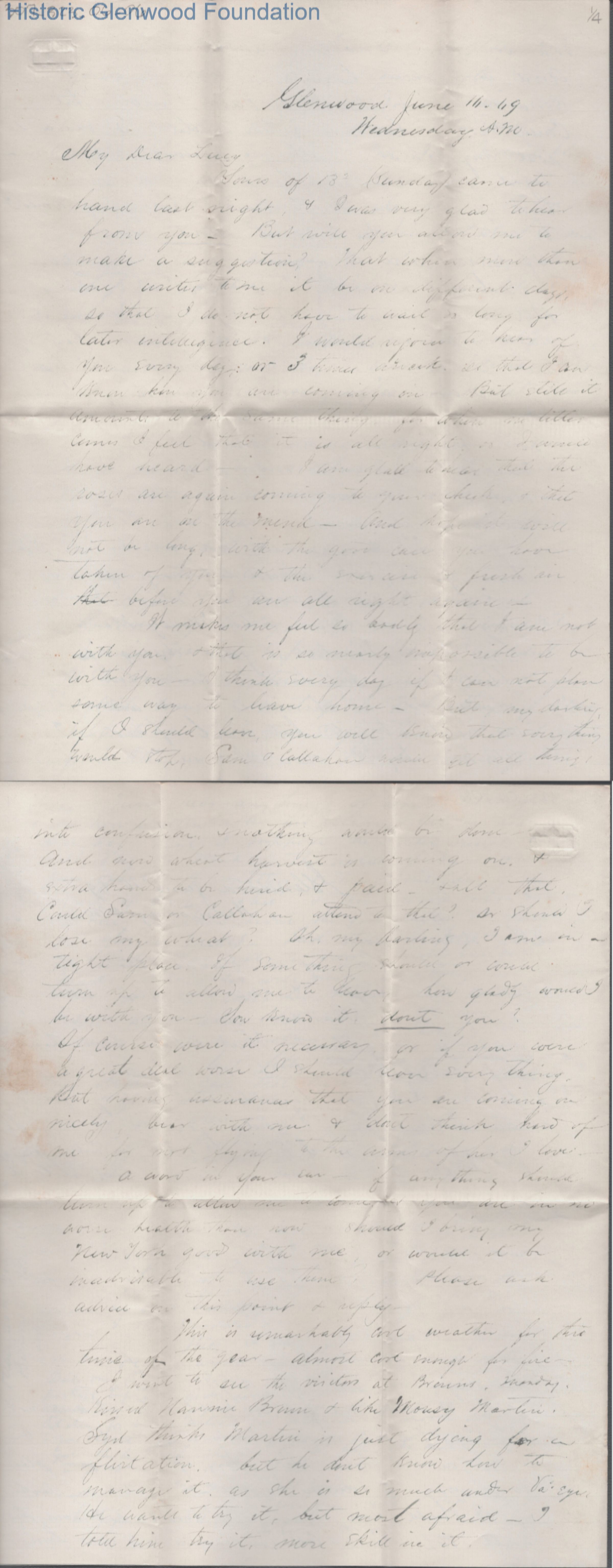 Four-page letter to Lucy W. Summers from Lewis Summers, Jun 16, 1869.