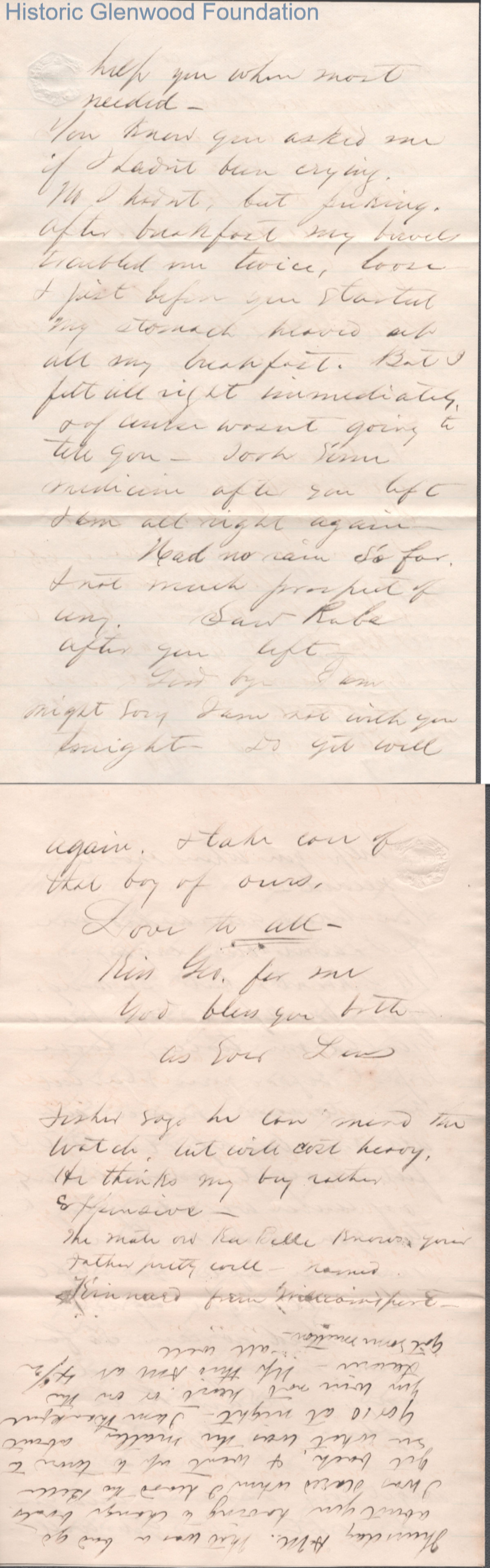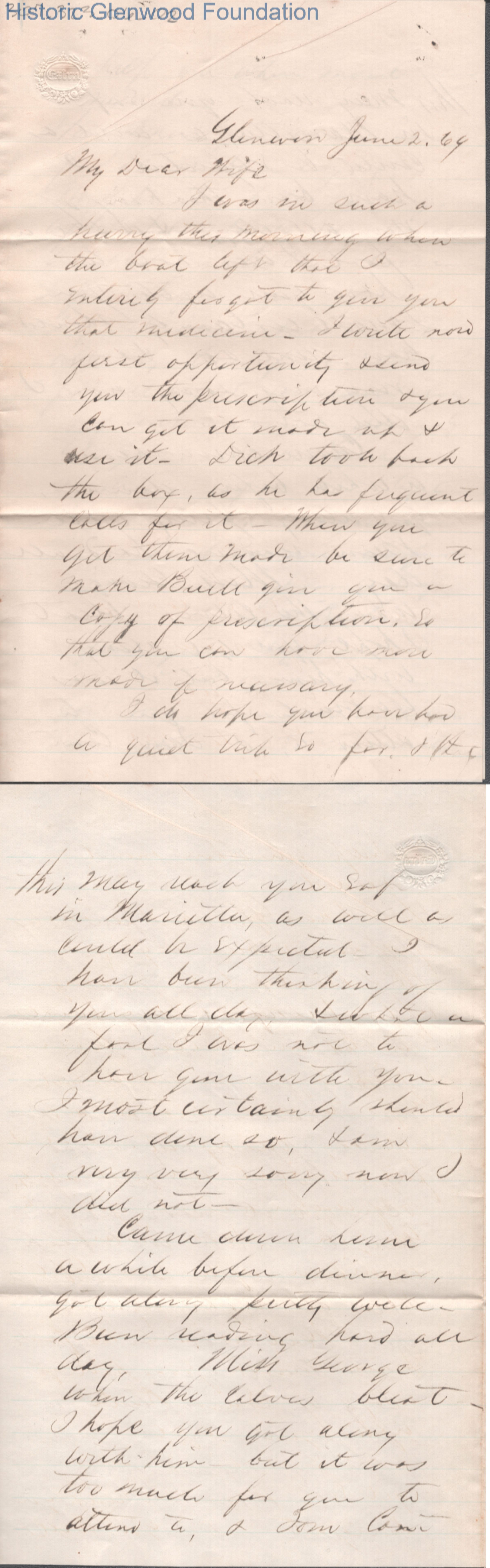 Four-page letter to Lucy W. Summers from Lewis Summers, Jun 2, 1869.