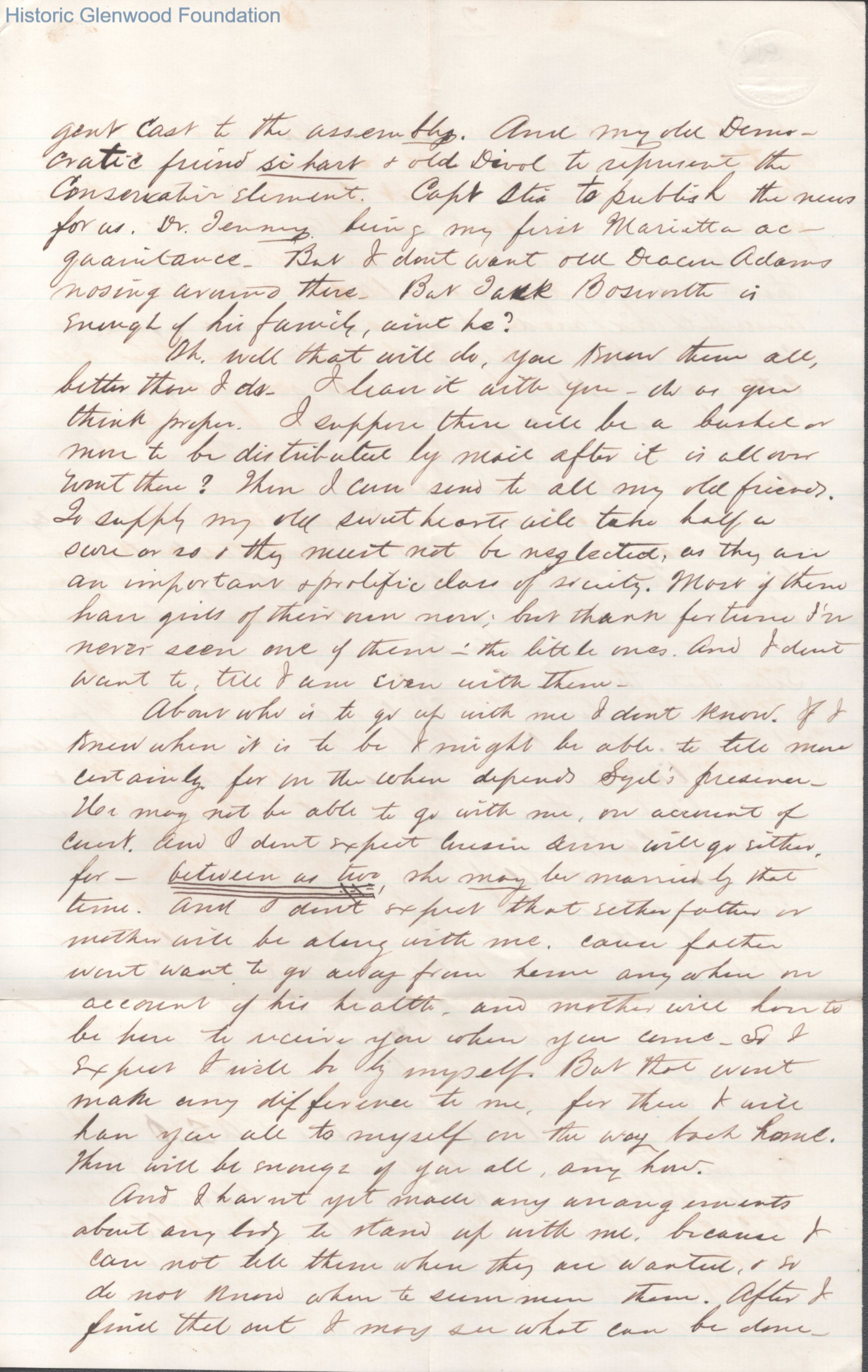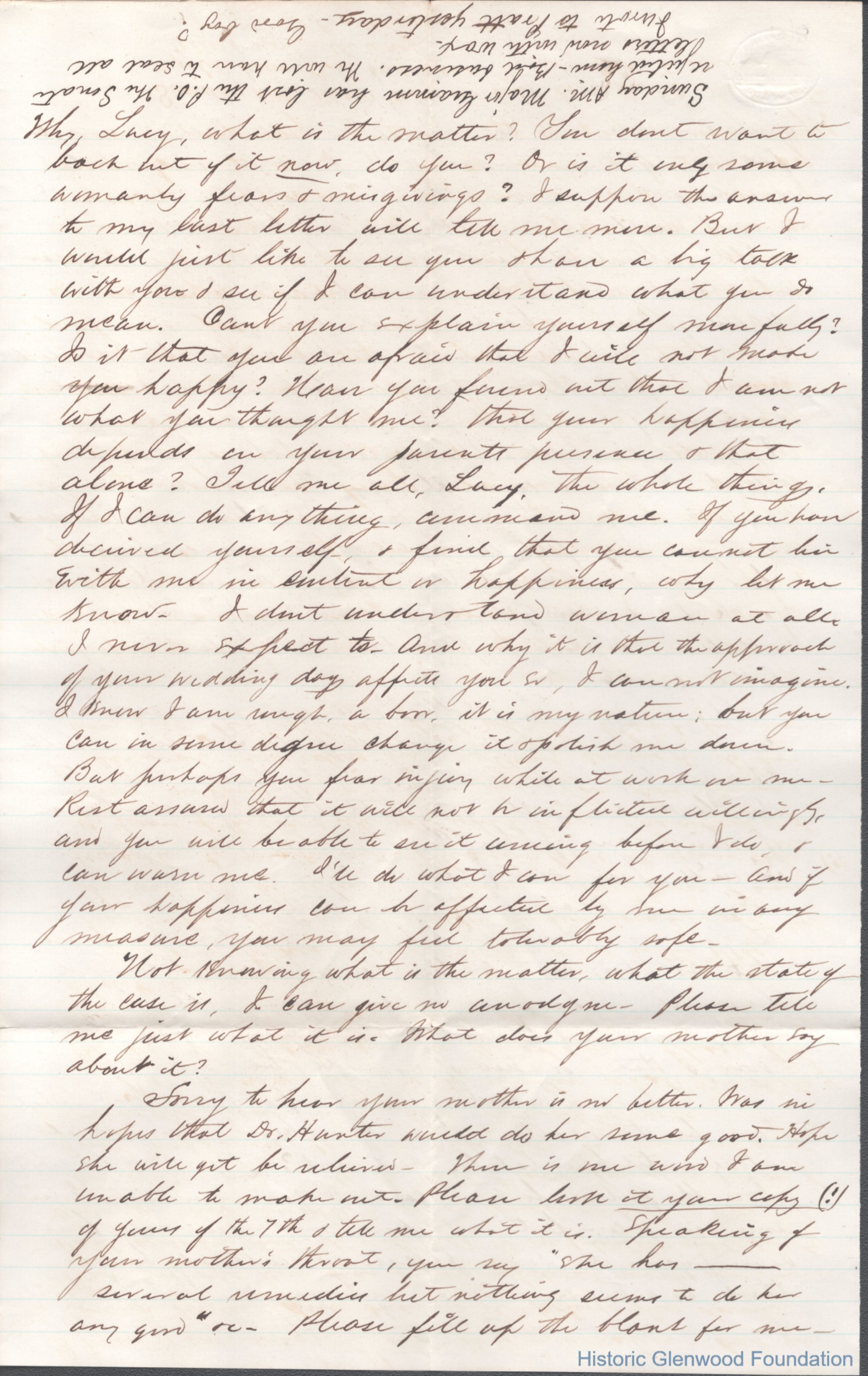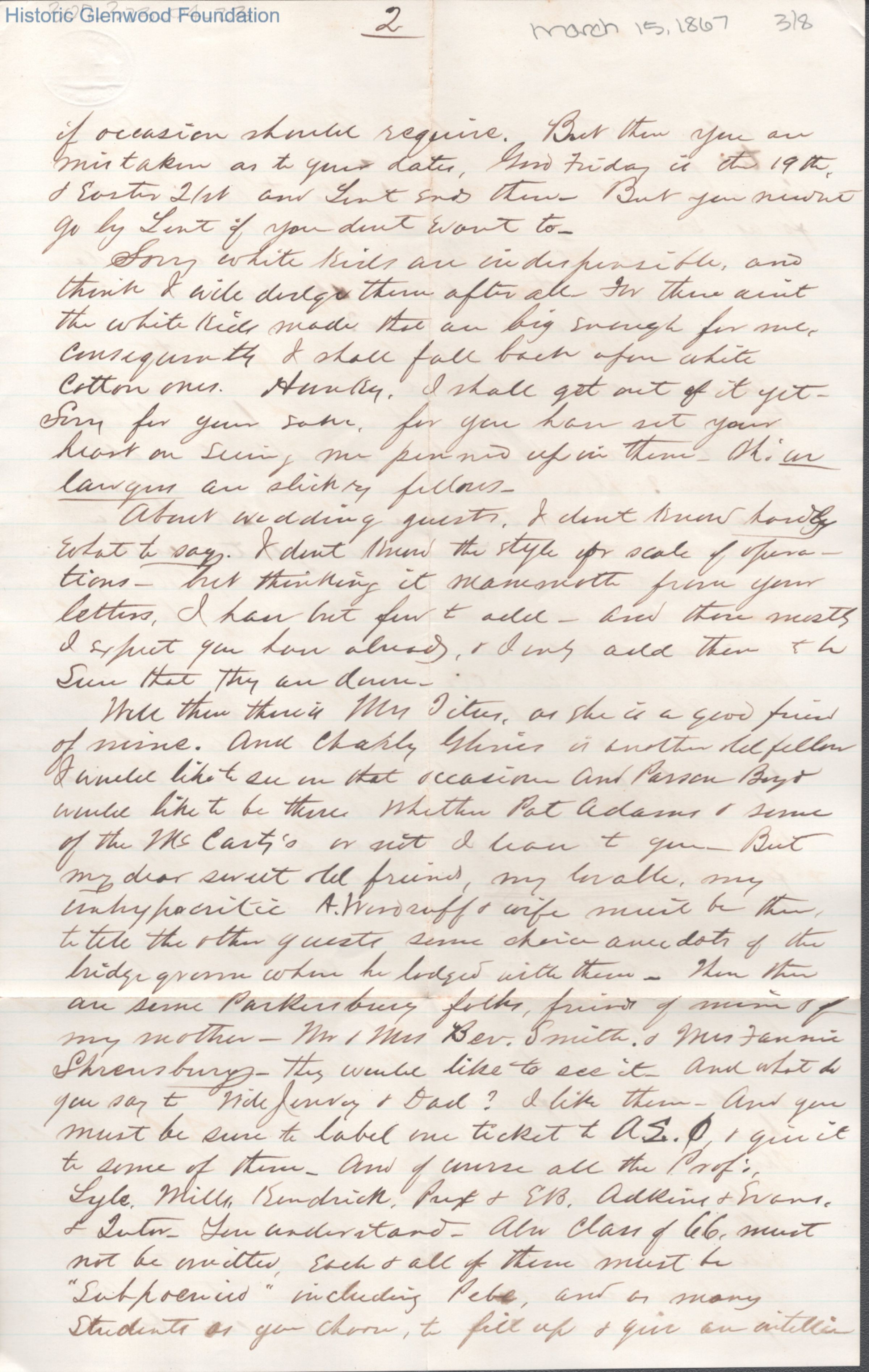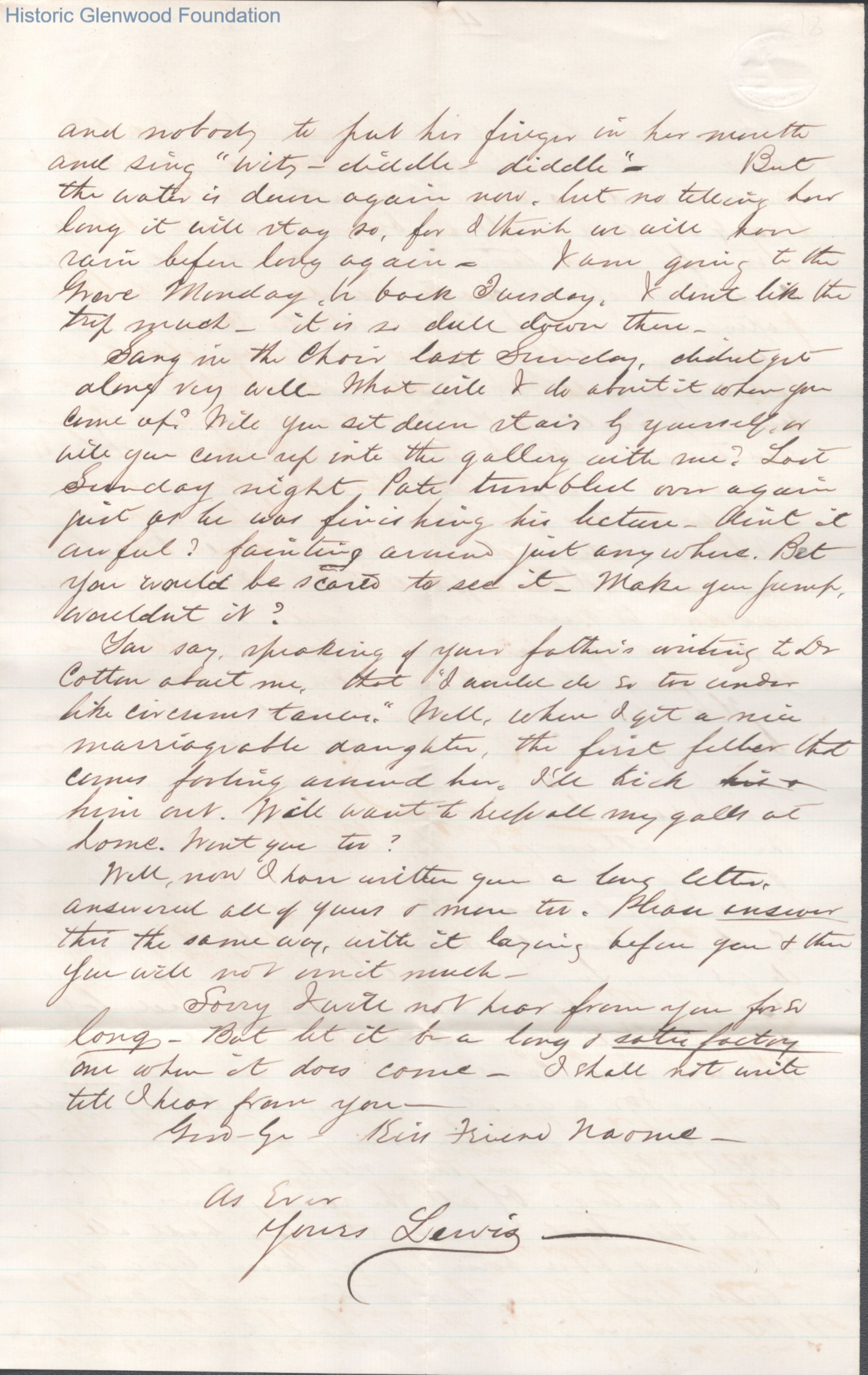 Eight-page letter to Lucy W. Summers from Lewis Summers, Mar 15, 1867.