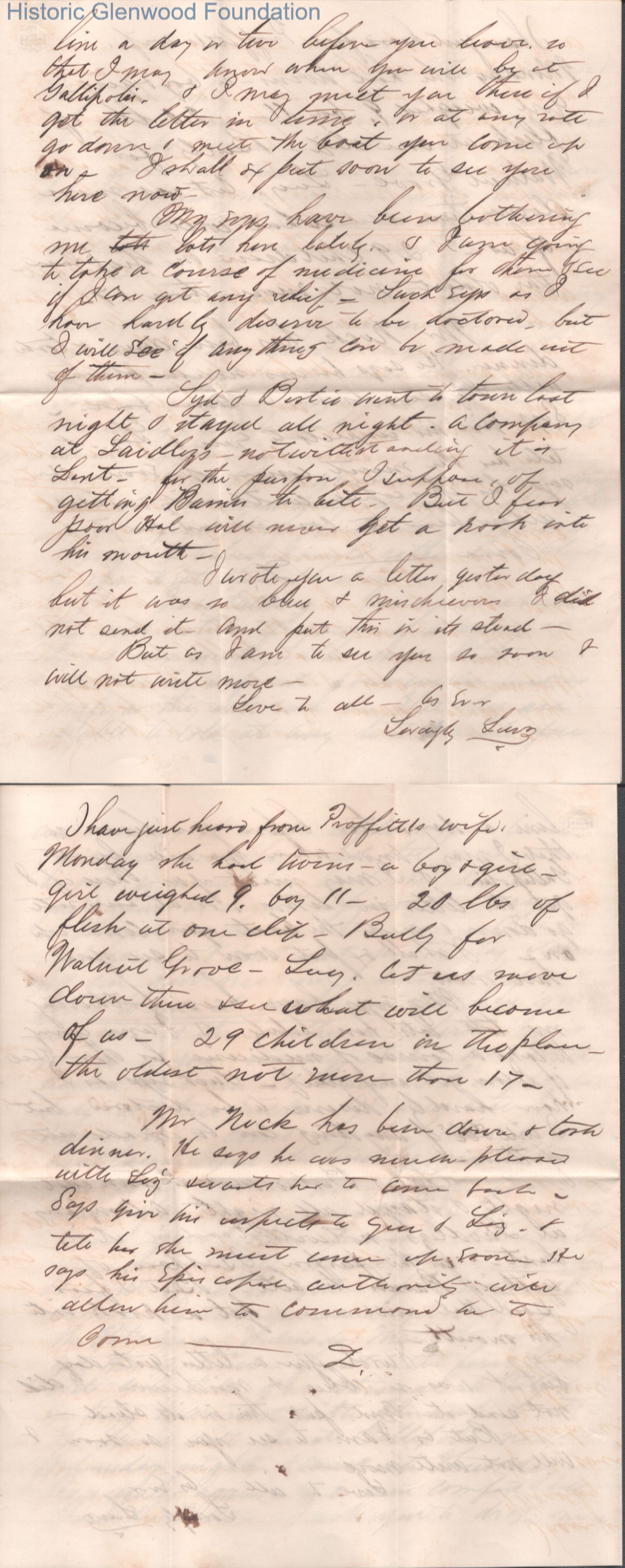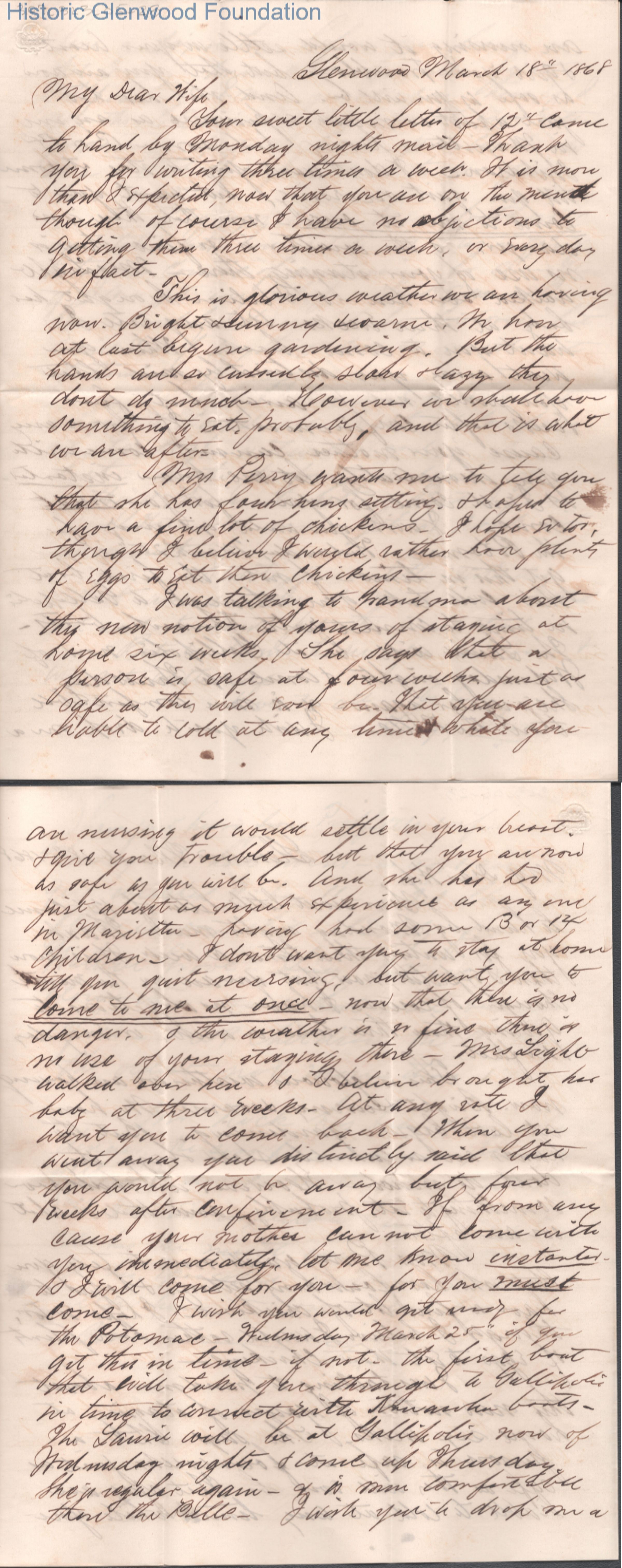 Four-page letter to Lucy W. Summers from Lewis Summers, Mar 18, 1868.