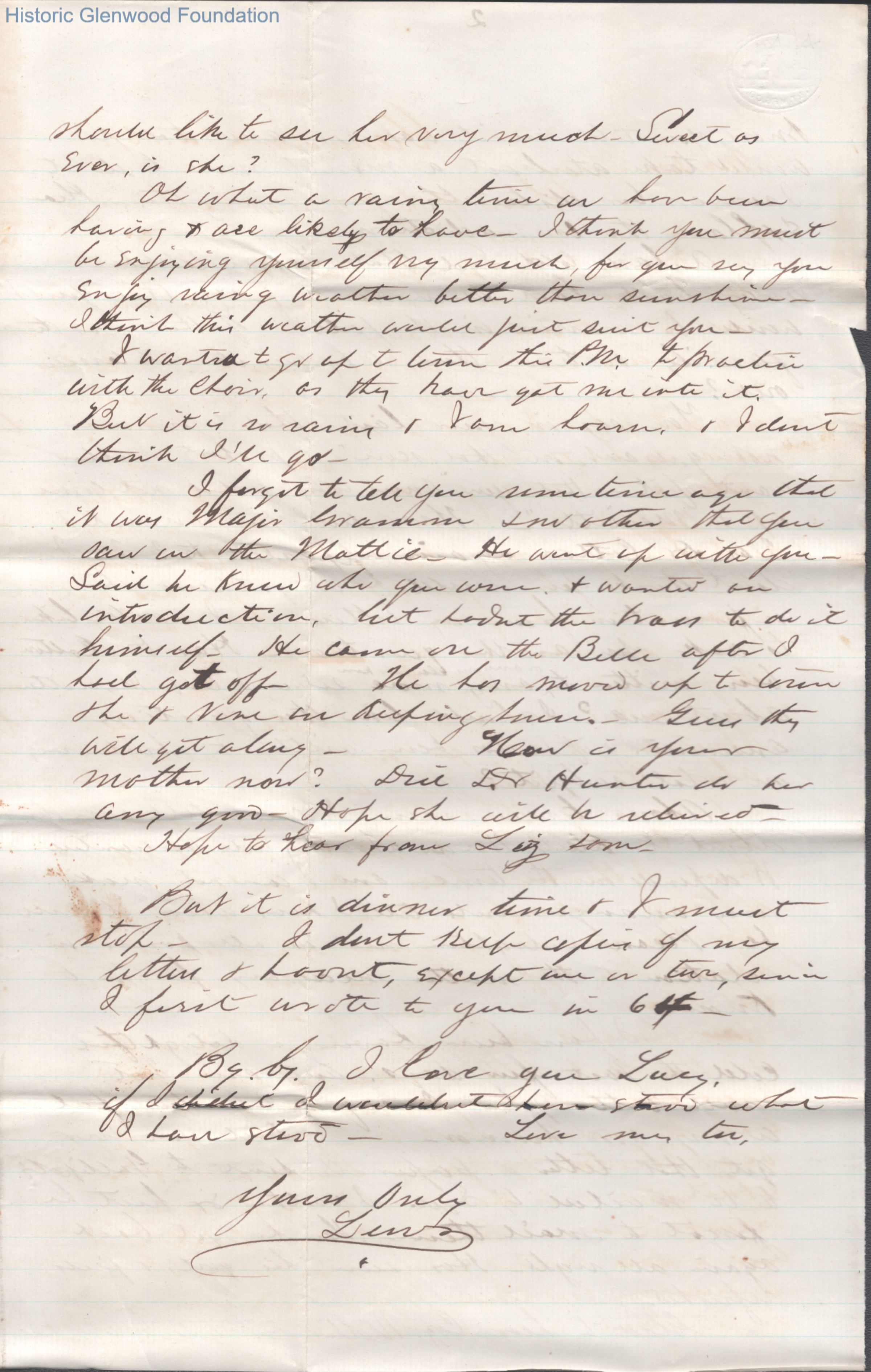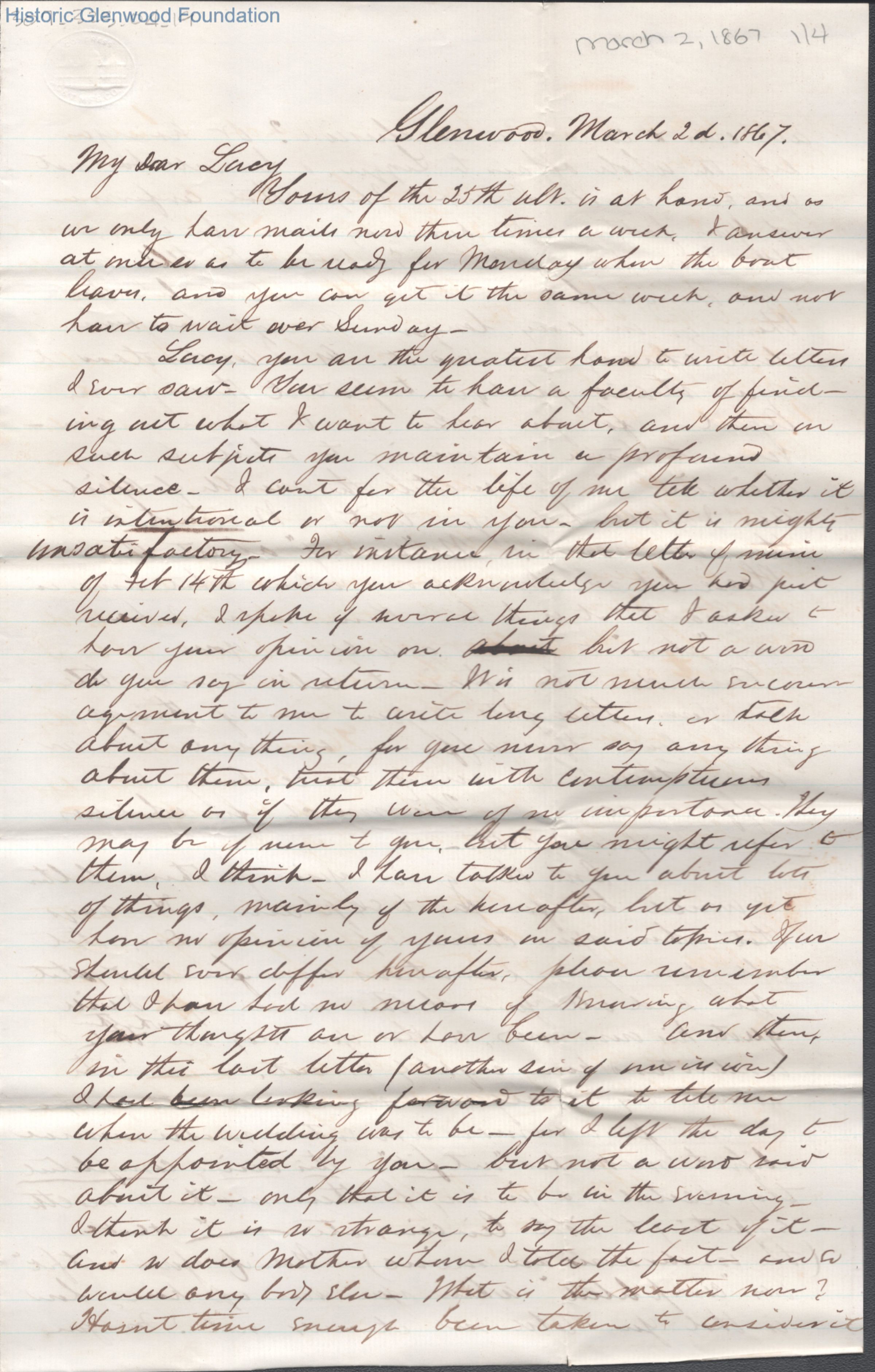 Lucy W. Summers from Lewis Summers, Mar 2, 1867